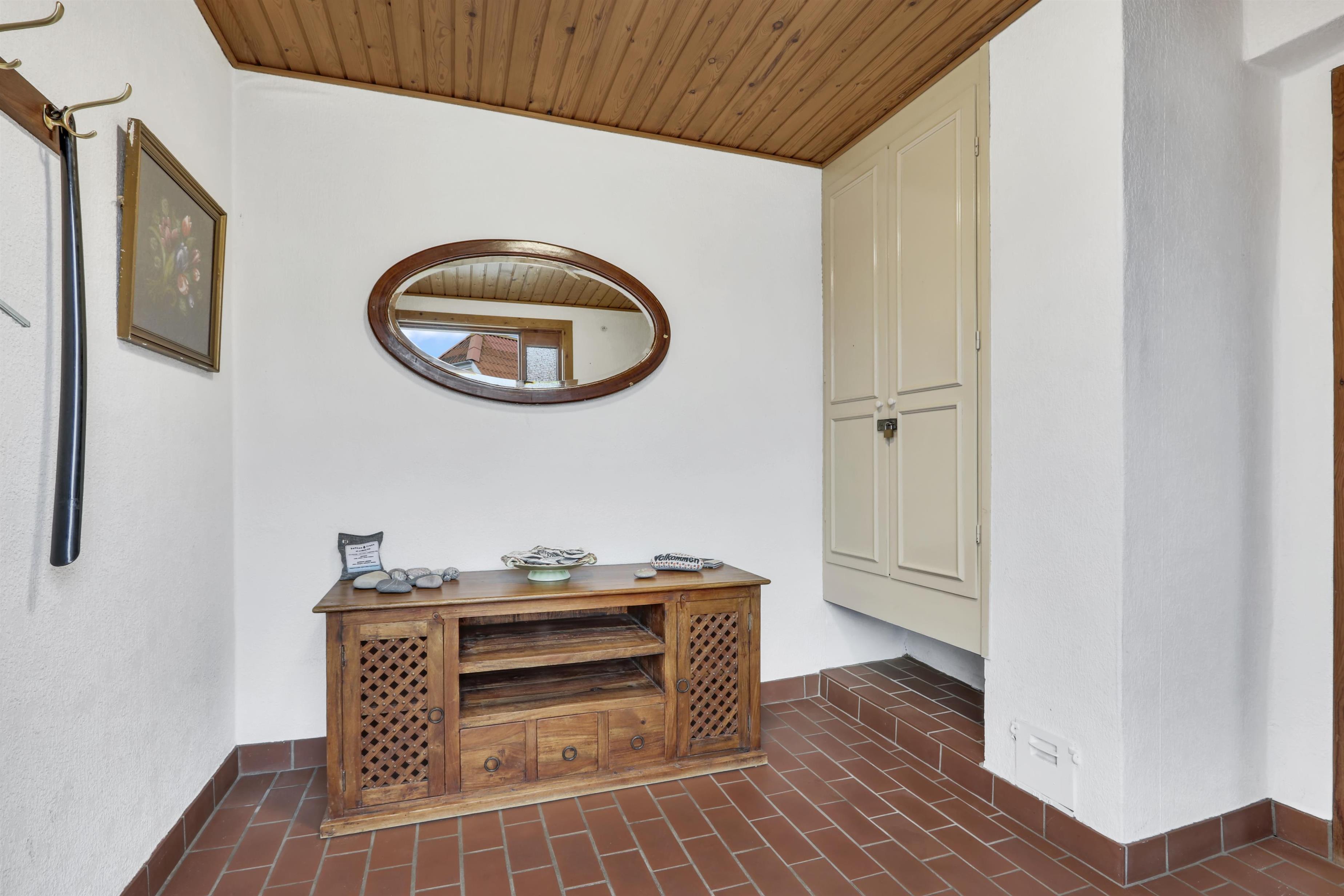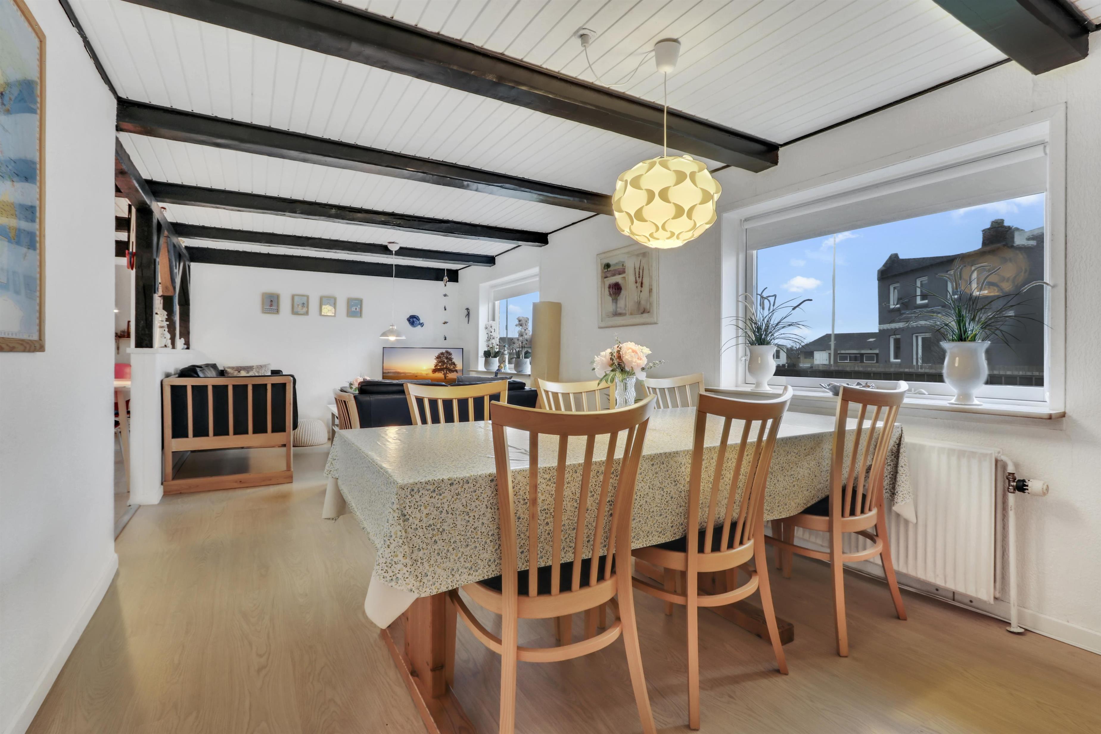 Godt indrettet helårshus på 122 m2 med 3 soveværelse (1DS, 1DS, 2ES). Opholdsstue med lædermøbler, spiseplads, TV med danske og tyske kanaler samt mulighed for streaming af radio, TV og app´s. Veludstyret køkken med Glaskeramisk kogeplader, indbygningsovn, mikroovn, emhætte, opvaskemaskine og køleskab med fryseboks. Brygges med ekstra håndvask, ekstra fryser (250L), vaskemaskine og kondenstørretumbler. Det perfekte rum til ekstra opbevaring og nedfrysning af fisk eller frysevarer. Badeværelse med toilet, håndvask, bruser og vinylgulv med gulvvarme. Der er trægulv i opholdsstuen og i køkken og gulvtæppe i soverummet. Huset har fjernvarme og har derfor lave forbrugsomkostninger til opvarmning. Ikke ryger hus. Max. 1 hund tilladt.