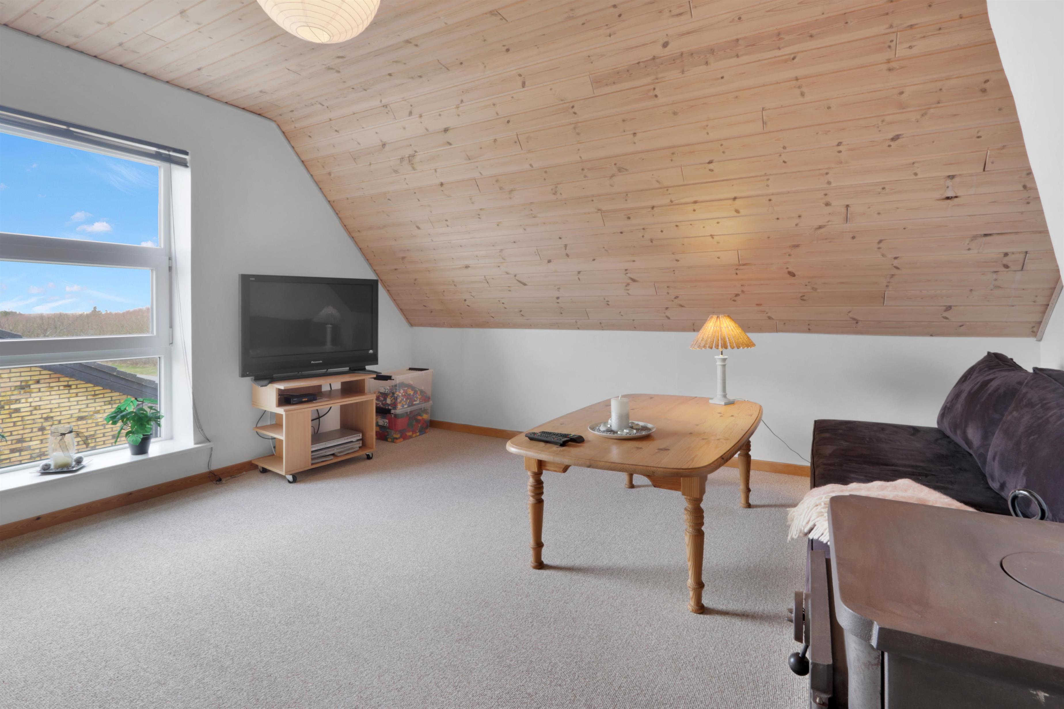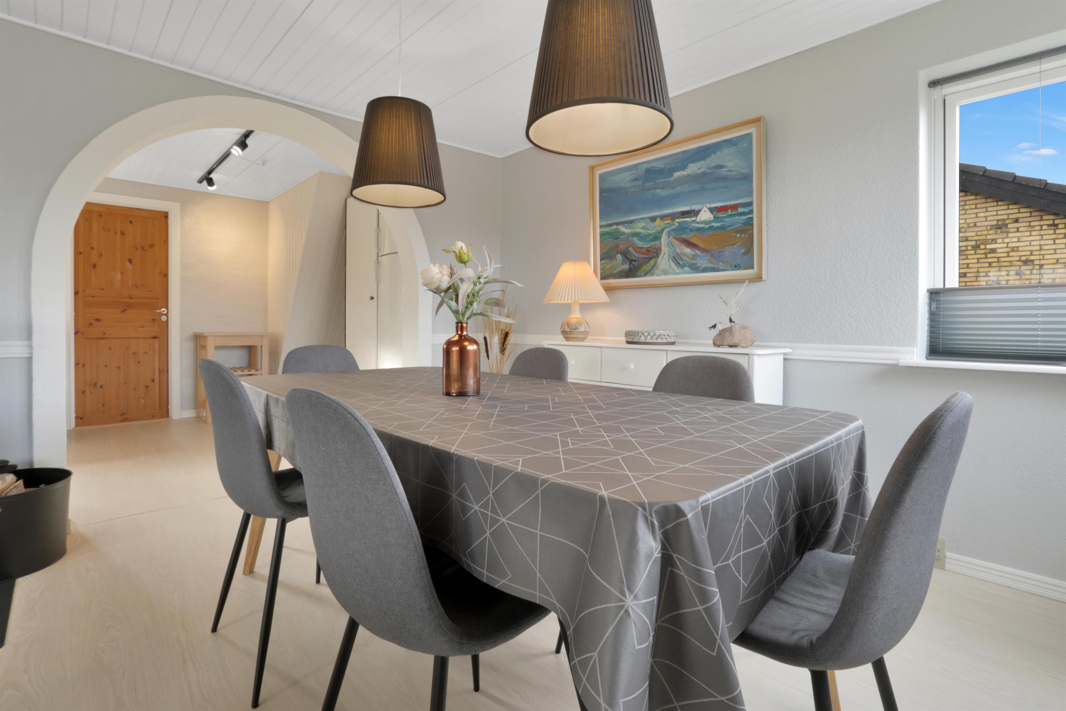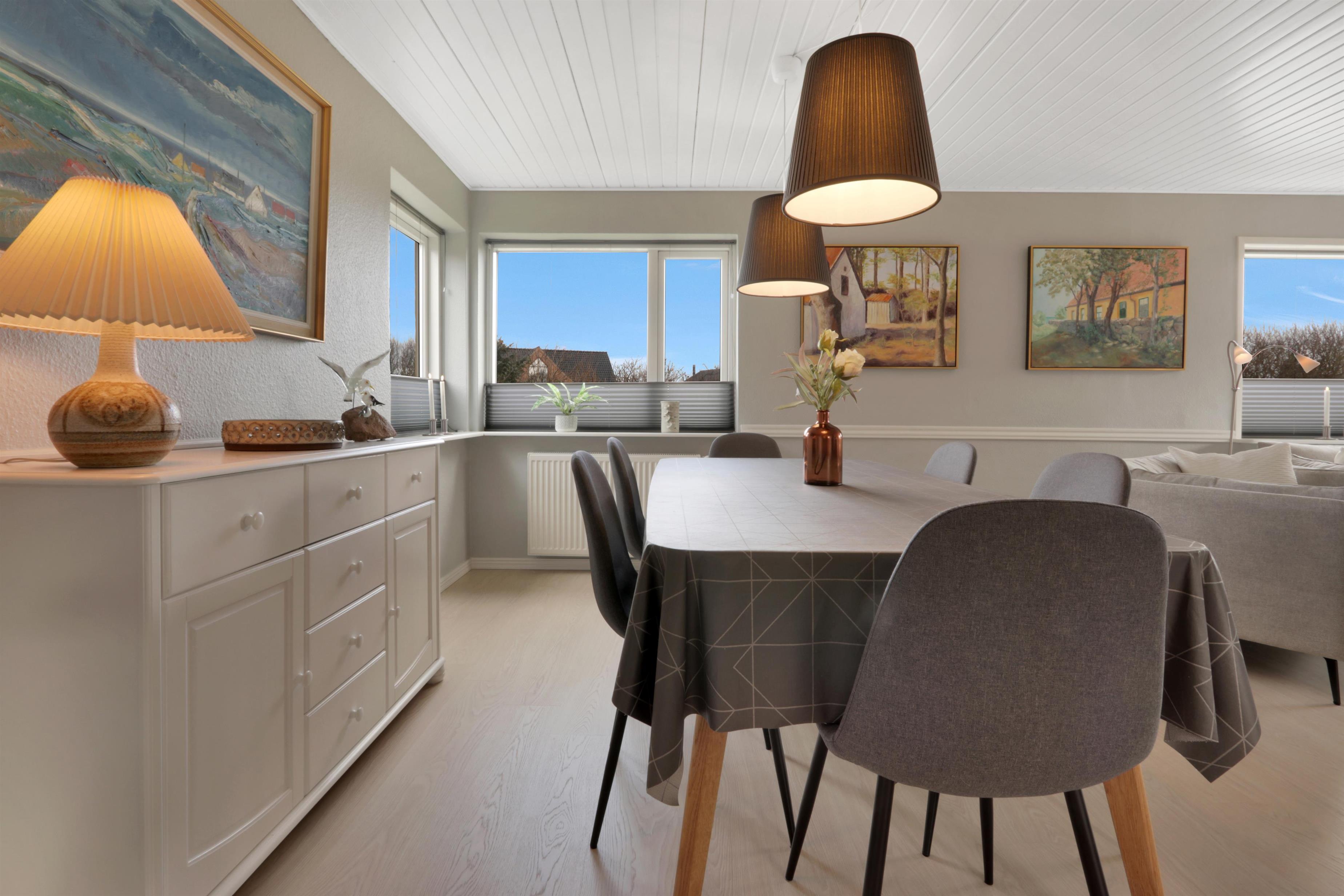 Dette skønne feriehus er renoveret i løbet af 2024, og er dejlig lys og indbydende. Opholdsstuen er hjemmets hjerte, hvor der er god plads til både samvær og hygge. Her finder du et stilfuldt spiseområde, en komfortabel sofagruppe samt en stemningsfuld brændeovn, der gør aftenerne ekstra hyggelige. TV'et har både danske og tyske kanaler, og med Chromecast kan du streame dine egne streamingtjenester.