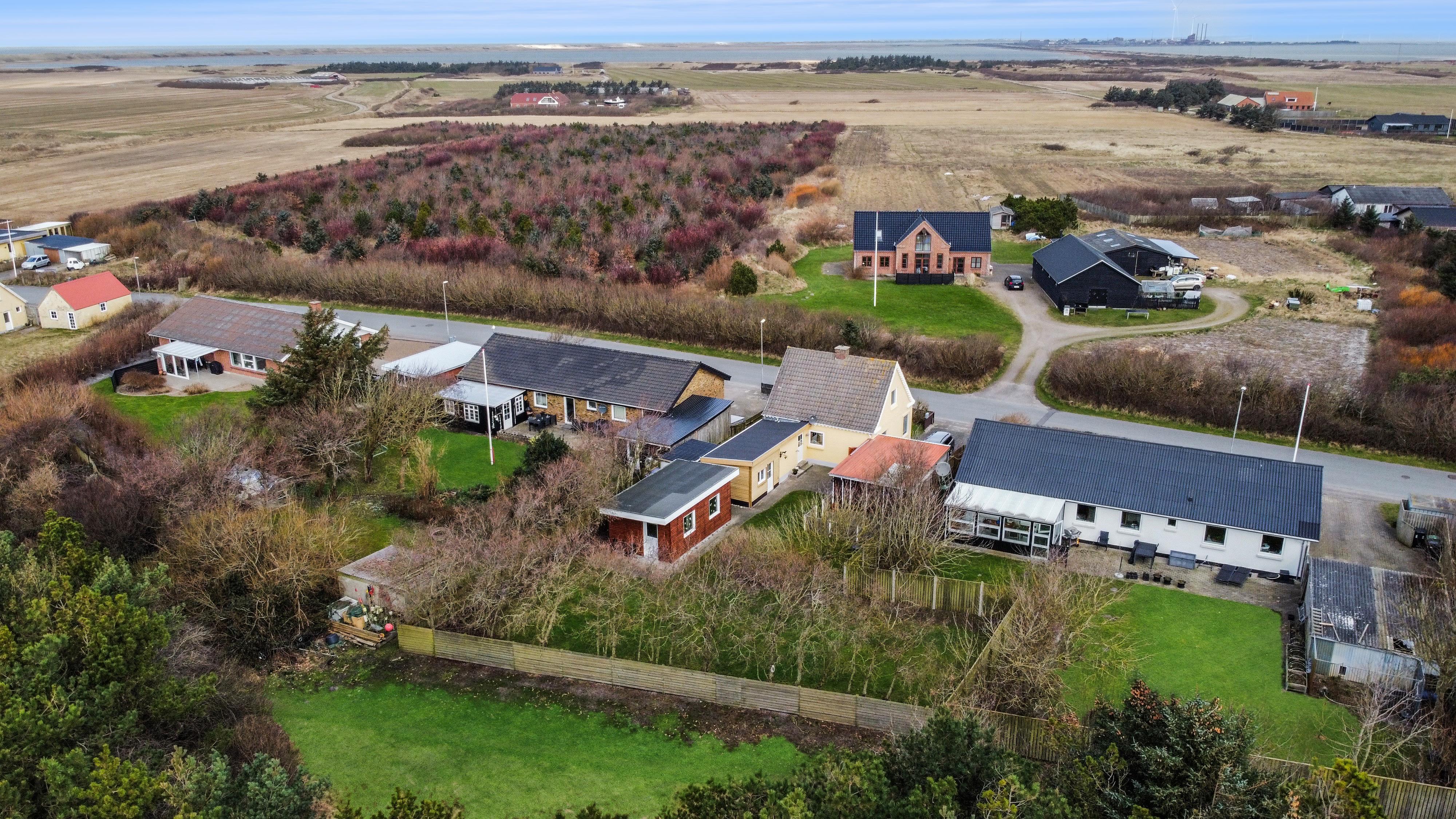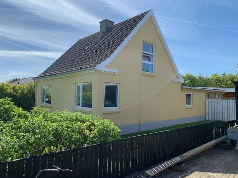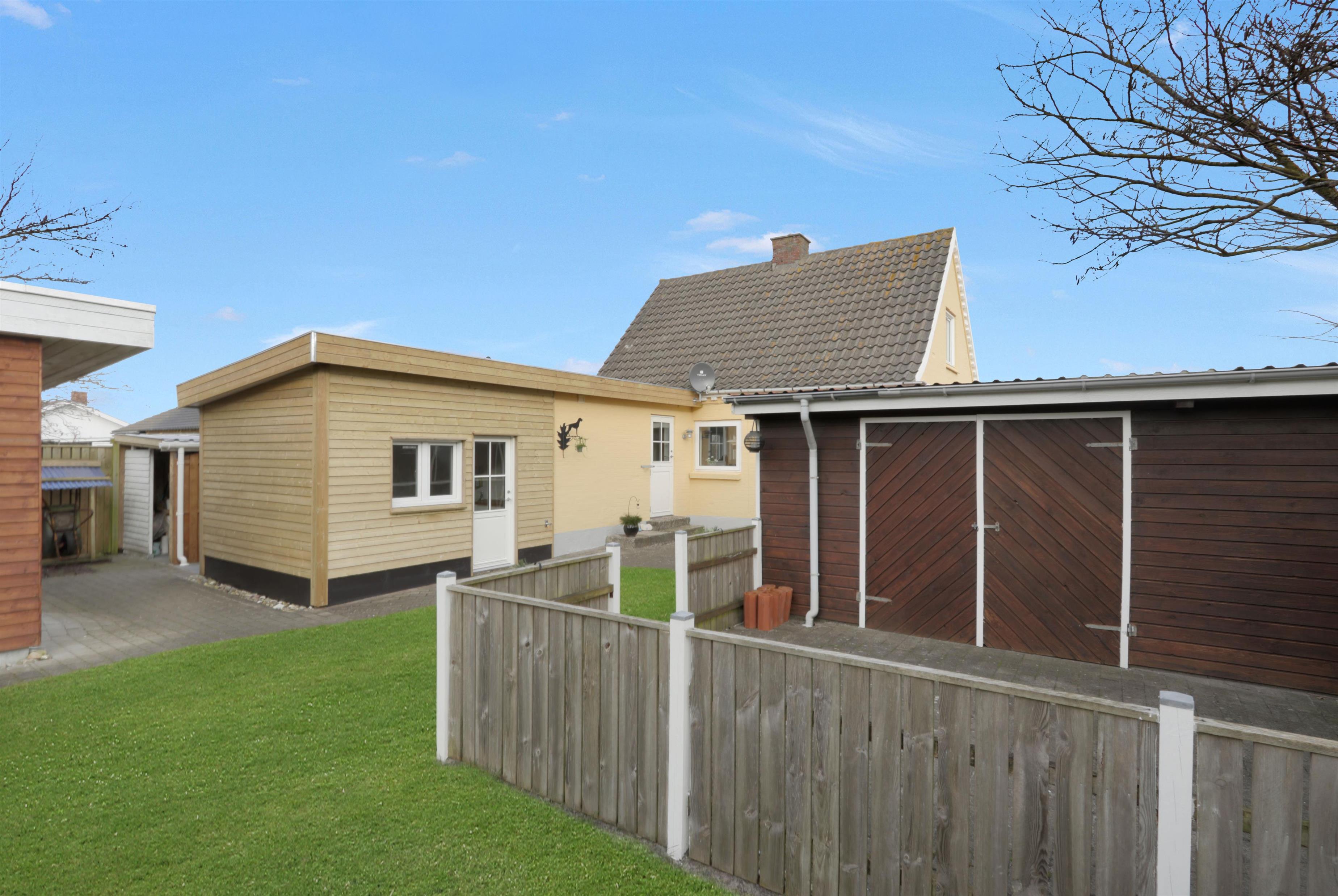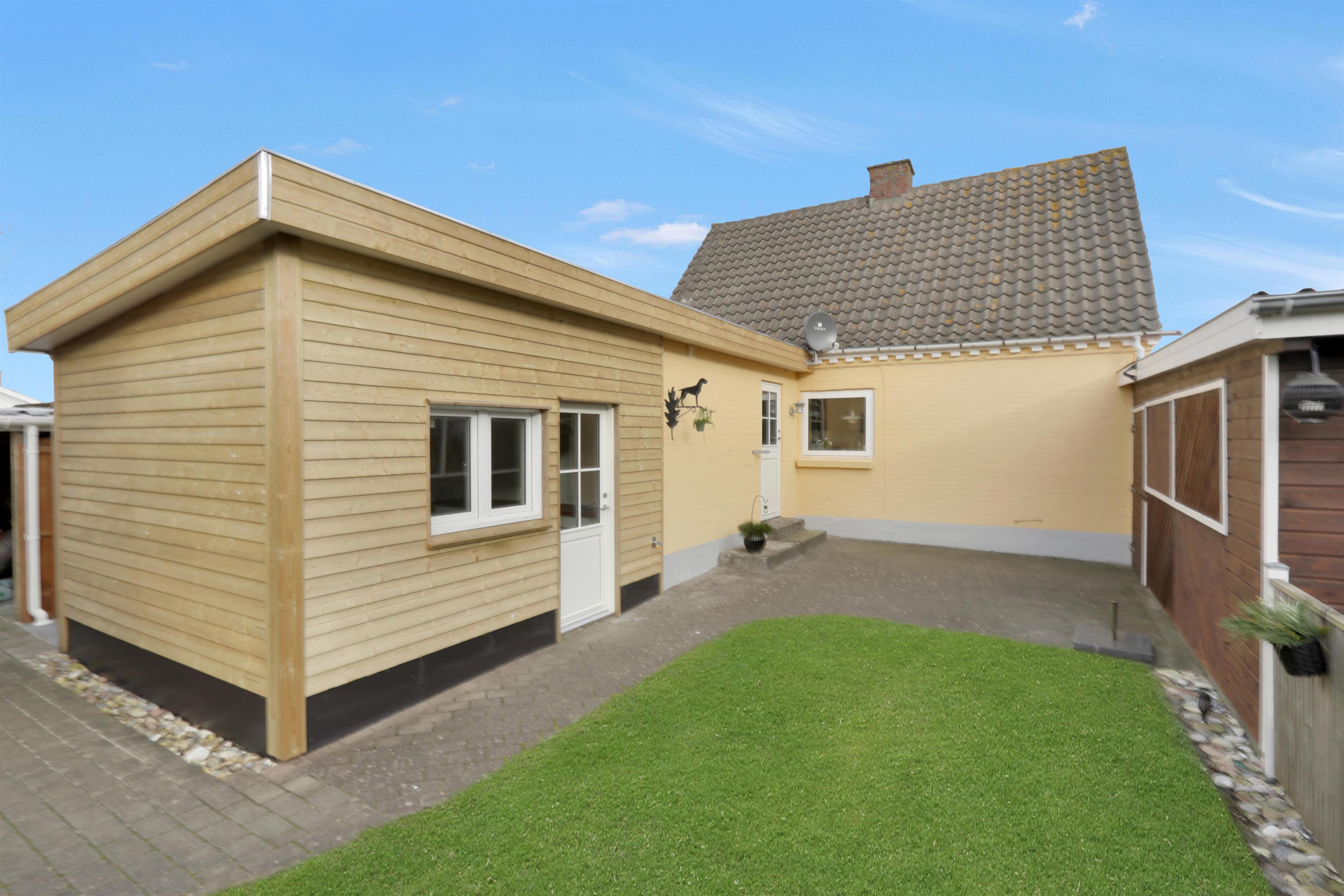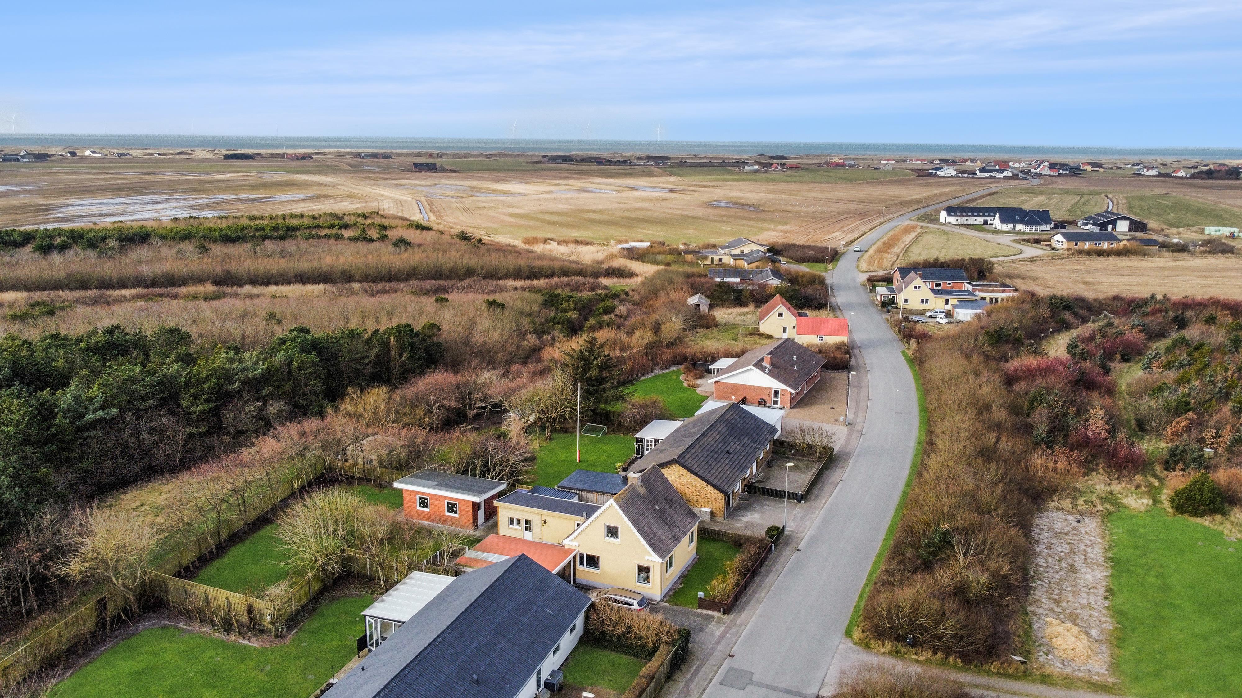 Den 747 m² store grund er indhegnet, hvilket giver masser af tryghed for både børn og hund. Den dejlige, lukkede terrasse er udstyret med komfortable havemøbler, grill og parasol – perfekt til afslappede stunder i solen. Bilen kan parkeres sikkert i carporten, og med kun få minutters gang til Vesterhavet er det nemt at tage på spontane strandture, uanset om det er for en dukkert, en gåtur i sandet eller for at nyde den smukke solnedgang.