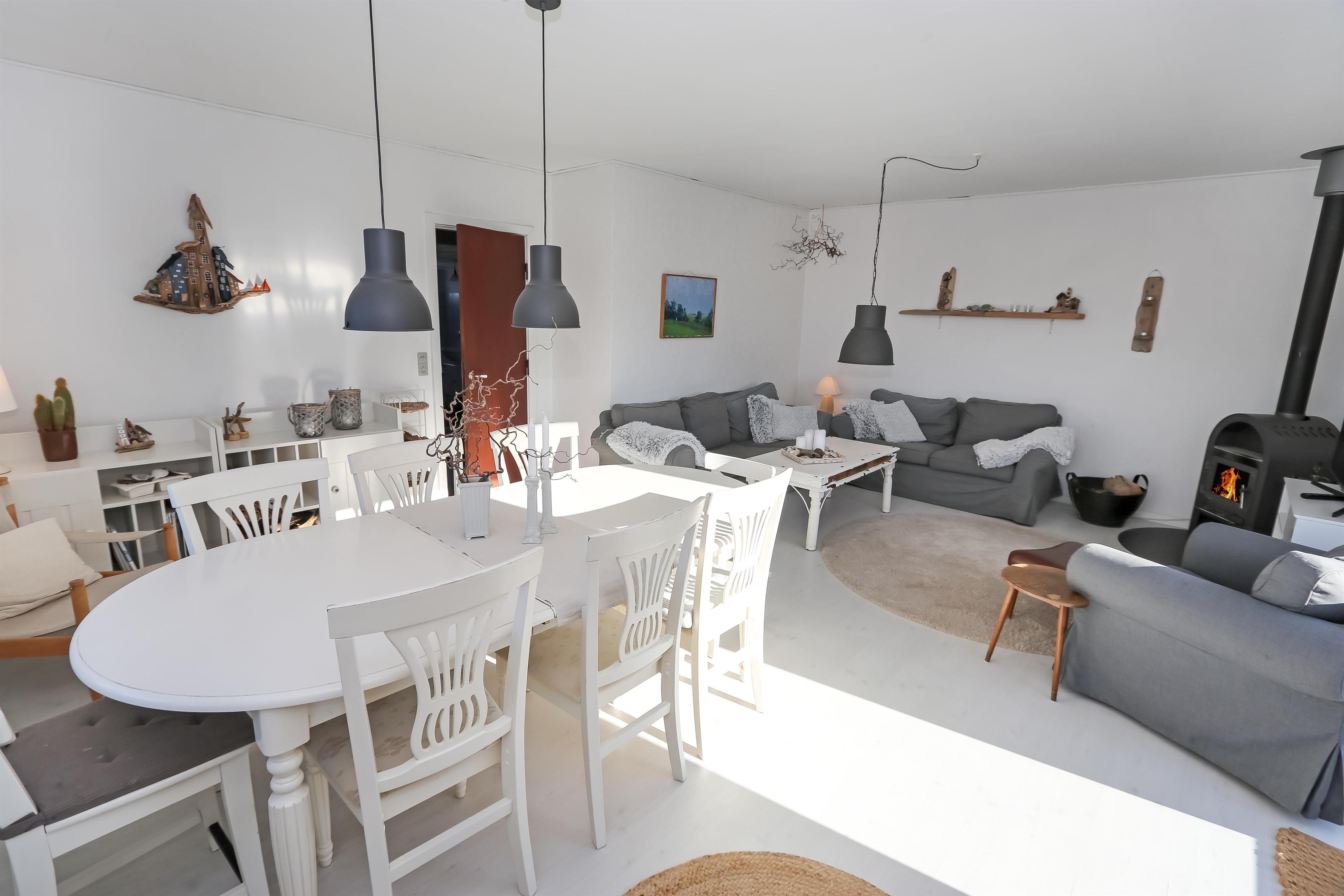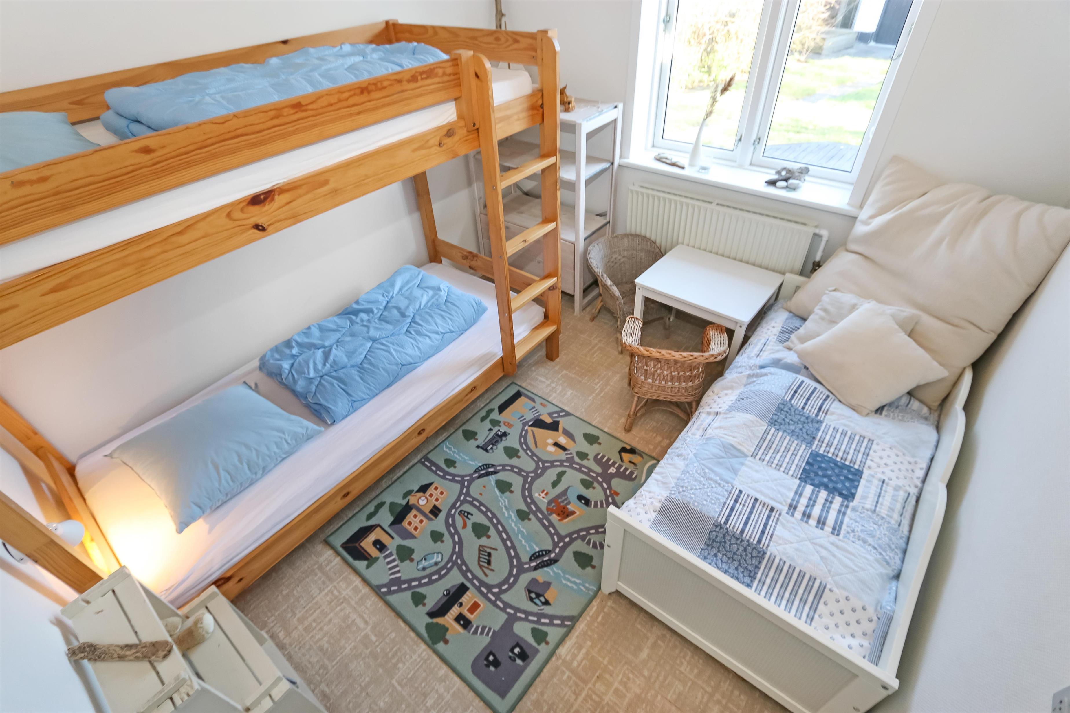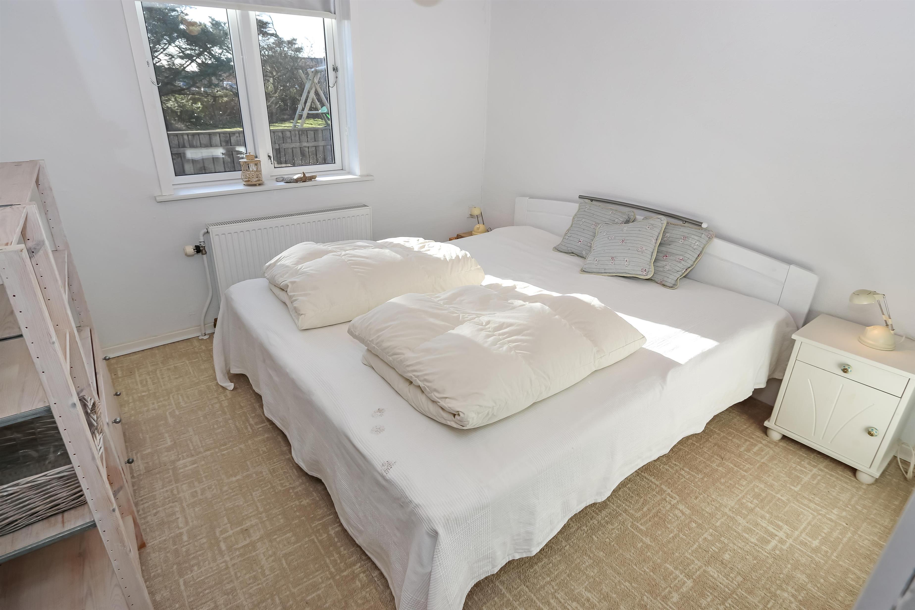 Godt indrettet helårshus på 117 m2 med 3 soveværelse (1DS, 1DS, 1KS). Opholdsstue med polstermøbler, spiseplads, brændeovn, TV med danske og tyske kanaler samt chromecast som giver mulighed for streaming af radio, TV og app´s. Veludstyret køkken med Glaskeramisk kogeplader, indbygningsovn, mikroovn, emhætte, opvaskemaskine og køleskab og fryser på 70 l. Brygges ekstra afhængeplads. Dejligt badeværelse, toilet, håndvask, spabad med håndbruser, pusleplads, vaskemaskine og tørretumbler samt klinkegulv med gulvvarme. Ekstra toilet med håndvask og bruser. Lille charmerende arbejdsværelse med udsigt til landskabet. Huset har fjernvarme. Ikke ryger hus. Max. 2 husdyr tilladt.