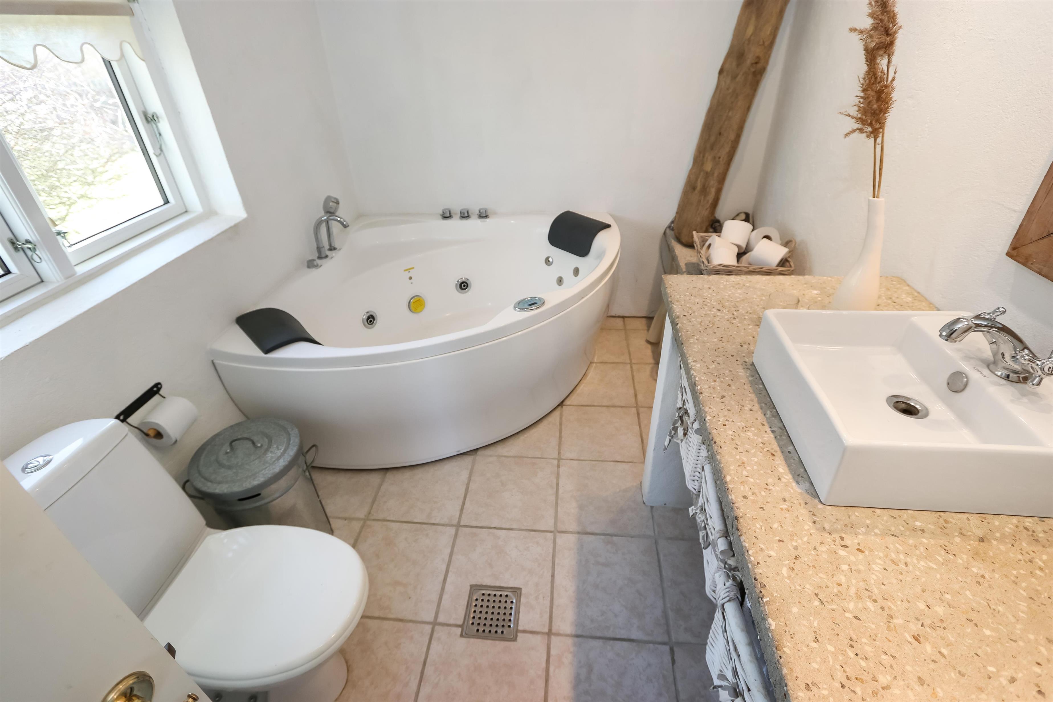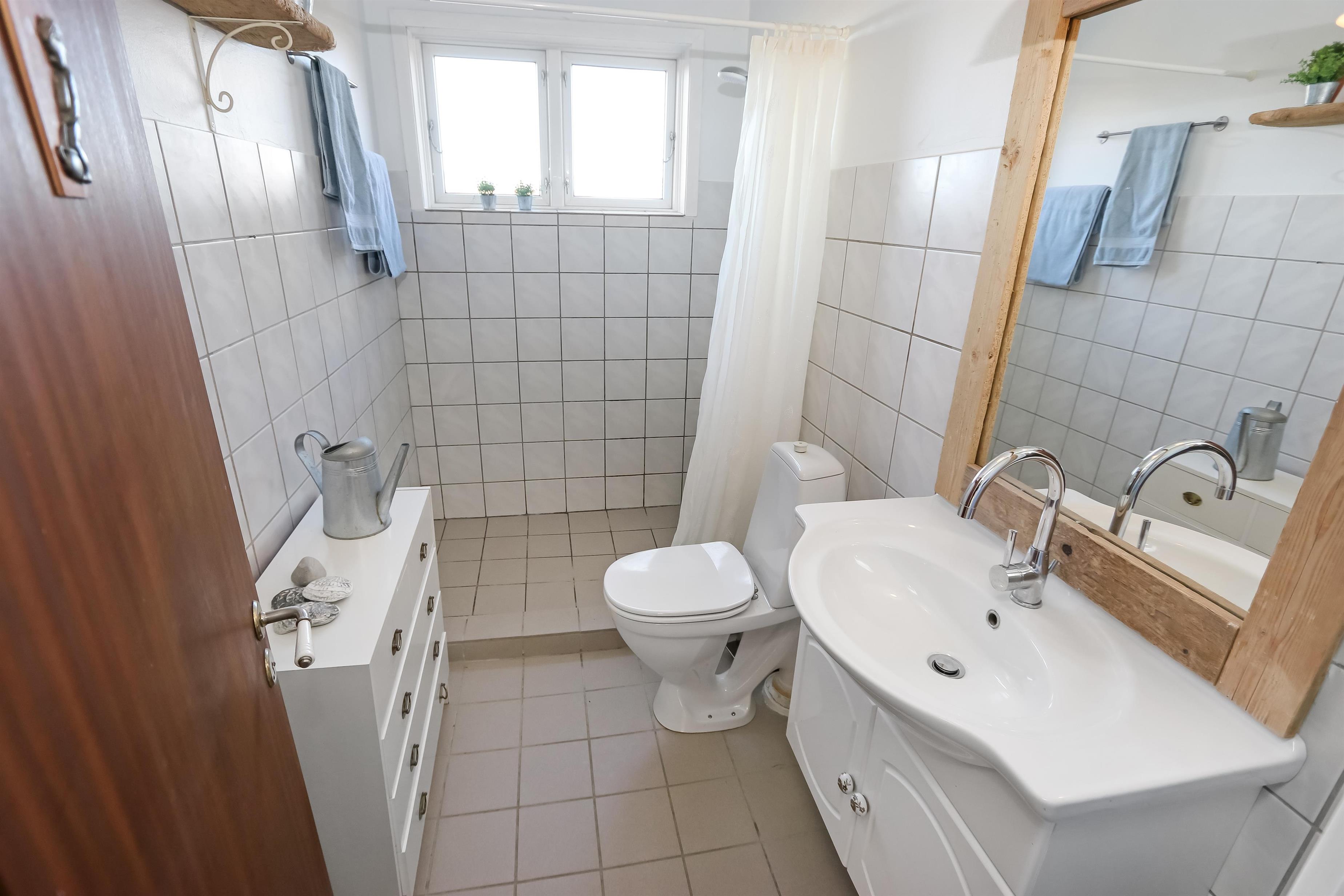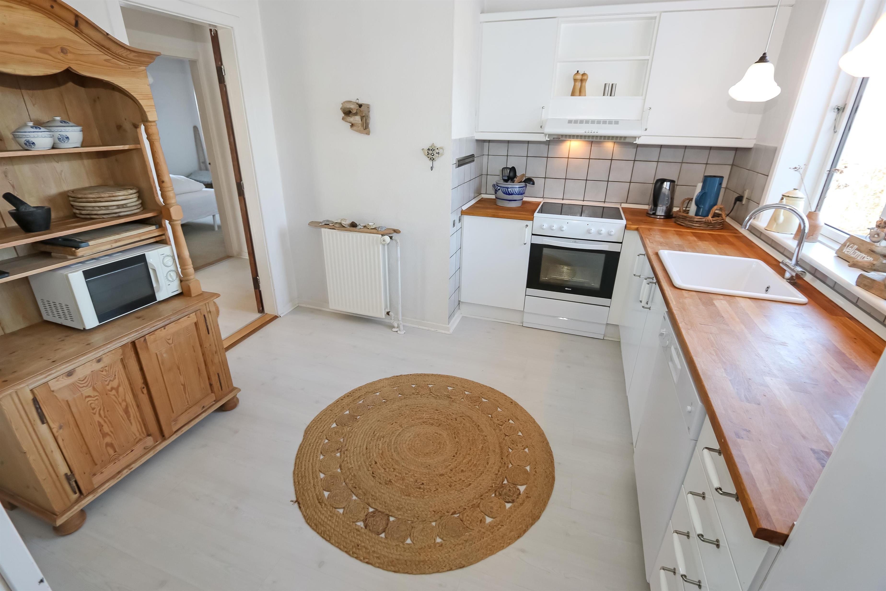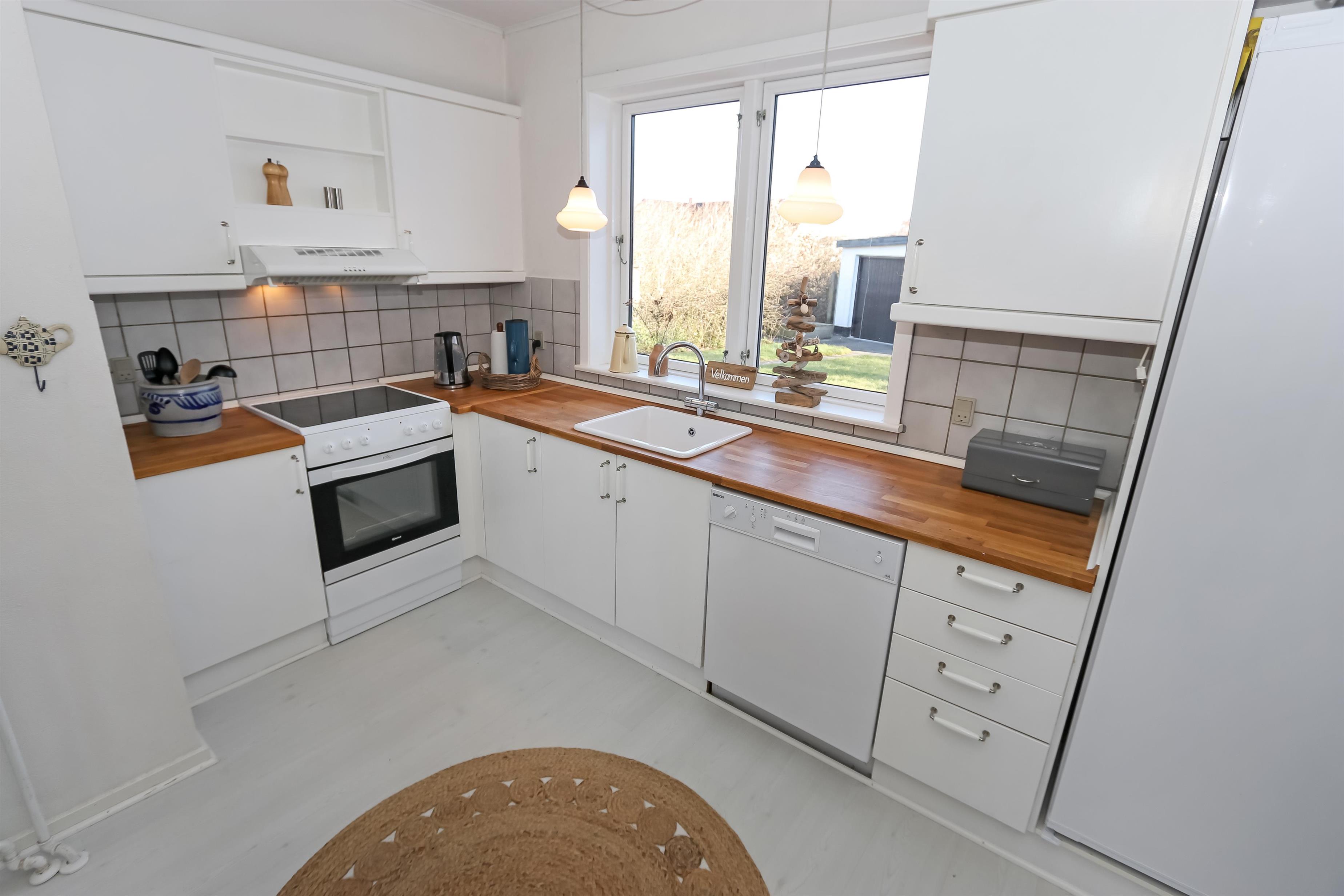 Godt indrettet helårshus på 117 m2 med 3 soveværelse (1DS, 1DS, 1KS). Opholdsstue med polstermøbler, spiseplads, brændeovn, TV med danske og tyske kanaler samt chromecast som giver mulighed for streaming af radio, TV og app´s. Veludstyret køkken med Glaskeramisk kogeplader, indbygningsovn, mikroovn, emhætte, opvaskemaskine og køleskab og fryser på 70 l. Brygges ekstra afhængeplads. Dejligt badeværelse, toilet, håndvask, spabad med håndbruser, pusleplads, vaskemaskine og tørretumbler samt klinkegulv med gulvvarme. Ekstra toilet med håndvask og bruser. Lille charmerende arbejdsværelse med udsigt til landskabet. Huset har fjernvarme. Ikke ryger hus. Max. 2 husdyr tilladt.
