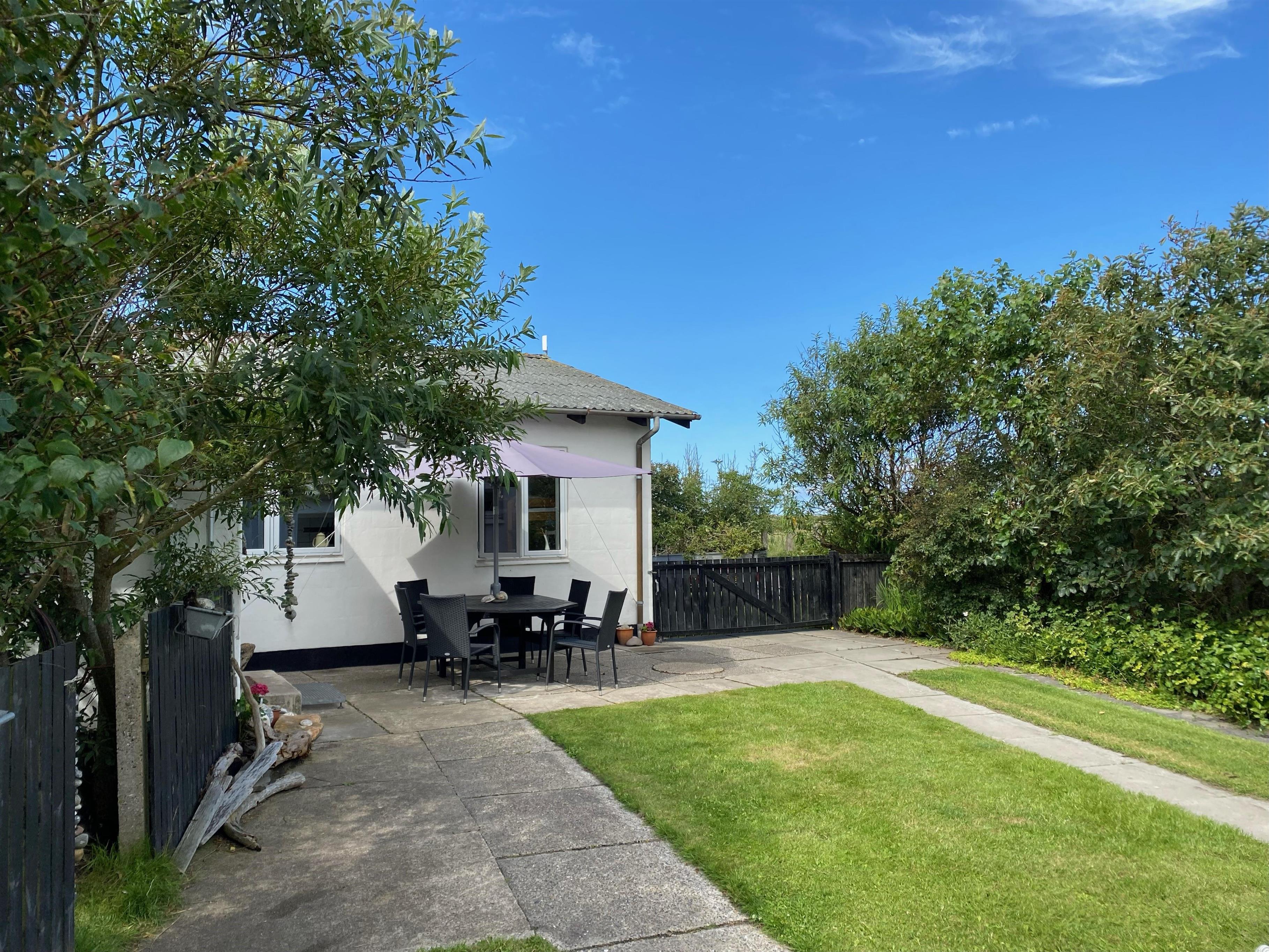Fra stuen er der udgang til en dejlig terrasse med havemøbler, solvogne og grill. Beliggende på en ca. 1.254 m2 stor ugenert indhegnet grund. Gynger og sandkasse. På terrassen er der altid læ og god mulighed for en plads i solen. ca. 1 km fra huset er der massere af indkøbsmuligheder samt Harboøre centret hvor der er mulighed for afhentning af mad samt massere af aktivitetsmuligheder. Indenfor 10 - 15 km fra huset kan flere seværdigheder, aktiviteter og shoppingmuligheder nås. Havet ligger også tæt på med mulighed for gåture og høfter som er rigtig gode at fiske fra.
