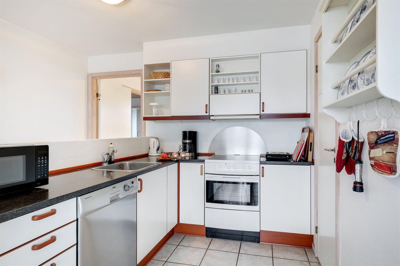 Køkkenet er udstyret med 1 køleskab. Der er 4 keramiske kogeplader, varmluftovn, mikrobølgeovn samt opvaskemaskine.