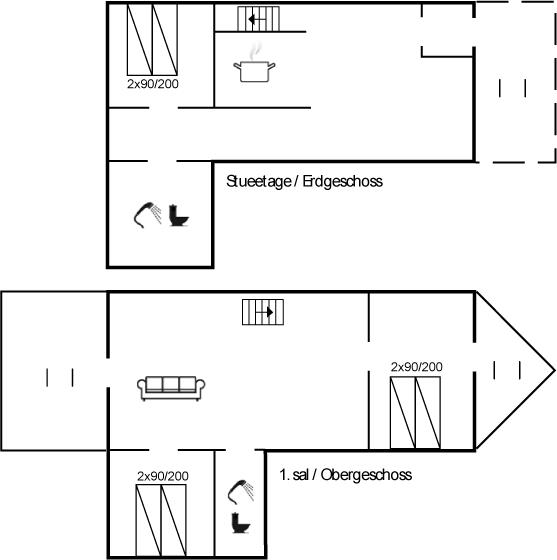 Der er i alt 3 soveværelser. Sovepladserne fordeler sig på: 8 sovepladser i dobbeltsenge. 2 af disse sovepladser befinder sig på husets hems.