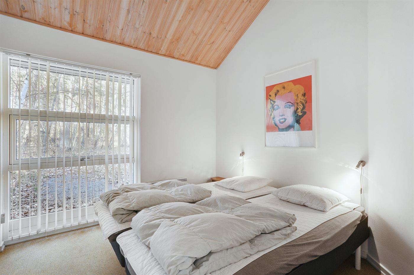 Der er i alt 4 soveværelser. Sovepladserne fordeler sig på: 6 sovepladser i dobbeltsenge. 2 sovepladser i enkeltsenge. 2 sovepladser på madrasser. 2 af disse sovepladser befinder sig på husets hems. Derudover er der 1 stk. barneseng.