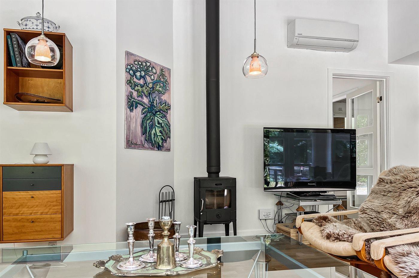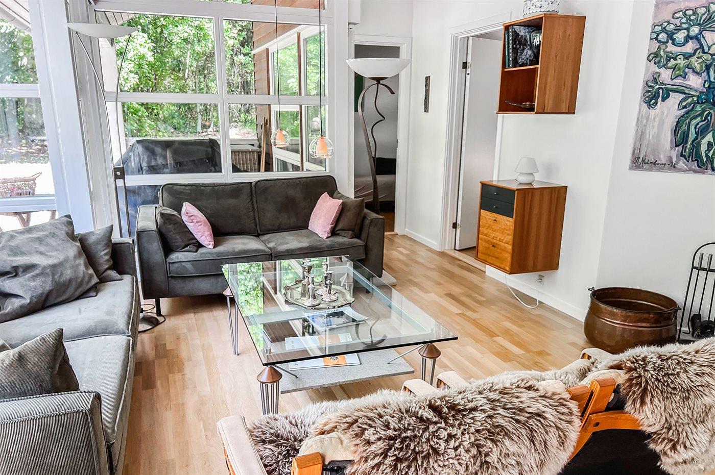 Luksushus i skov nær Hasle med sauna, spa og store terrasser.