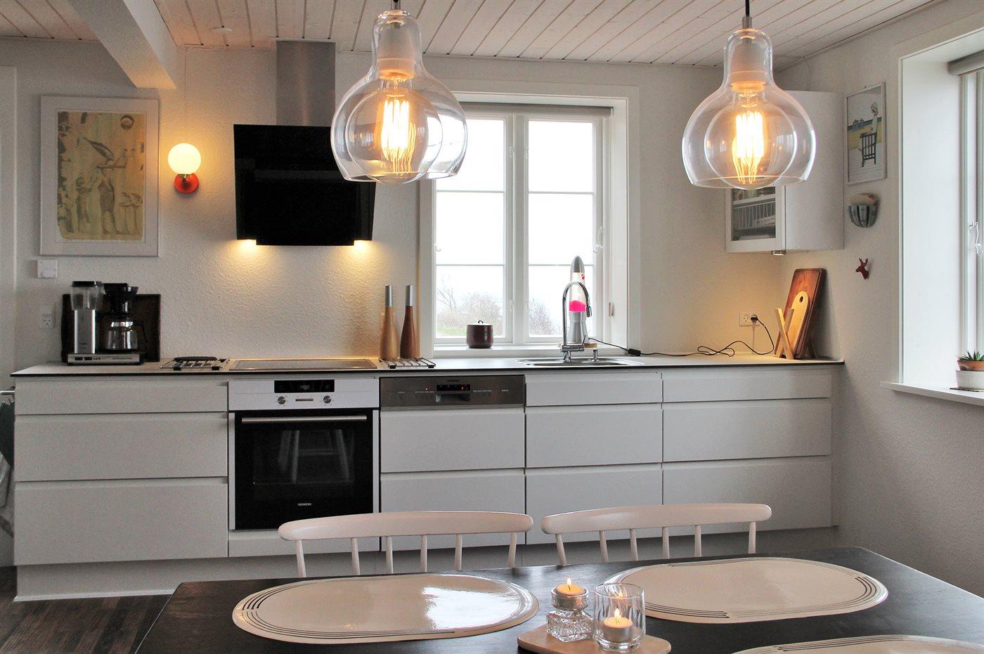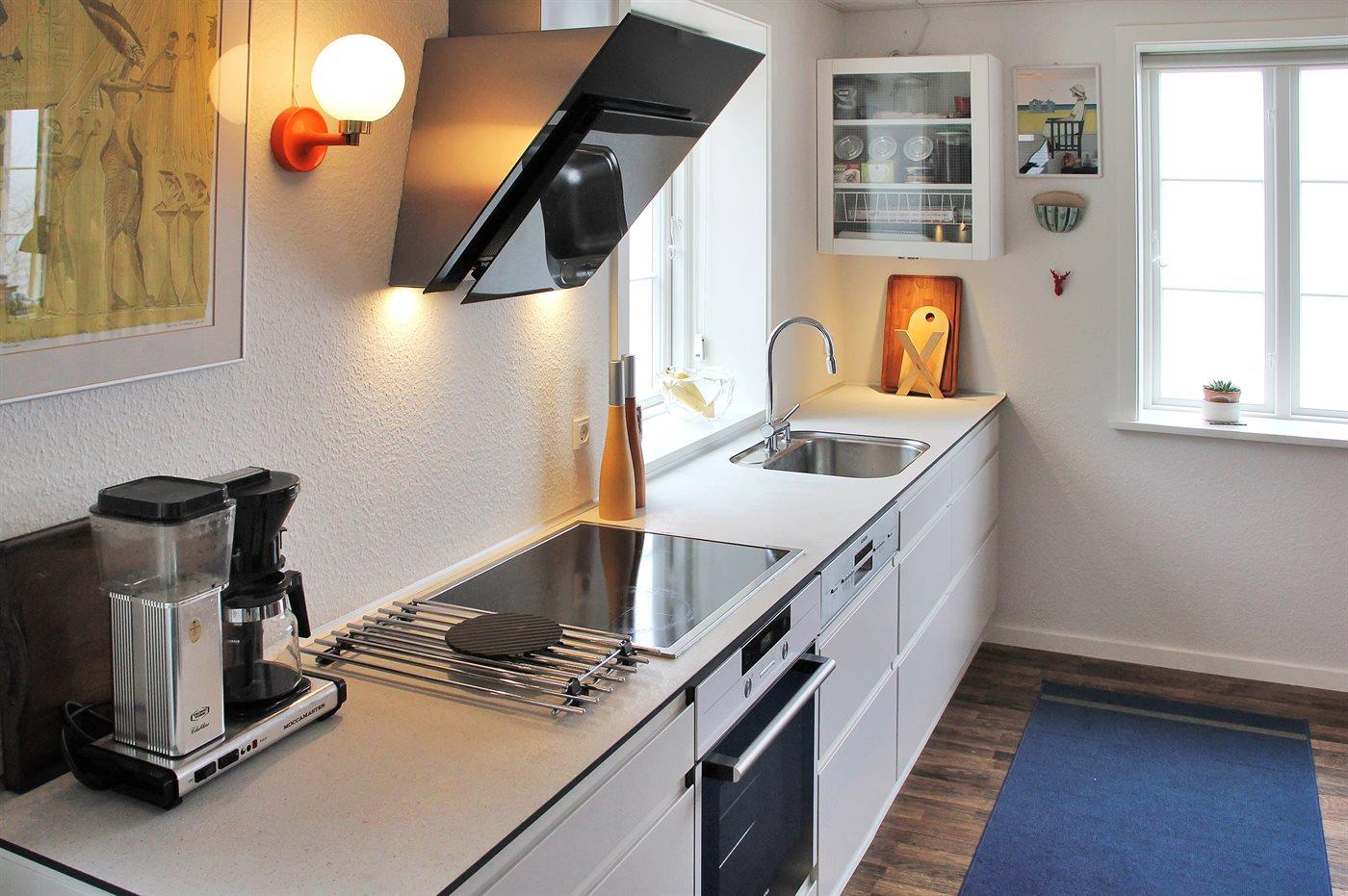 Køkkenet er udstyret med 1 køleskab. Der er 4 keramiske kogeplader, varmluftovn, mikrobølgeovn samt opvaskemaskine.