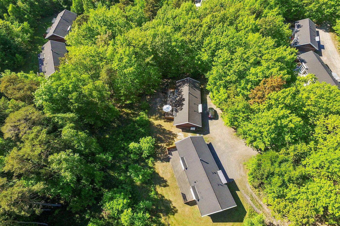Ferieboligen er beliggende på en 1250 m² stor naturgrund. Der er 500 m til havet. Nærmeste forretning er beliggende i en afstand af 3000 m. Der er en golfbane i en afstand af 8000 m. Til ferieboligen hører 30 m² terrasseareal. Desuden er der 10 m² overdækket terrasse. Parkering ved ferieboligen.