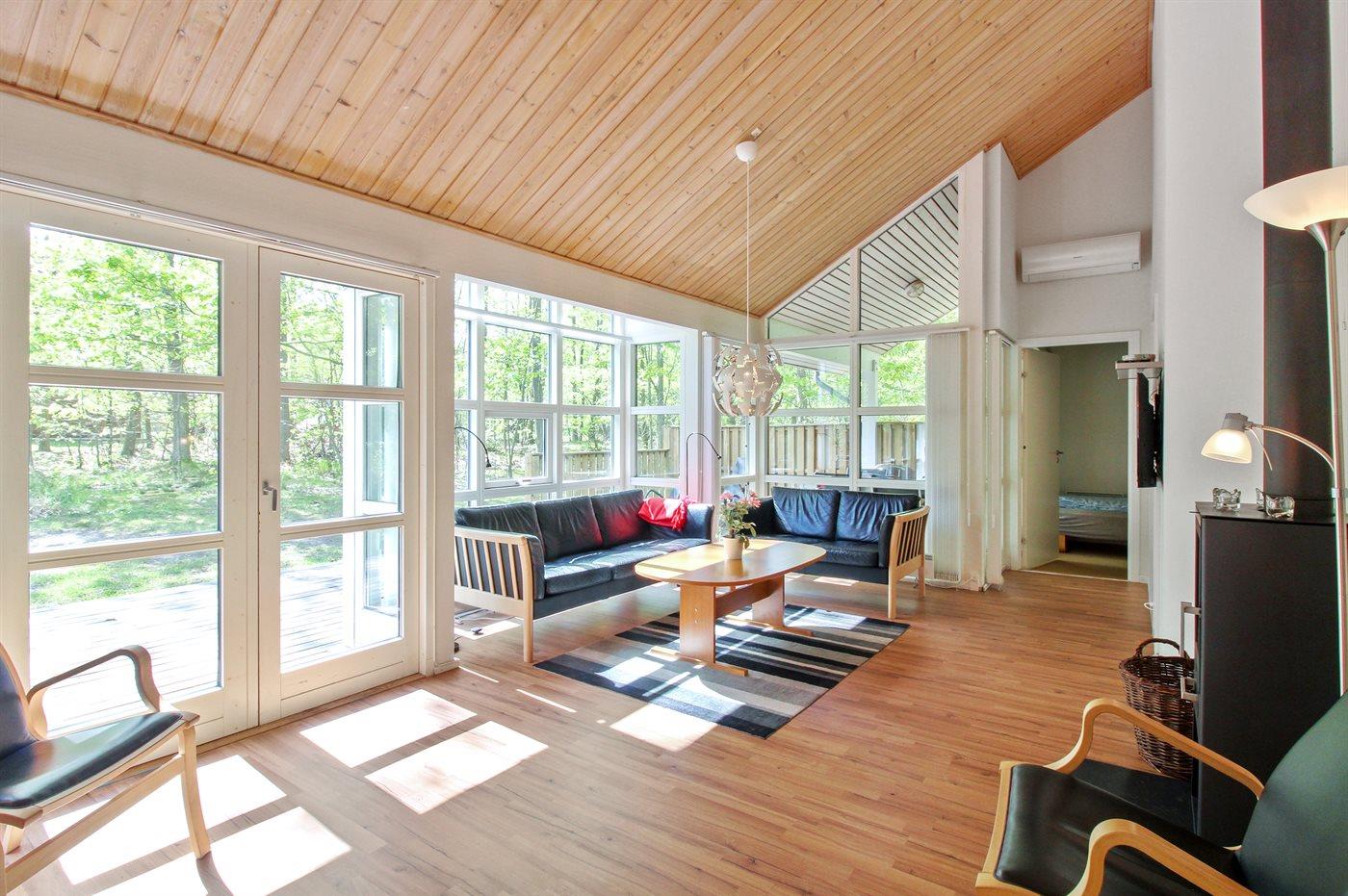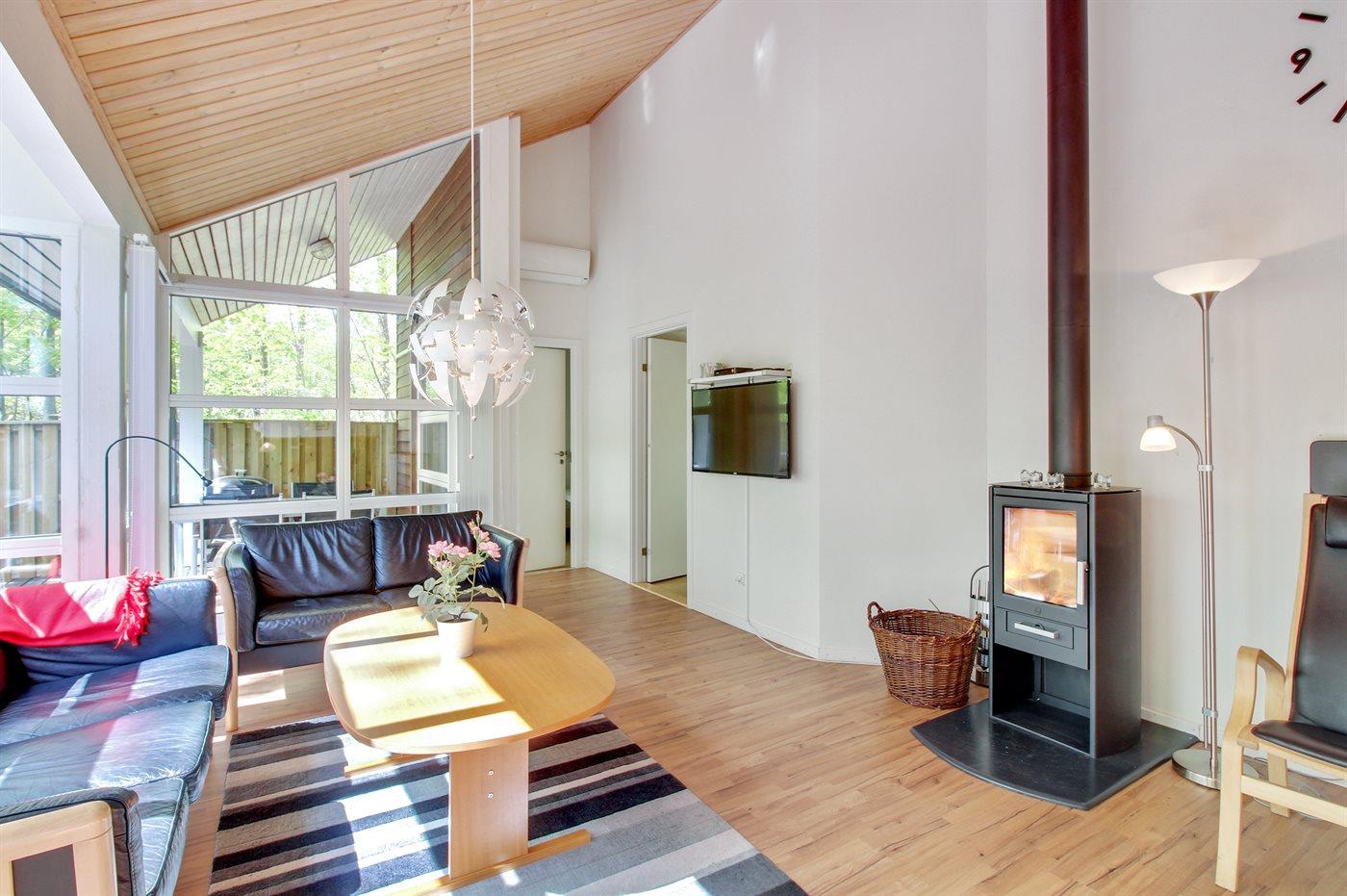 Sommerhuset egner sig til 8 personer samt 1 barn op til 3 år. Ferieboligen er på 117 m² og er bygget i 1999. Det er tilladt at medbringe 1 husdyr. Ferieboligen er udstyret med energibesparende varmepumpe. Ferieboligen har vaskemaskine. Tørretumbler. Frysekapacitet på 20 liter. Der er desuden brændeovn. Til de små er der 1 stk. barnestol.