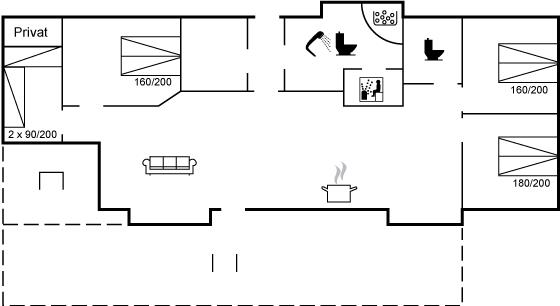 Der er i alt 4 soveværelser. Sovepladserne fordeler sig på: 6 sovepladser i dobbeltsenge. 2 sovepladser i enkeltsenge. Derudover er der 1 stk. barneseng.
