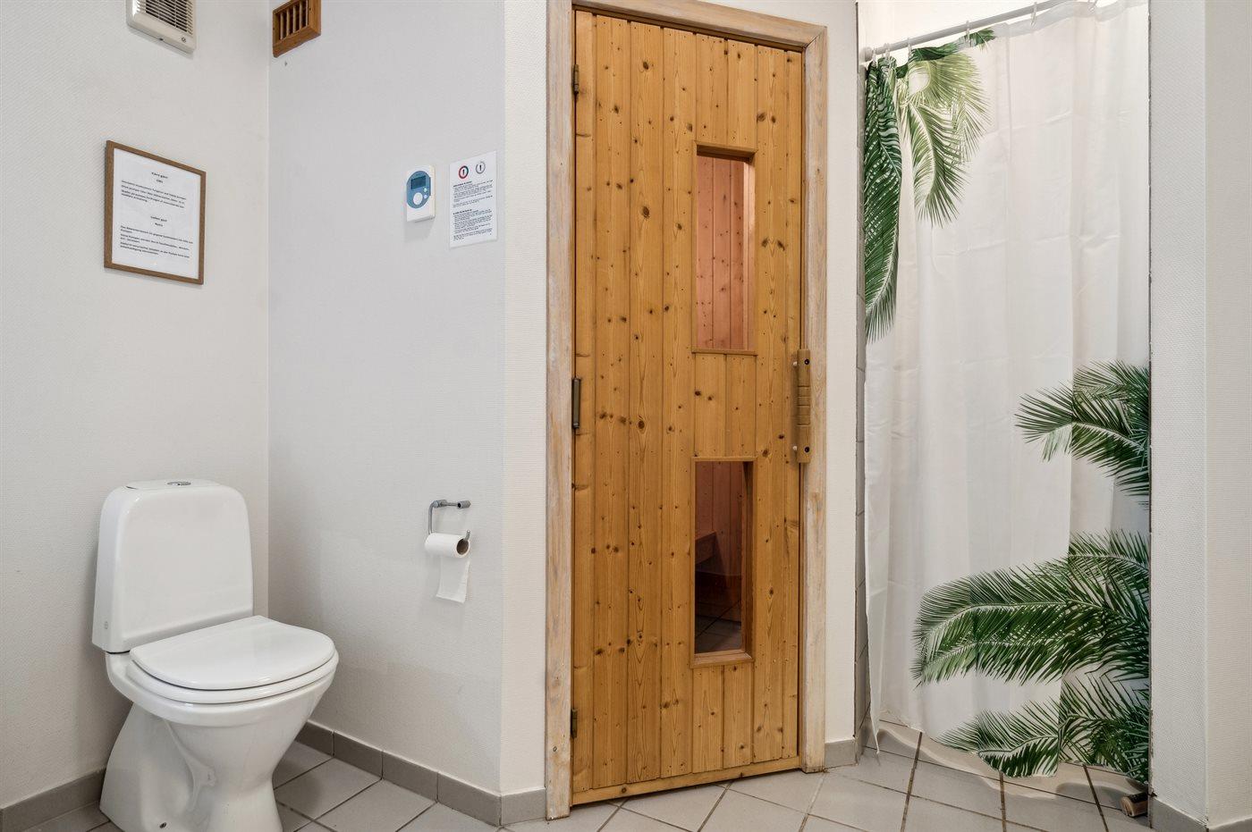 Der er 1 badeværelse med bruseniche og 2 toiletter, heraf 1 gæstetoilet. Der er gulvvarme på 1 badeværelse. Der er gulvvarme på gæstetoilettet. I saunaen er der mulighed for afslapning.