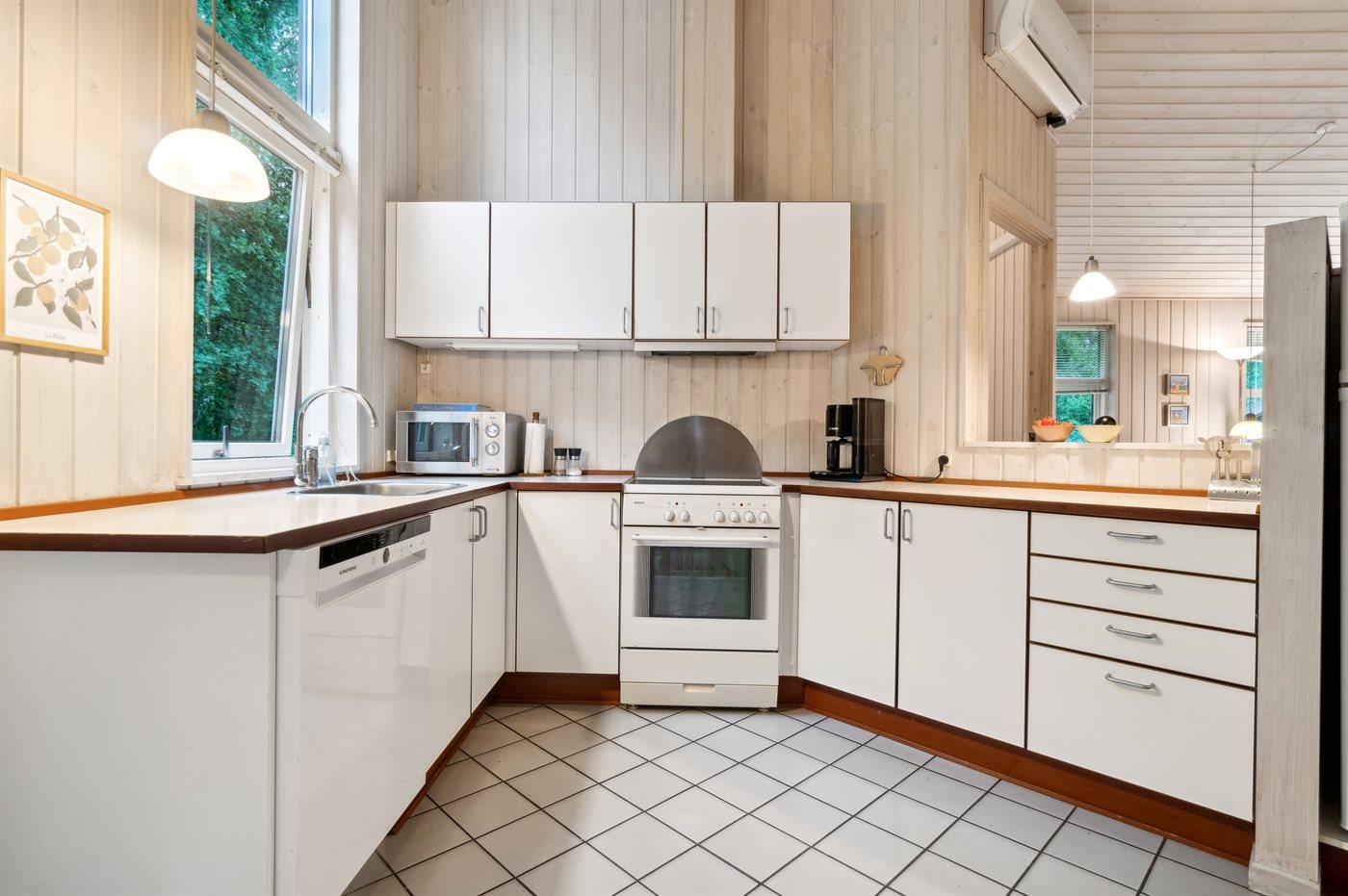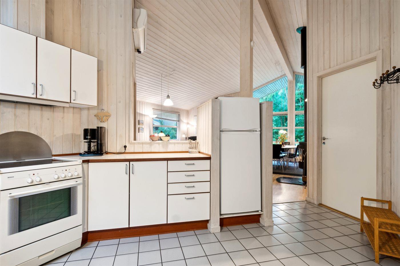 Køkkenet er udstyret med 1 køleskab. Der er 4 keramiske kogeplader, varmluftovn, mikrobølgeovn samt opvaskemaskine.