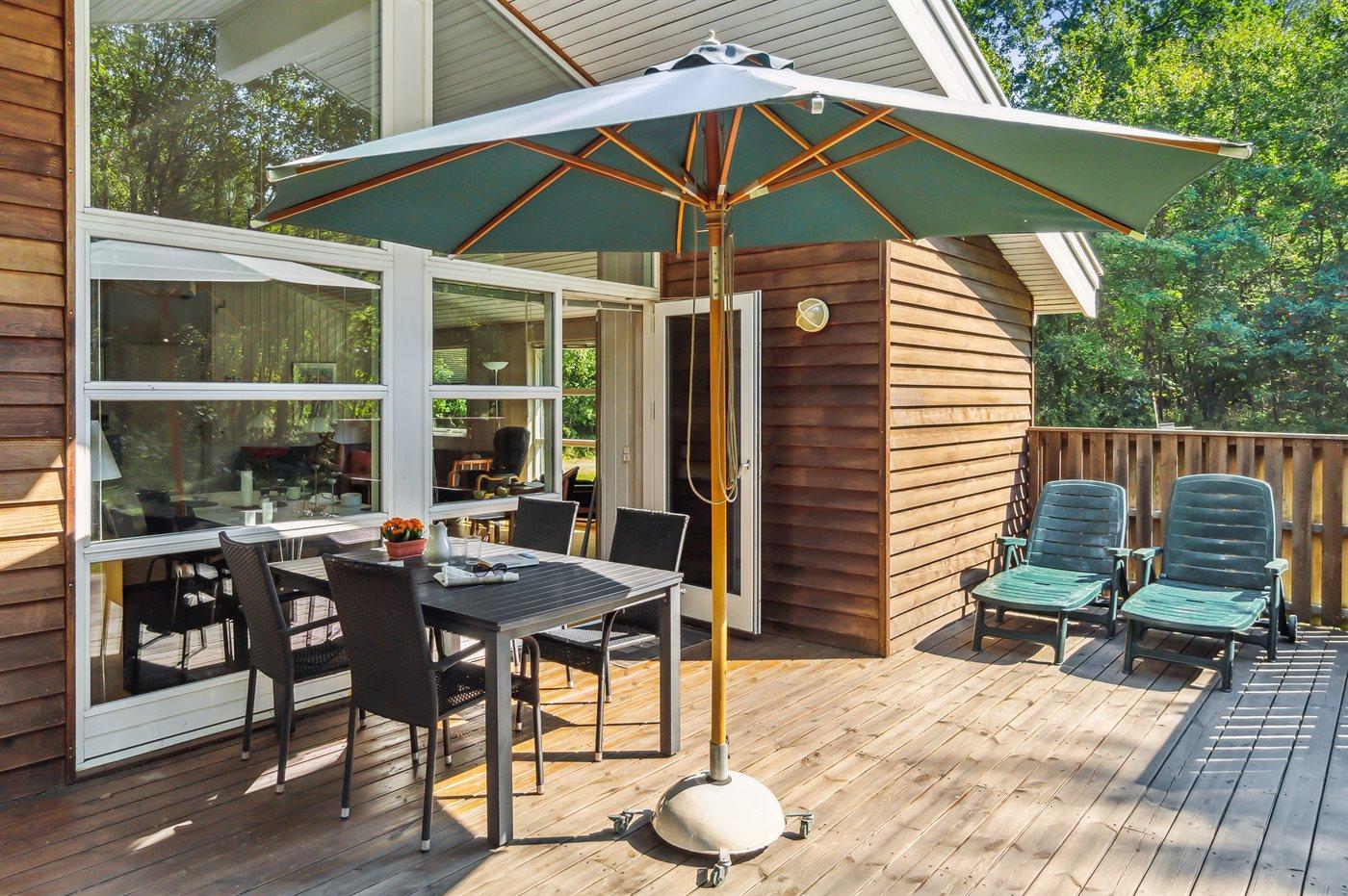 Nær Rubinsøen ligger dette komfortable sommerhus på en naturgrund med let træbevoksning, der omgiver en del af grunden, hvilket giver gode læmuligheder på den delvis overdækkede terrasse.