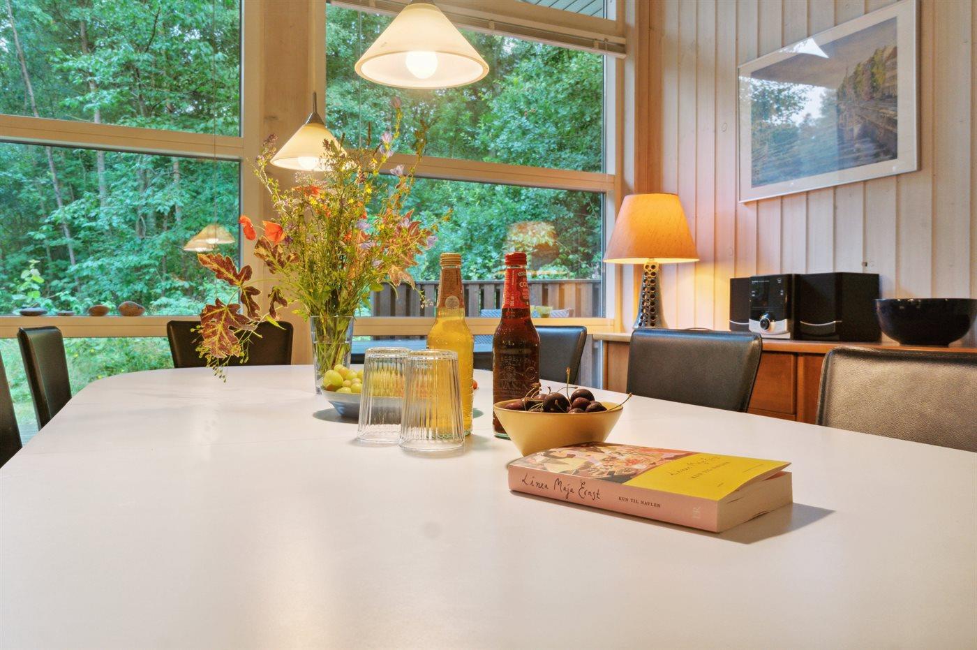 Huset er indrettet med et indbydende badeværelse med både spa og sauna. Den store lyse stue har en hyggelig sofaafdeling, hvor eftermiddagskaffen kan nydes og en spiseafdeling ved de store panoramavinduer ud mod terrassen.