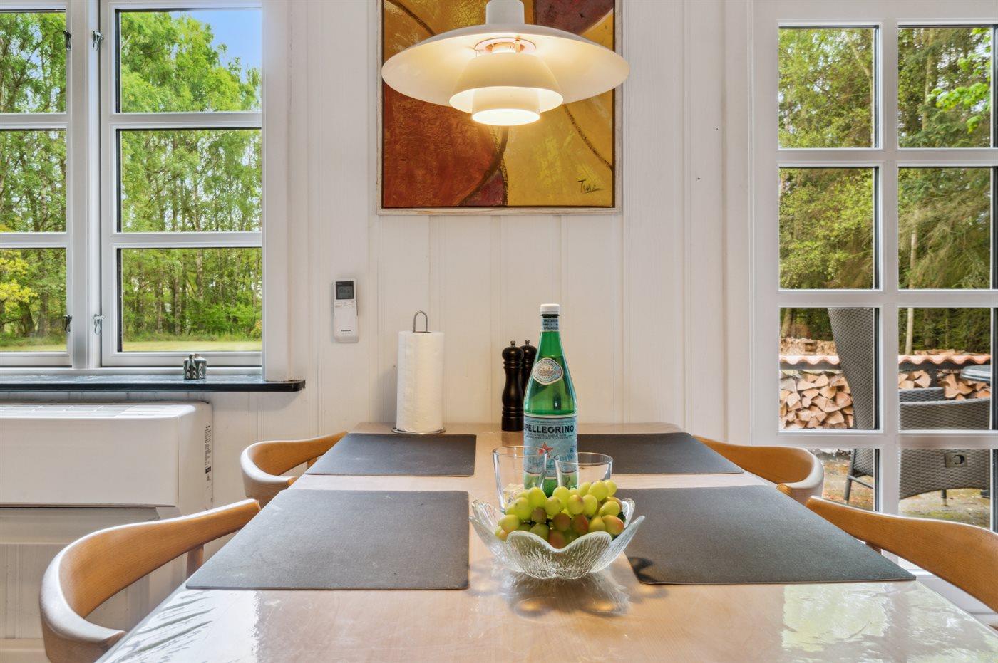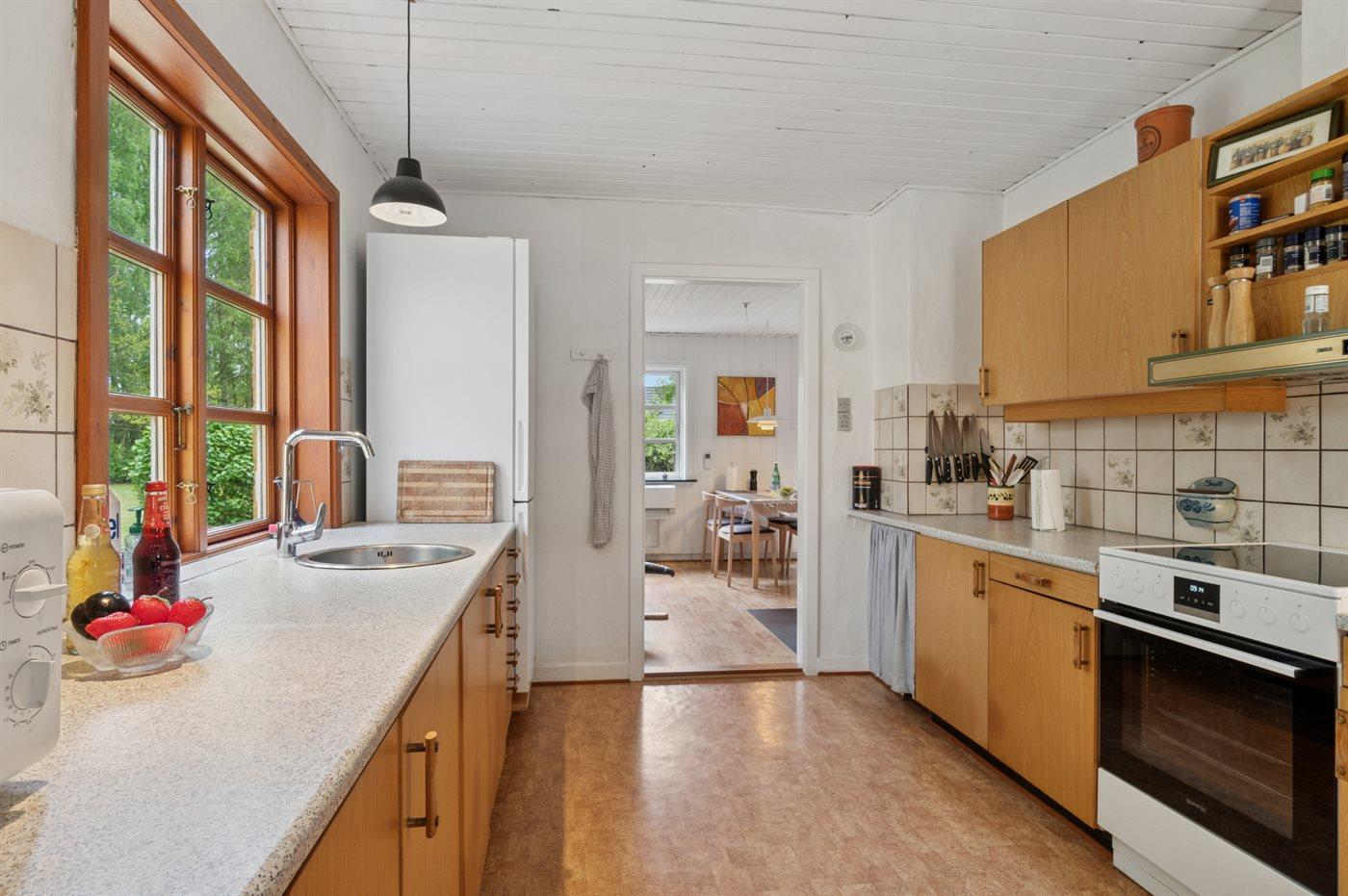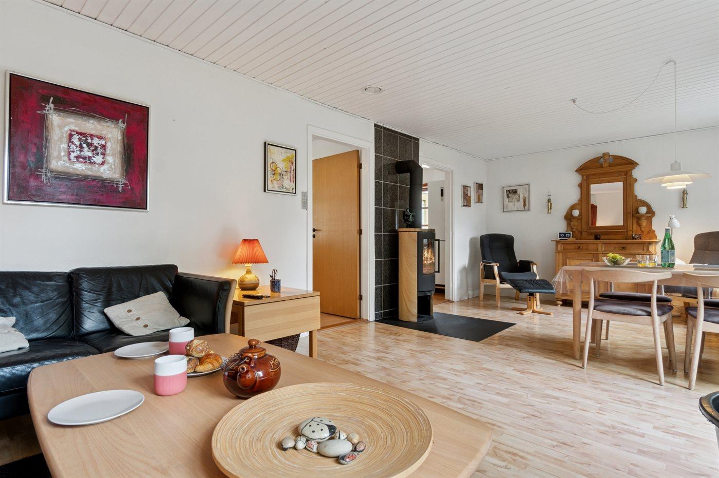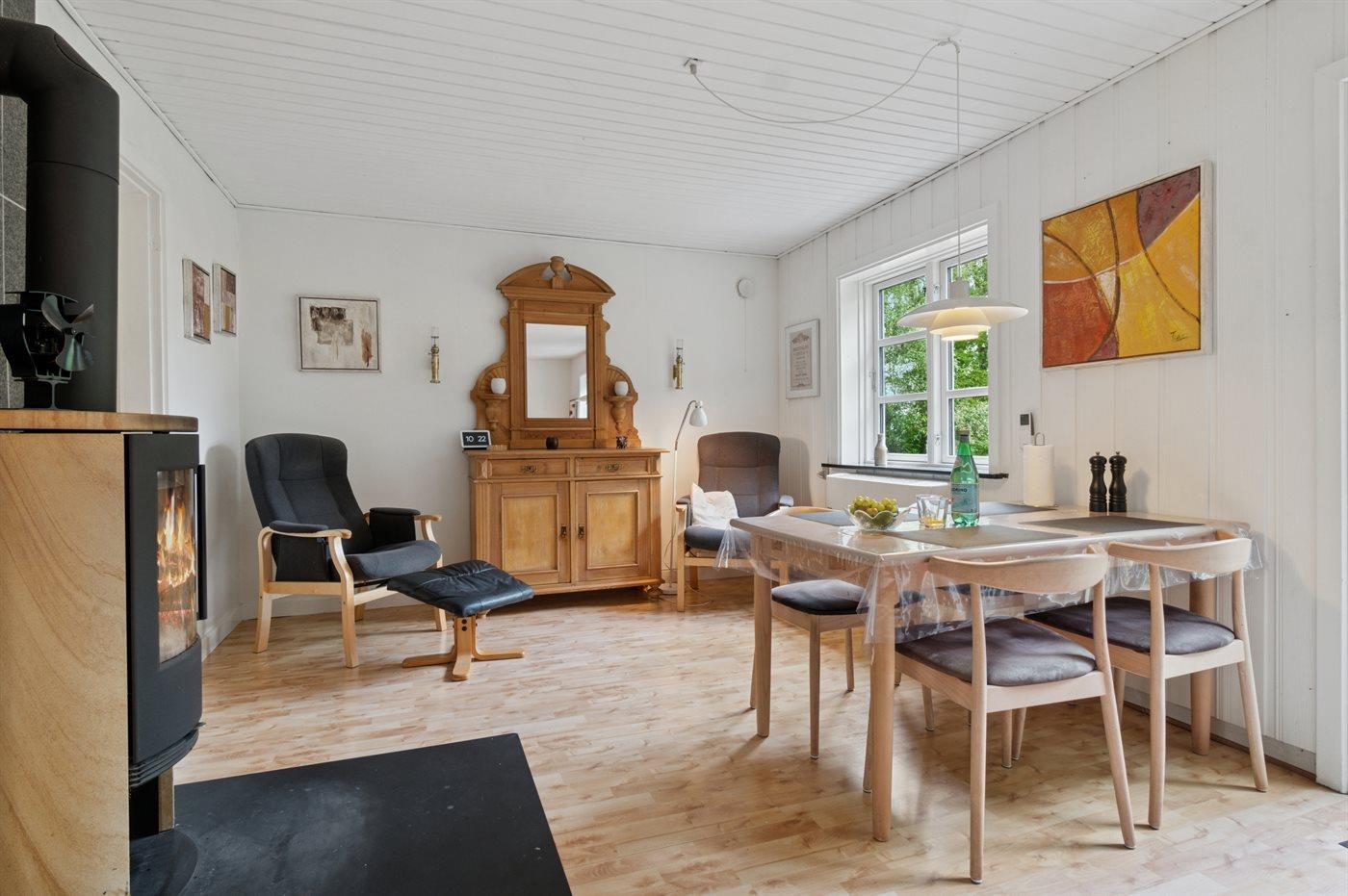 Fra sommerhusets lille terrasse kan solen nydes sammen med eftermiddagskaffen. I det velfungerende køkken kan man forberede familiens måltider i fred og ro. Stuen er hyggelig med et lyst interiør og god sofagruppe, når familien skal se TV. Soveværelserne er store og rummelige og ligger i hver sin ende af huset. Godt badeværelse.