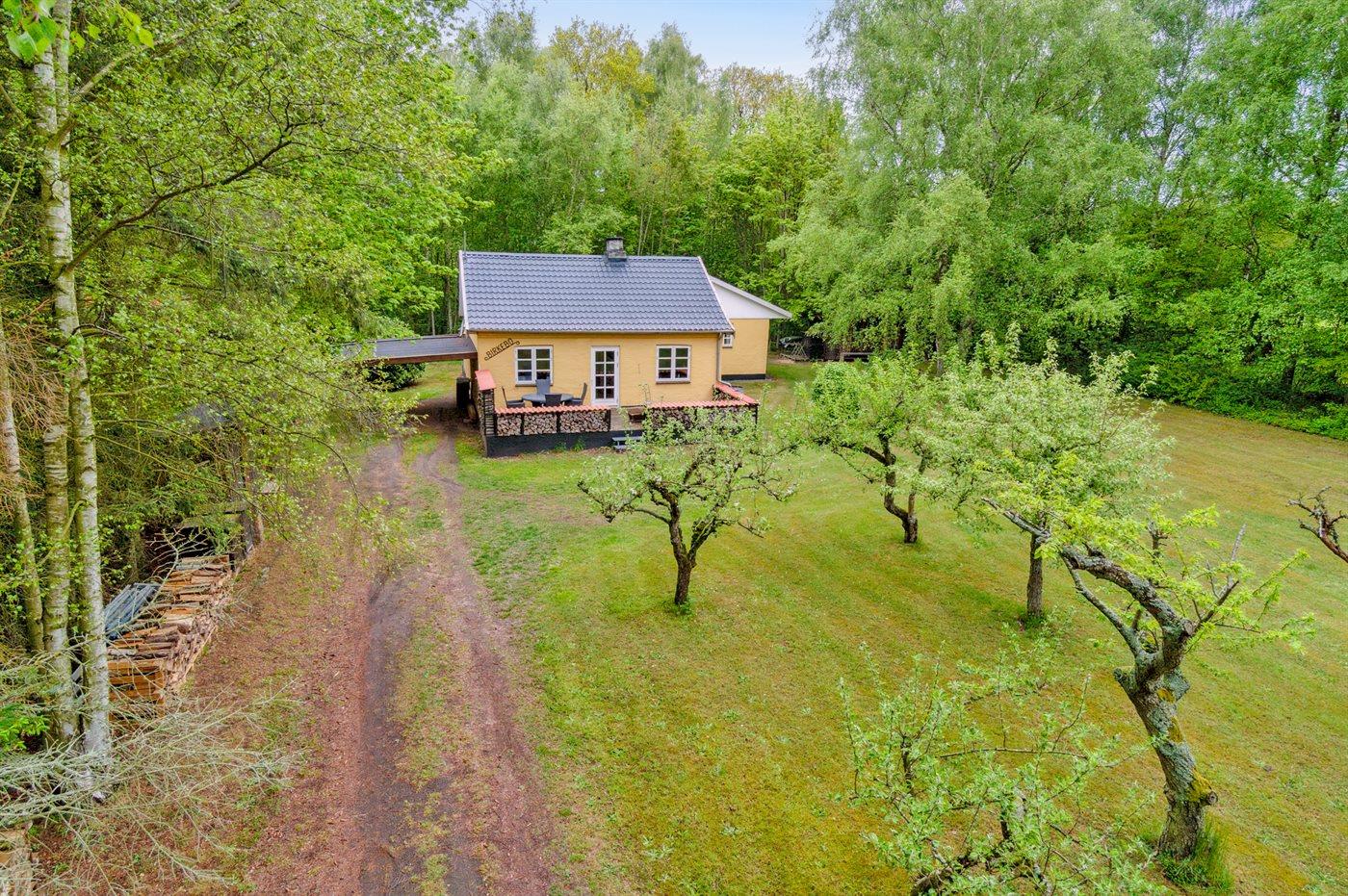 Absolut rolig beliggenhed, hvor man fornemmer, at man er tæt på naturen i lille sommerhusområde i landlige omgivelser. Det velholdte og helårsisolerede feriehus ligger på større grund, der er afgrænset af træer – ganske ugeneret og med meget få naboer.