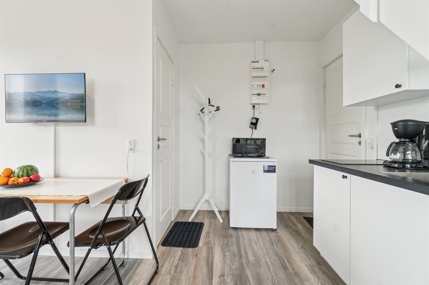 Køkkenet er udstyret med 1 køleskab. Der er 2 keramiske kogeplader, mikrobølgeovn.