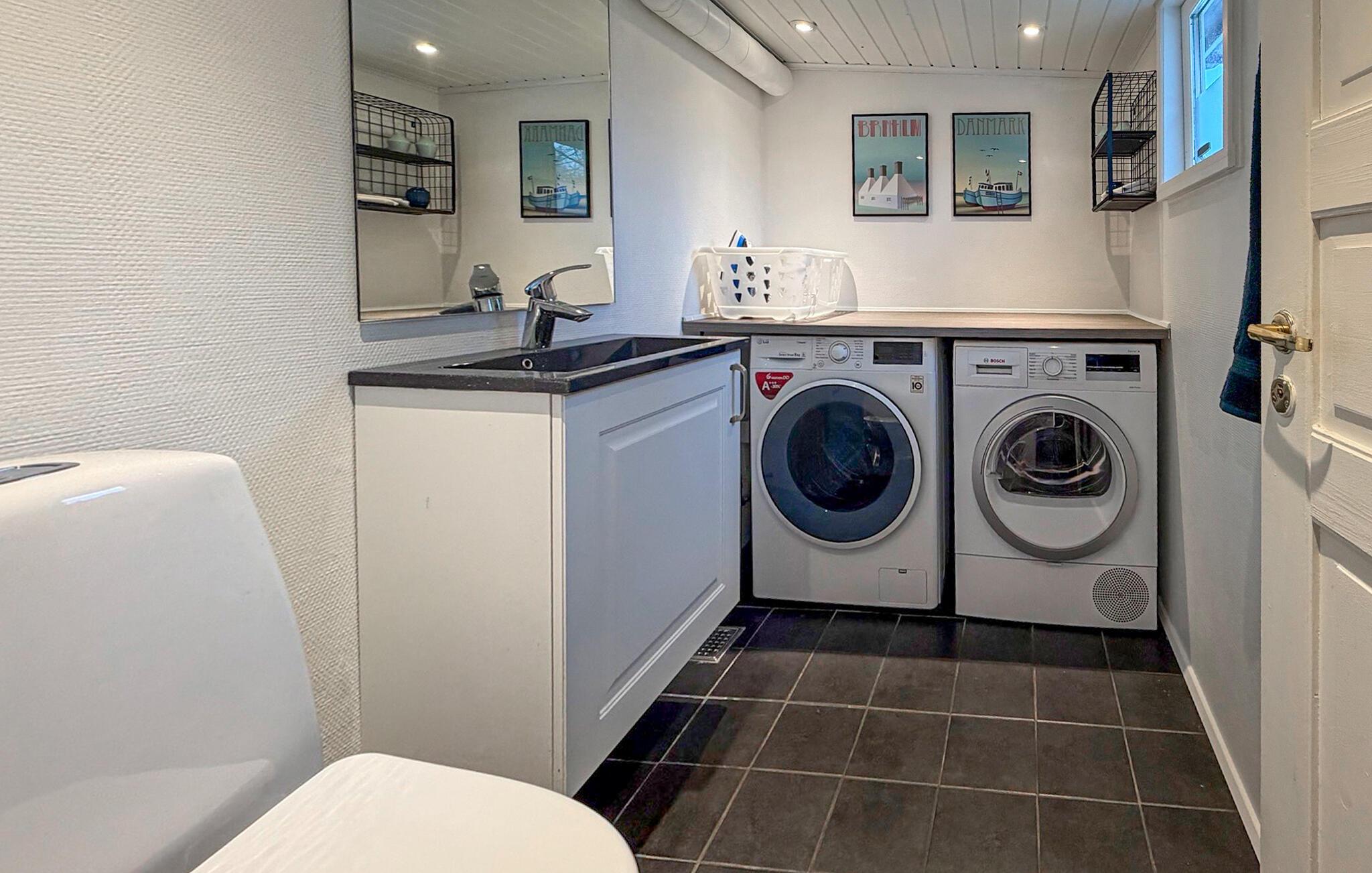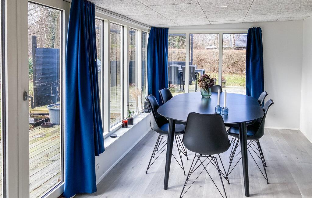 Dette feriehus åbner ud mod haven med store vinduer, der lukker masser af naturligt lys ind i opholdsrummet. Sæt jer til rette i sofaen eller lænestolen for en pause, mens I nyder udsigten over de grønne omgivelser. Sid ved spisebordet nær vinduerne og planlæg dagens udflugter. Tilbered jeres måltider i det lyse, moderne køkken, som har rigelig bordplads og integrerede apparater for nemheds skyld.