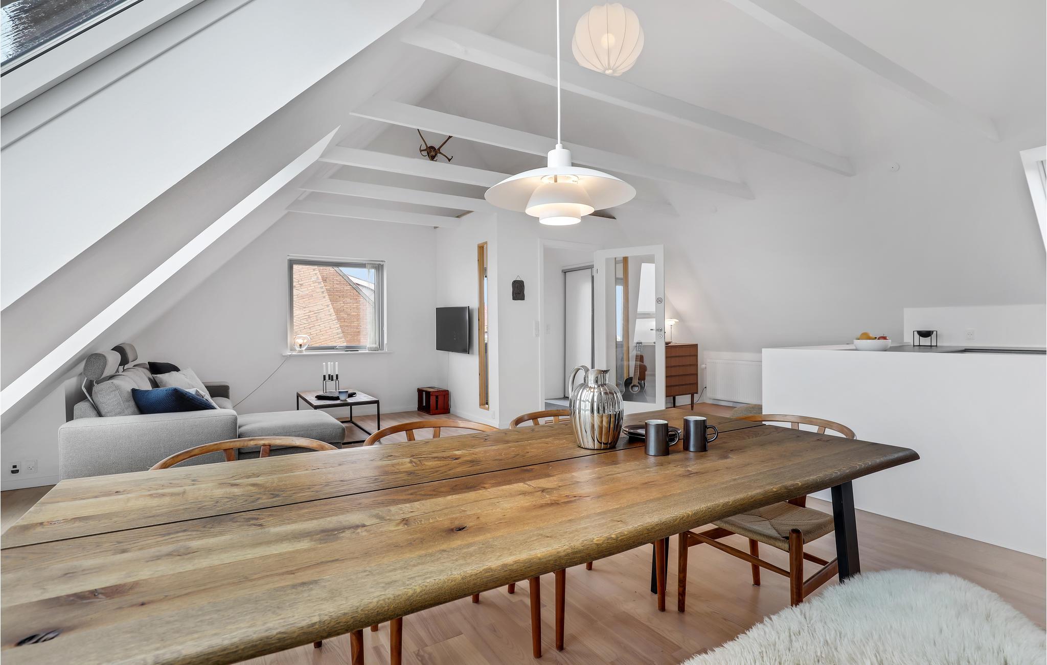 Findes der noget bedre end en ferie lige ud til en lille strand? Det gør der næppe, så denne lejlighed lægger op til en forrygende ferie på Bornholm. I kommer til at bo på 1. sal i en bolig med åbne hemser, fritlagte loftsbjælker og en helt særlig charme. Her glemmer man hurtigt alt om hverdagens travle program. I kan tilberede lækre ferieretter i køkkenet og senere læne jer tilbage i sofaen efter en lang dag på farten. I sommerhalvåret kan I grille på terrassen, mens I nyder udsigten over havet.