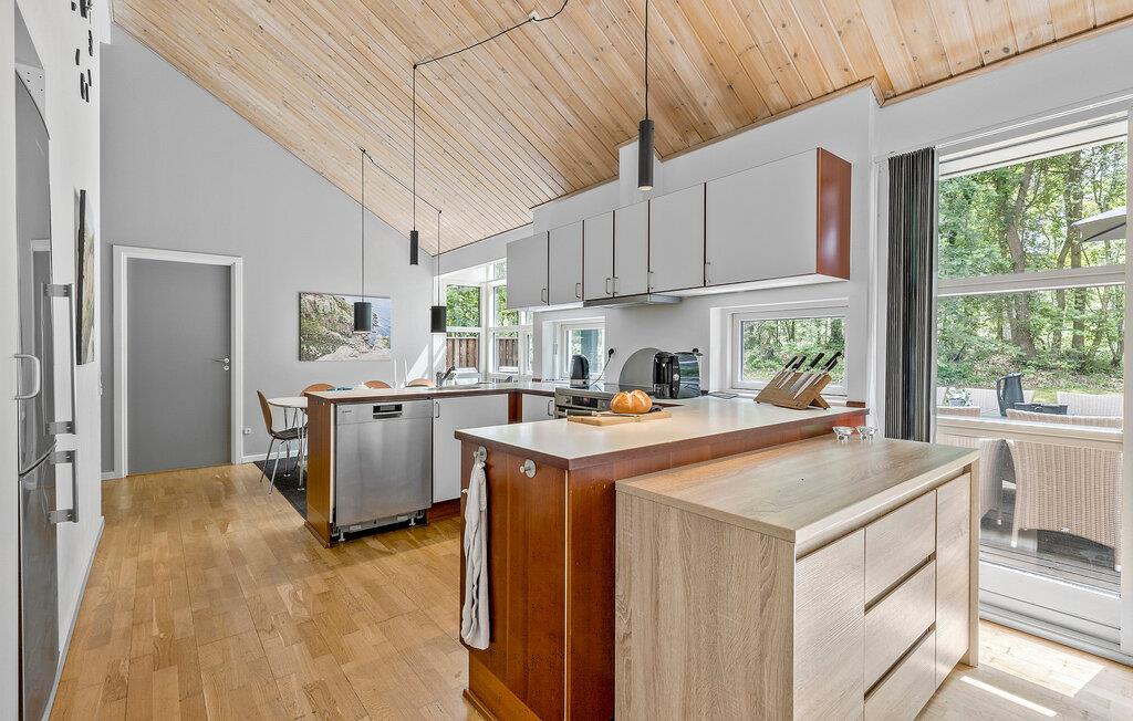 Velkommen til dette velindrettede og charmerende hus, der ligger i fredelige, grønne omgivelser tæt på Hasle og danner en vidunderlig ramme om årets familieferie. Indvendigt emmer det af kvalitet over hele linjen med loft til kip, velholdte trælofter- og gulve og masser af vinduespartier, der giver lækre lysindfald og en dejlig udsigt til det grønne. Skulle vinden bide lidt fra sig, kan I fyre op i brændeovnen og nyde dens knitrende varme til en hyggelig aftensmad ved spisebordet og en god film i sofaen. På badeværelset er der et skønt spabad og sauna, så I kan fordøje dagens mange indtryk og give musklerne et velfortjent hvil. Både badeværelset og gæstetoilet har gulvvarme.