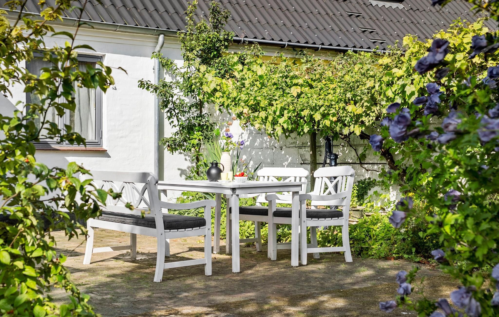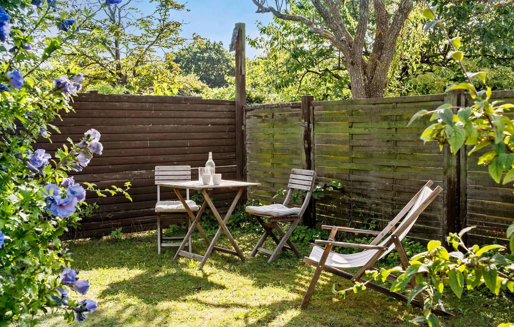 På grunden er der mange hyggelige pletter, hvor man kan slå sig ned. Nyd solen i fulde drag, slap af med en bog i læ eller læg jer til rette i hængekøjen og find sammen med hele familien om et hyggeligt lejrbål.