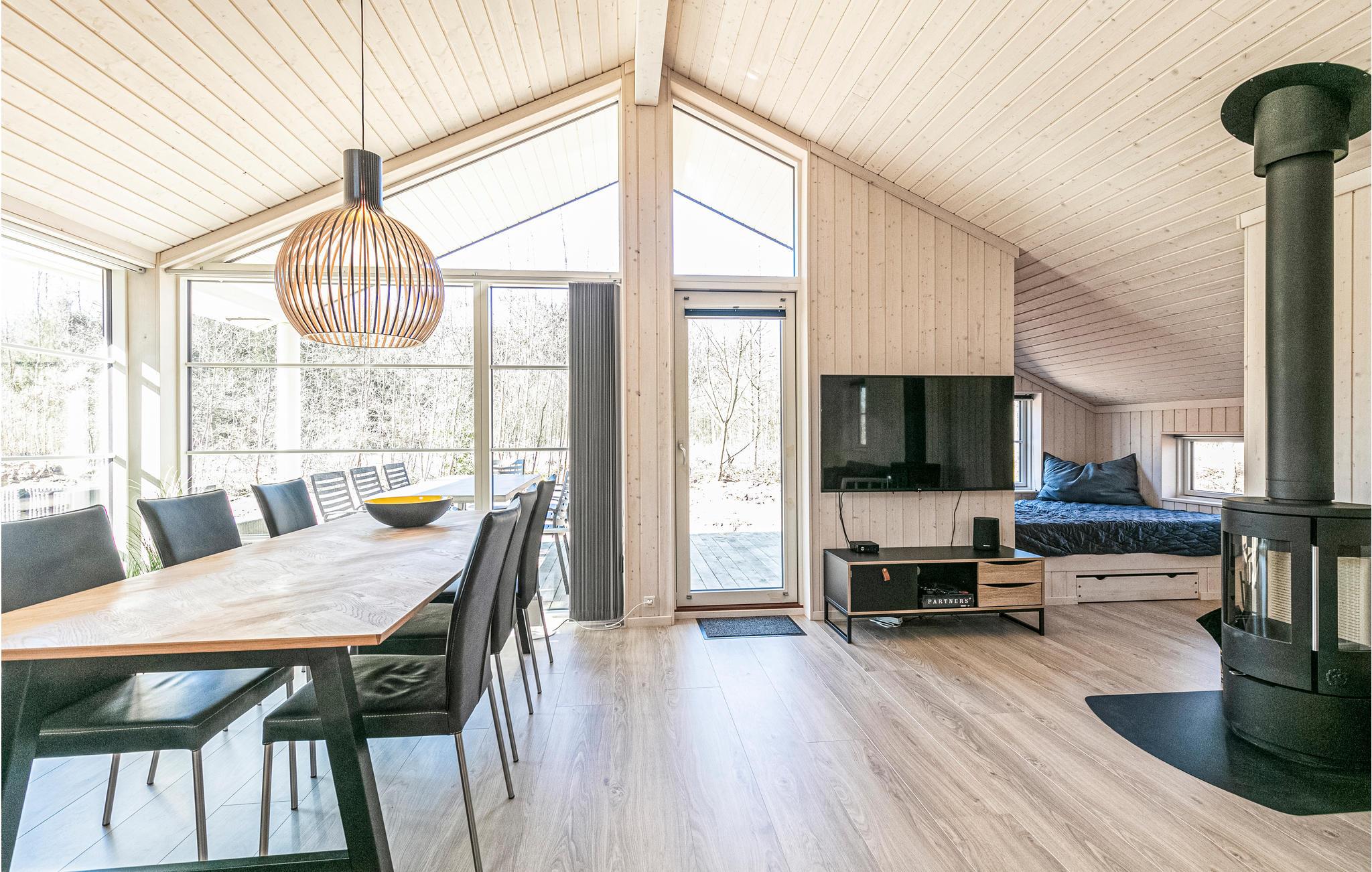 Nybygget og lækkert indrettet kvalitetsferiehus med mange moderne faciliteter og tæt til skov og strand. Dette pragtfulde og rummelige feriehus er beliggende i en ny udstykning kaldet Skovtoften, og byder på en lyst og velindrettet spise- og opholdsstue med komfortable møbler, varmempumpe og naturligvis gratis internet. Pragtfuldt og moderne indrettet åbent køkken, der gør det nemt og hyggeligt at tilberede feriens mange måltider. Skønt lysindfald fra de mange vinduespartier, og hyggelig alkove hvor børnene kan lege eller I kan tage jer en eftermiddagslur. Dette pragtfulde og helt nye kvalitetsferiehus rummer 3 gode soveværelser og 2 flotte badeværelser med gulvvarme, og overalt er der tale om høj komfort og nydelig møblering. Fra stuen har I udgang til en dejlig stor træterrasse, hvor I kan nyde ferien i rolige og afslappende omgivelser og bare hygge i de nydelige havemøbler. Har I været ude at vandre eller løbe en tur i skoven eller bare trænger til et hurtigt skyl med udsigt til den smukke natur, så kan en tur i husets udebruser varmt anbefales. Fra dette skønne og rummelige kvalitetsferiehus med egen carport, har I ikke langt til Hasle Lystskov, sandstrand og cykelstier og vandrestier. Husets høje komfort og mange moderne faciliteter gør det nemt, hyggeligt og rart at tilbringe en afslappende ferie uanset årstid. Grunden er nyanlagt.