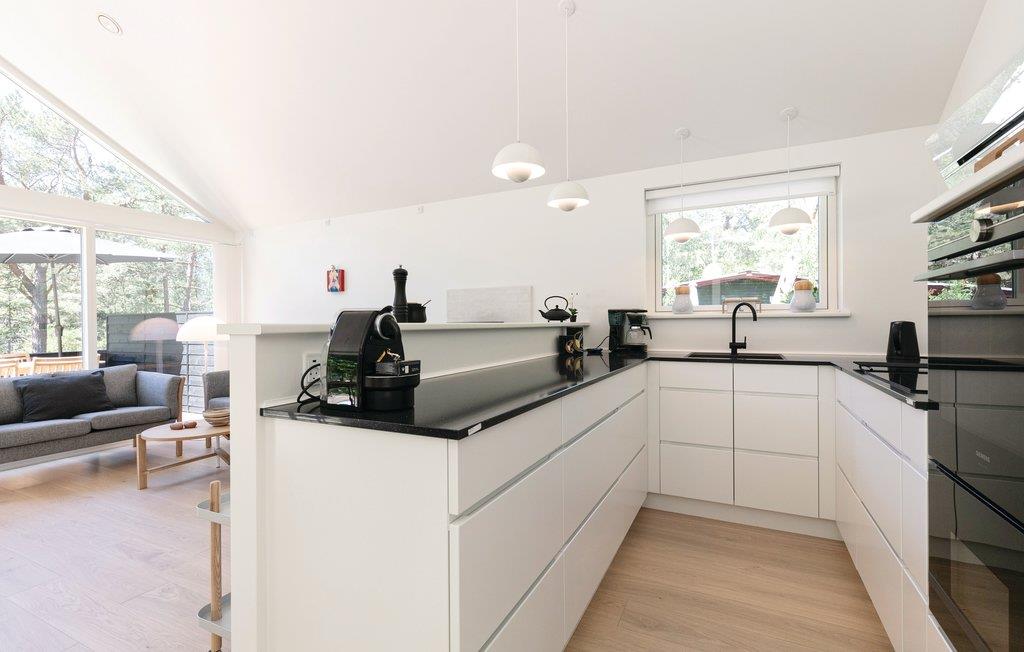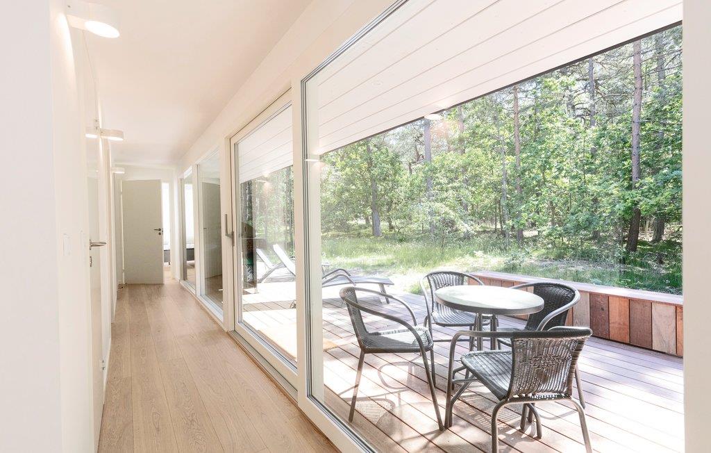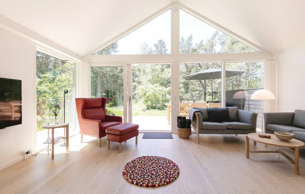 Nyopført kvalitets sommerhus nær sandstrand med moderne faciliteter, terrasse og smuk naturudsigt i Hasle.