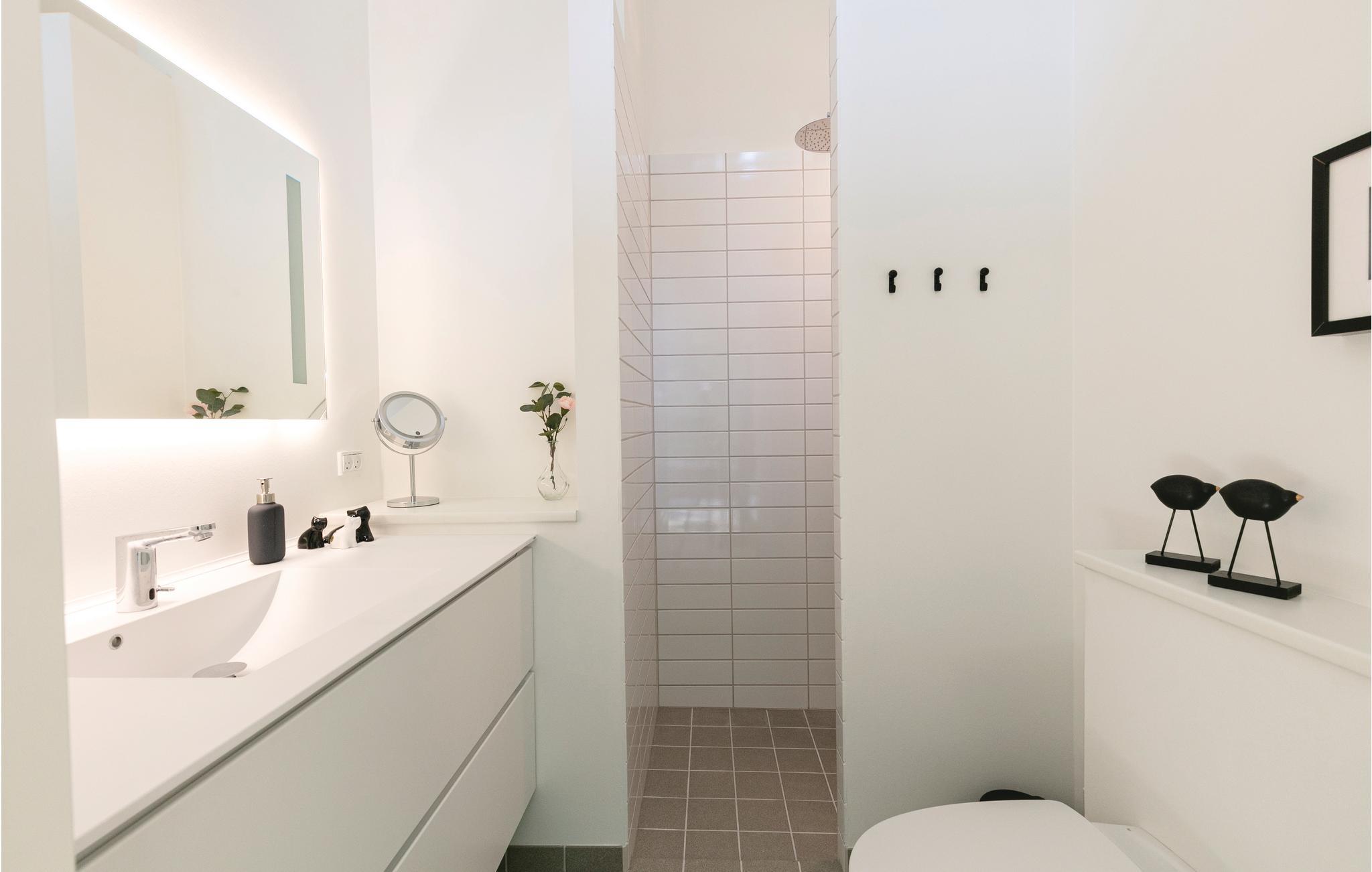 Badeværelse (nr. 1) - WC. Varmt og koldt vand. Bruser