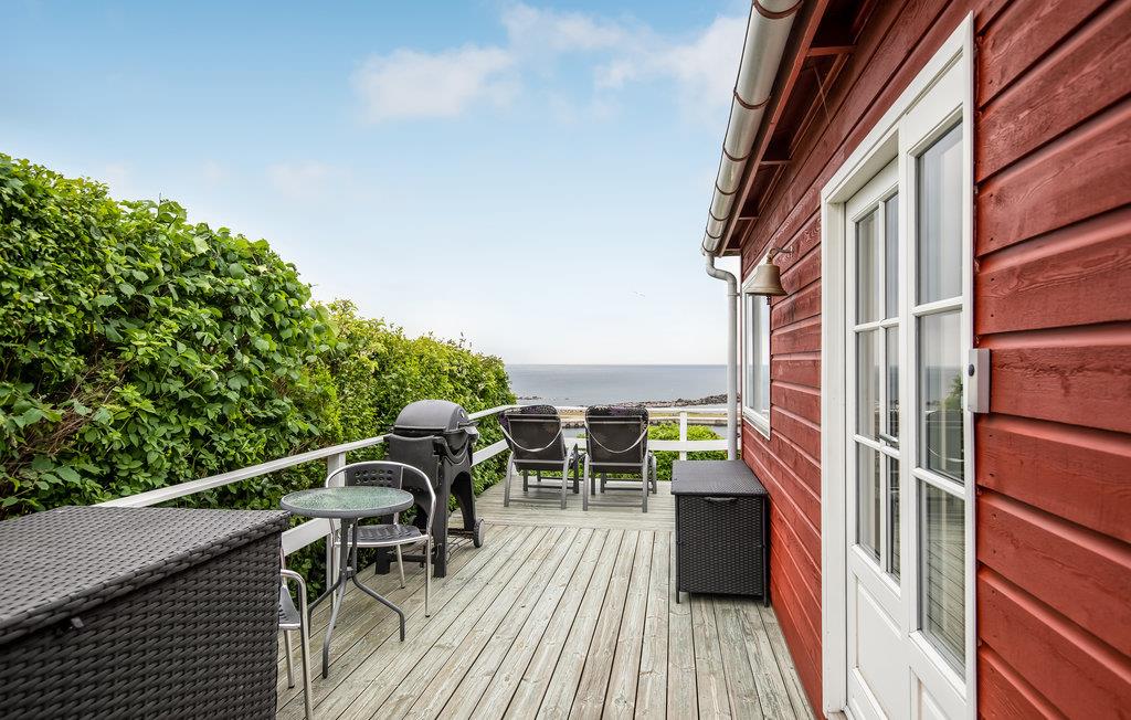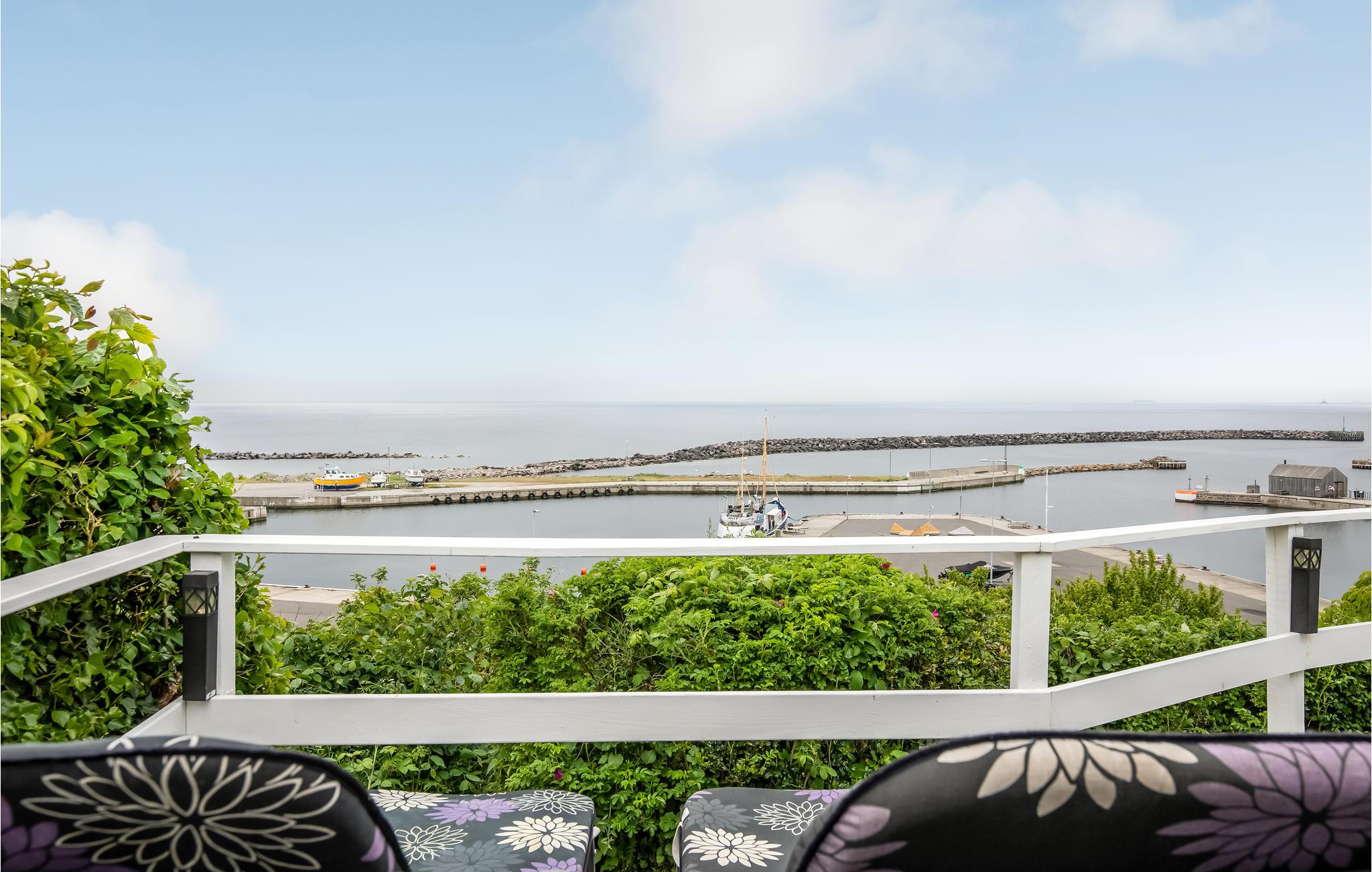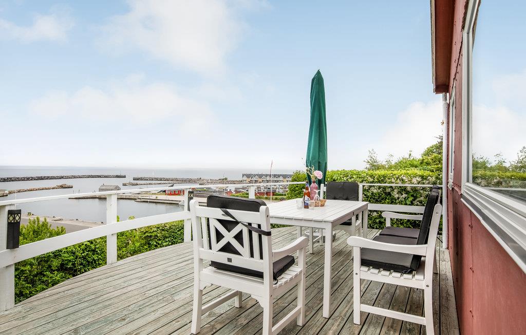 Hyggeligt træhus med panoramaudsigt over Hasle havn og Østersøen, tæt på strand, byliv og lokale specialiteter.