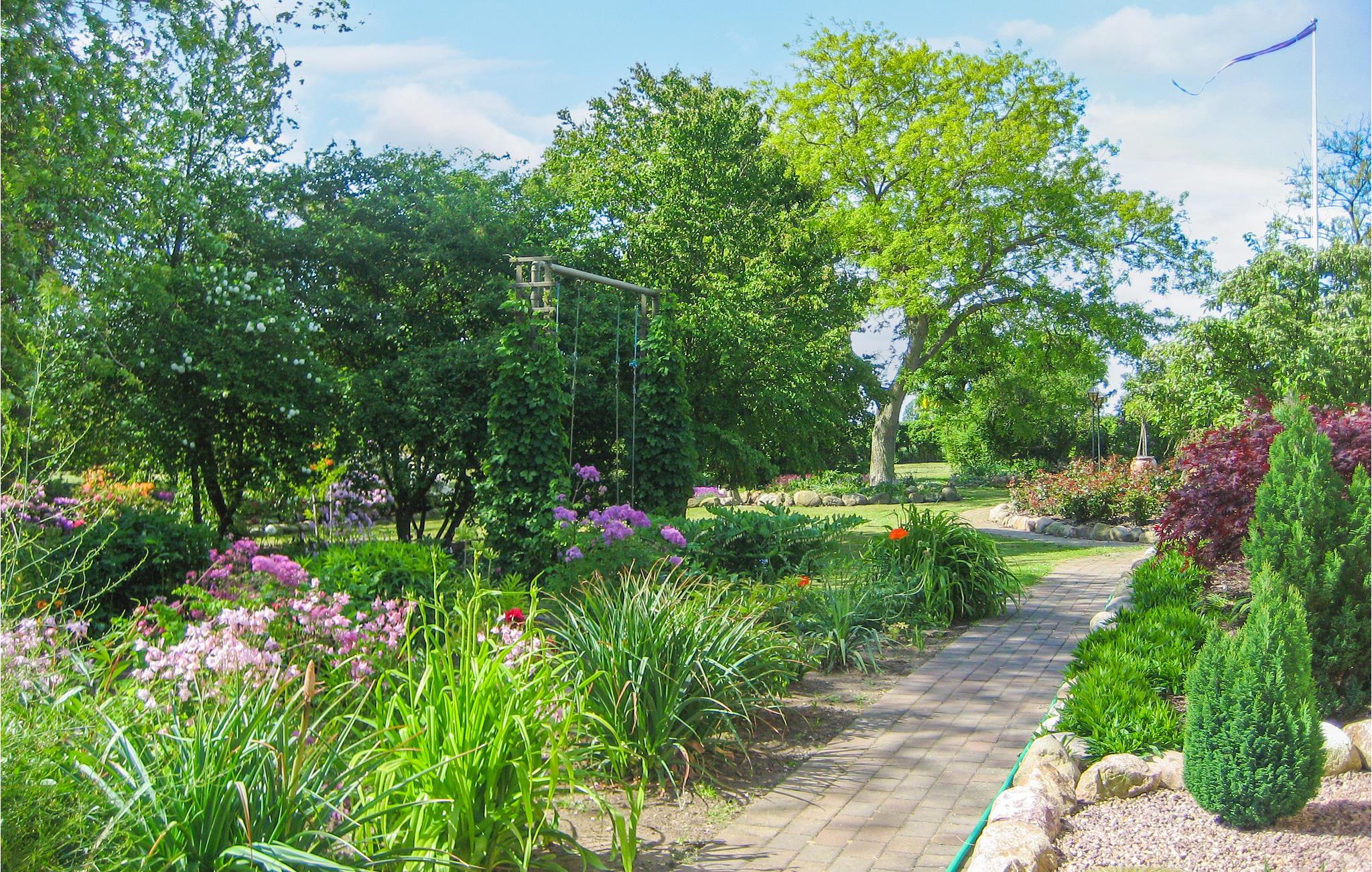 Udenfor imponerer huset med en stor, parklignende have med flotte træer, blomster, planter og en lille å med broer. Der er også en 165 meter driving range, en fin hundegård, flere solkroge, komfortable havemøbler og en grill, så I kan tilberede lækre feriemåltider.