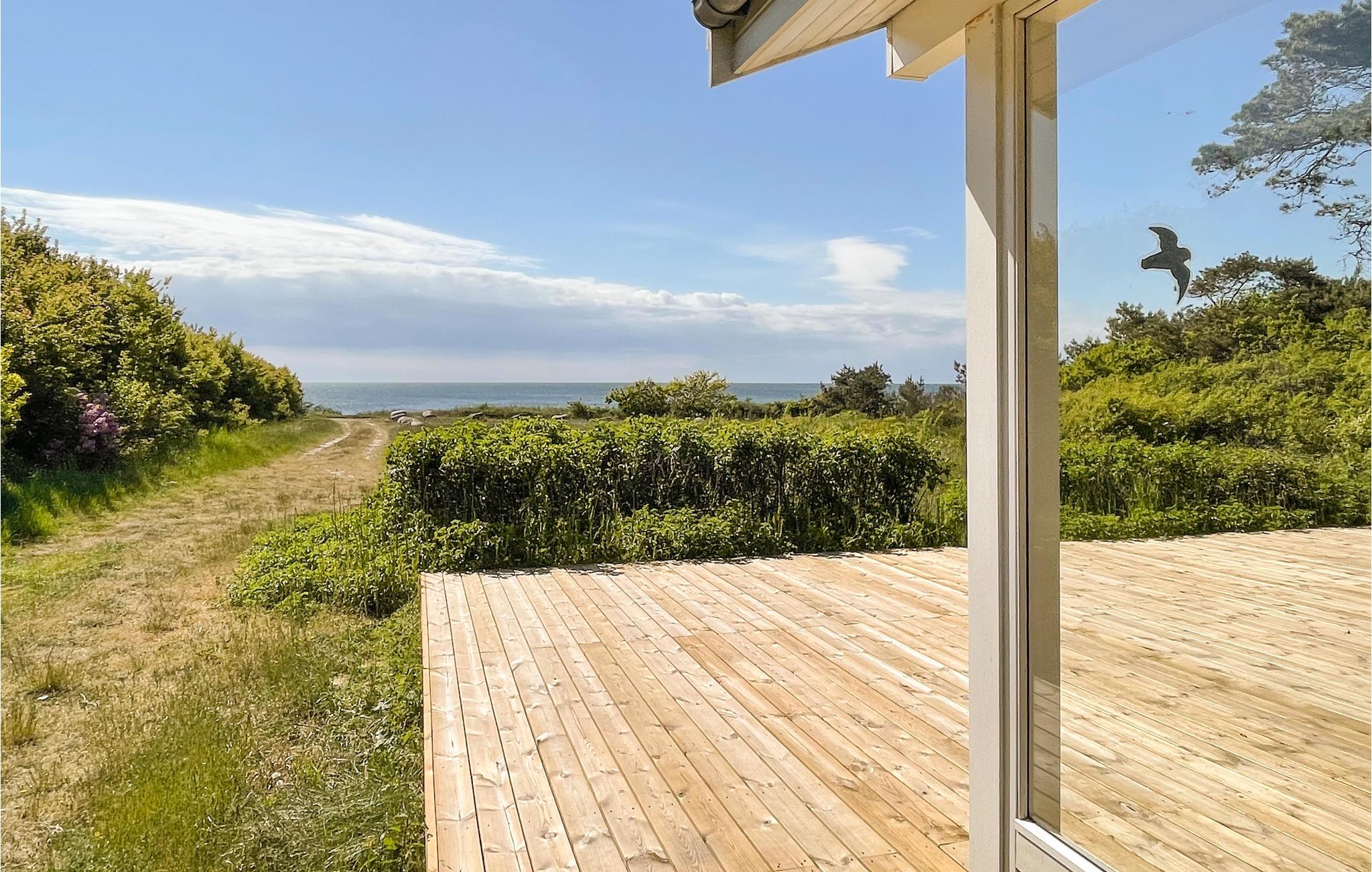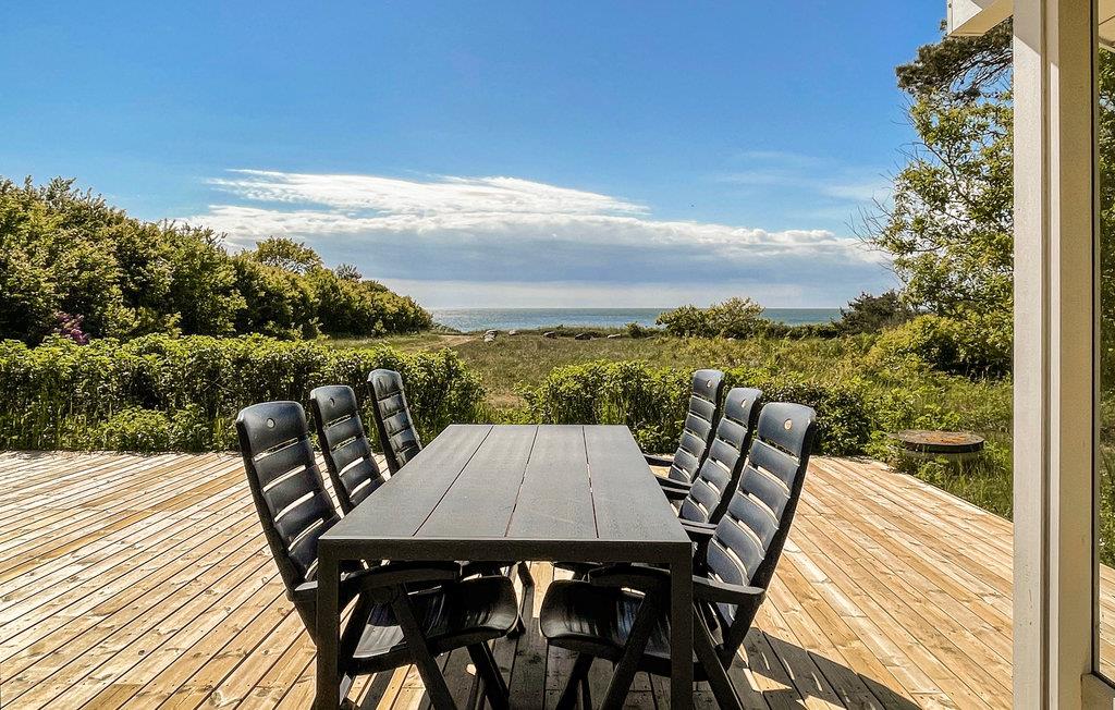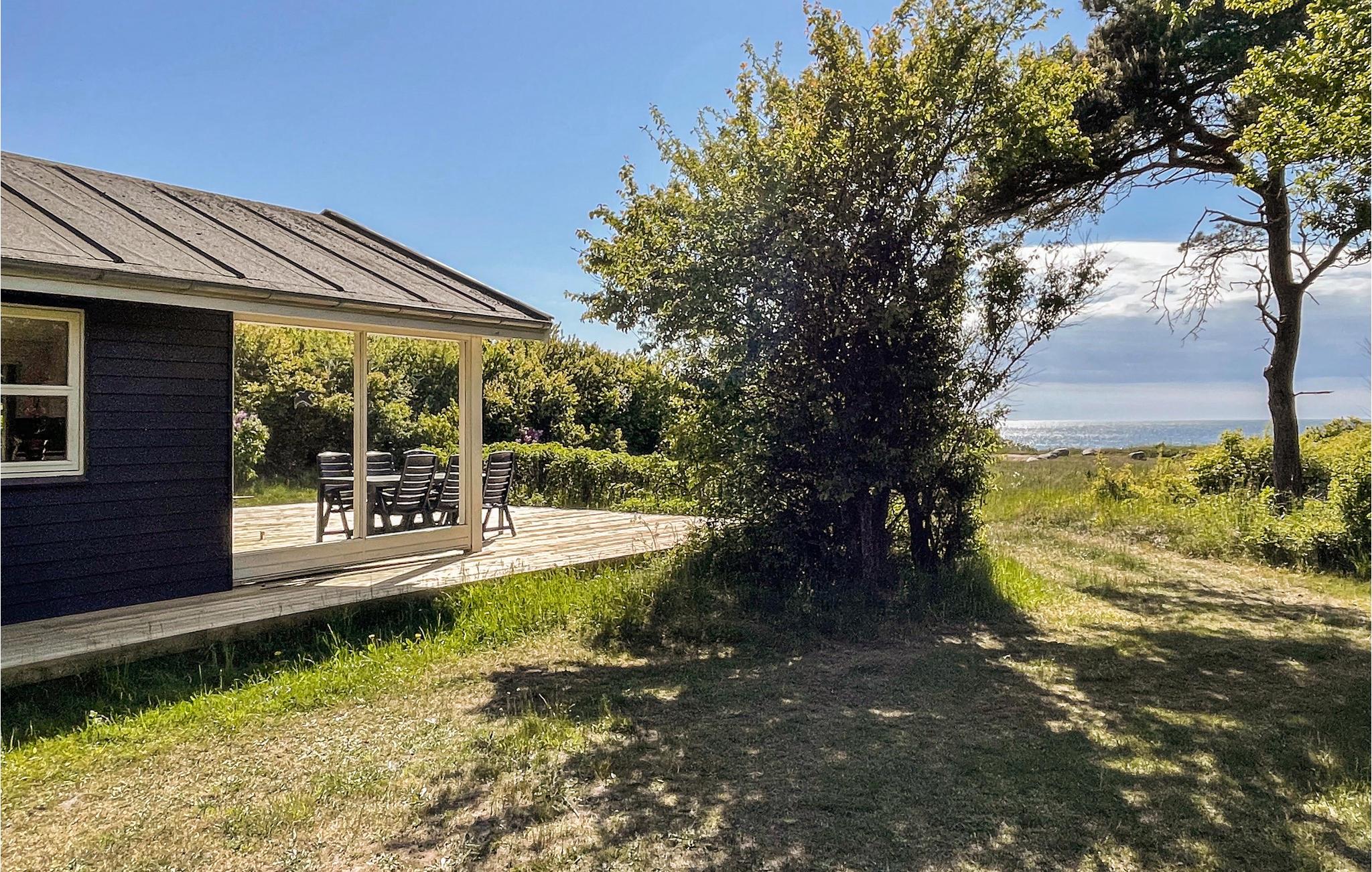 Skønt sommerhus i træ med flot havudsigt og en fantastisk og ugenert beliggenhed på en naturgrund, 200 meter fra en af øens gode og børnevenlige badestrande, 3 km fra Hasle og 7 km fra Rønne.