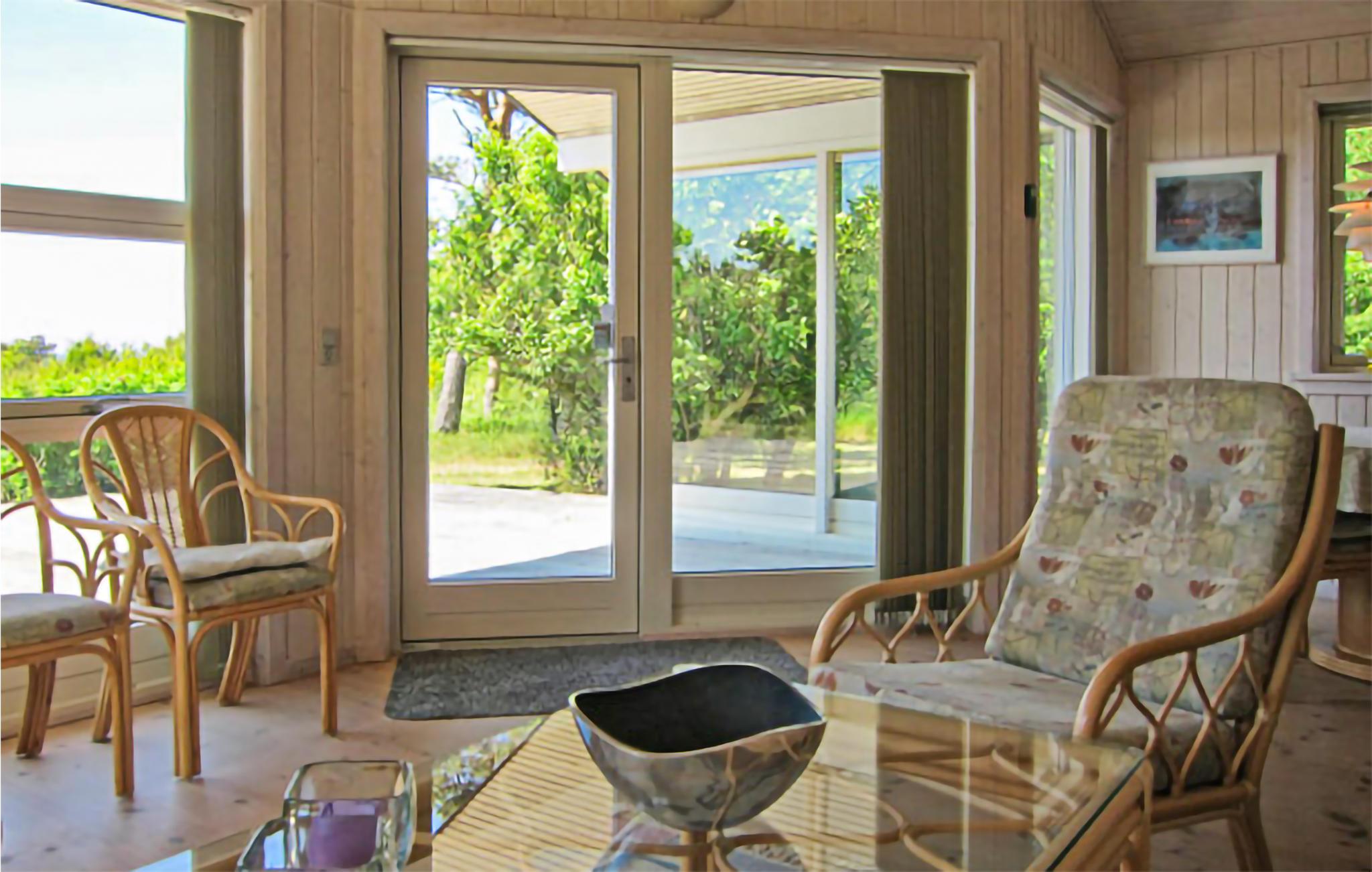 Hyggeligt træsommerhus med havudsigt nær strand