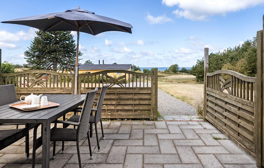 Rummelig ferielejlighed med havudsigt og solrig terrasse nær Hasle og klippekysten.