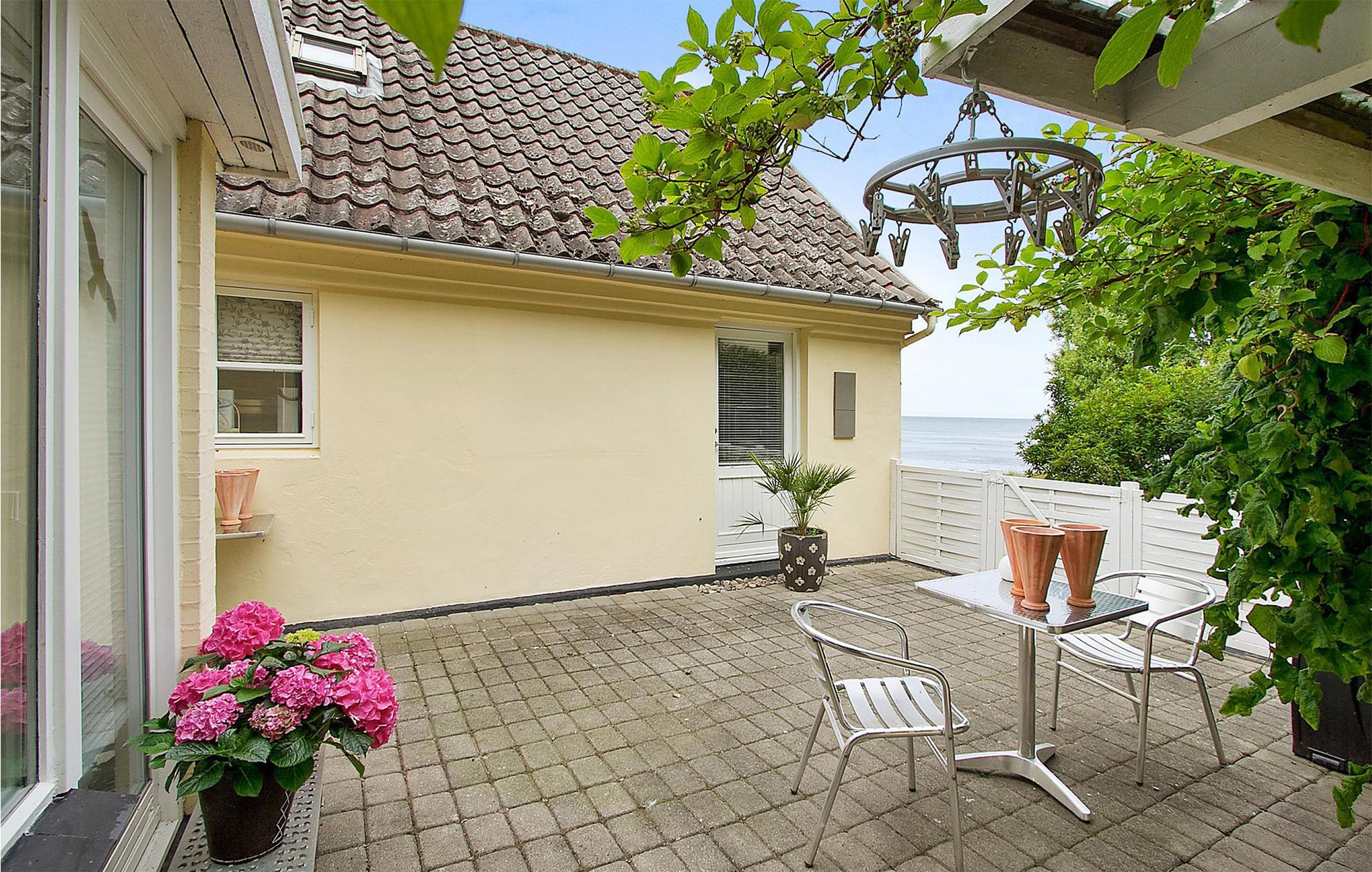 Fra udestuen er der udgang til en havvendt træterrasse med havemøbler, hvor solens stråler kan nydes og den friske havluft indsnuses. Huset har yderligere to terrasser, den ene udstyret med havemøbler og en grill, så I kan tilberede lækre feriemåltider i solen. På den tredje terrasse er der et drivhus, hvor I kan sidde i al slags vejr, og som takket være de store glaspartier er et fantastisk sted at nyde udsigten til havet og de fortryllende solnedgange.