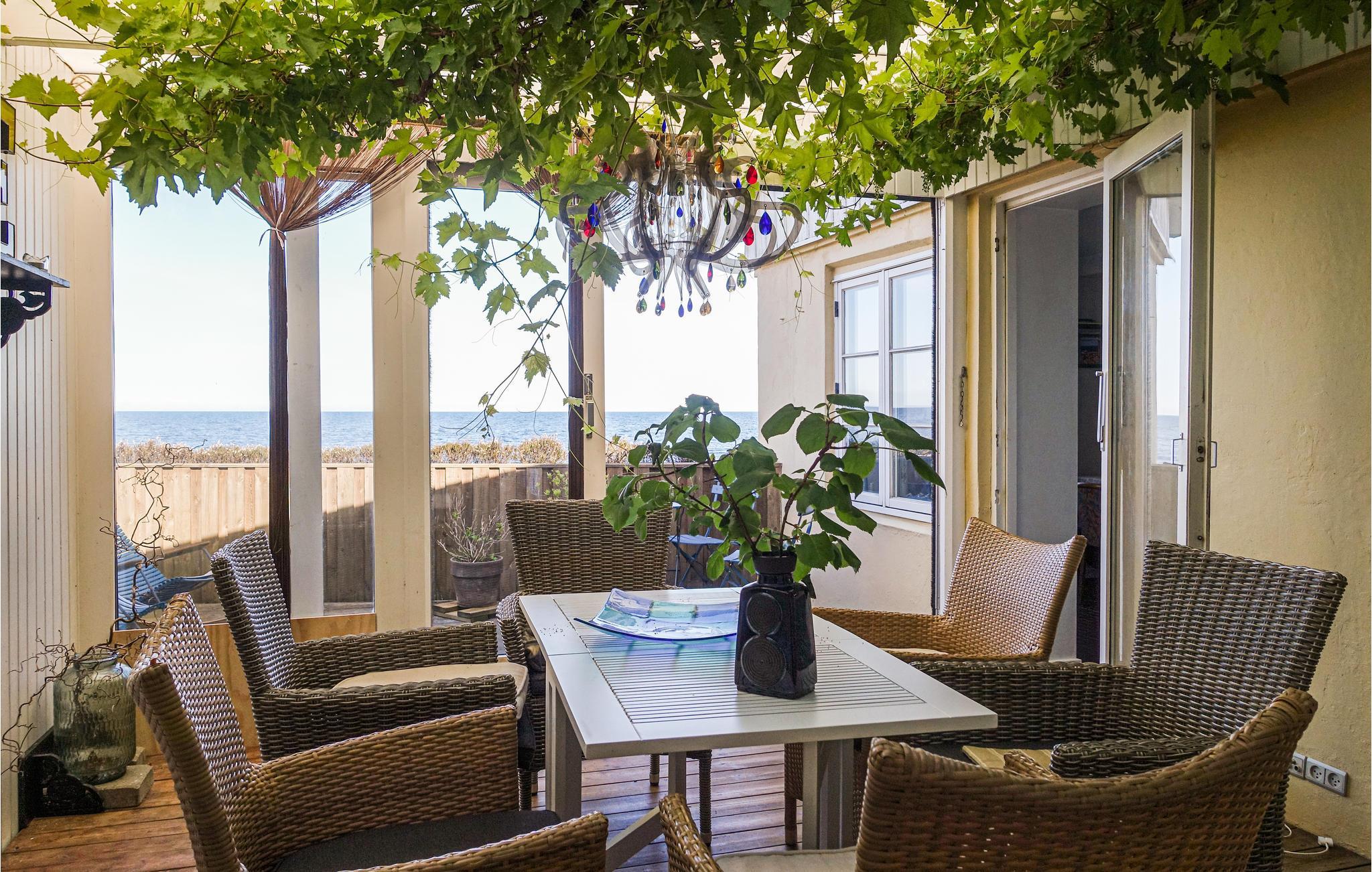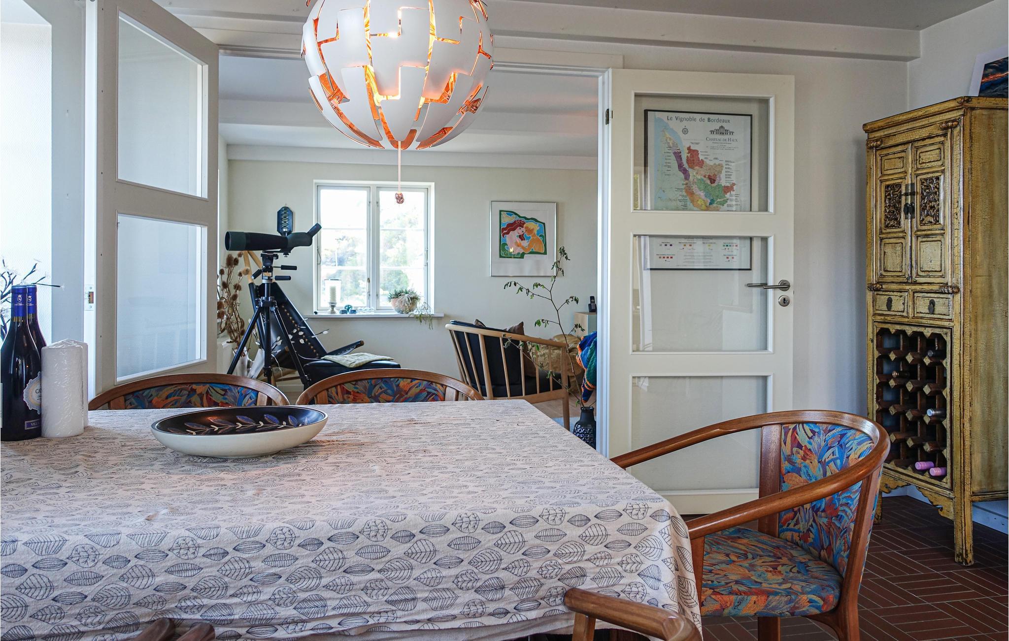 Velkommen til dette charmerende sommerhus, hvor I automatisk går helt ned i gear takket være den enestående havudsigt fra mange rum og flere terrasser. I opholdsstuen kan I slænge jer i komfortable møbler, herunder en unik lænestol, og om efteråret og vinteren nyde varmen fra brændeovnen. I køkken/alrummet kan I tilberede dejlige feriemåltider og derefter spise sammen ved den hyggelige spiseplads med havudsigt. Et af mange højdepunkter ved dette sommerhus er udestuen, som er et perfekt sted at drikke en kop kaffe eller et glas vin og at sidde og hyggesnakke, læse en god bog eller tage et spil kort.