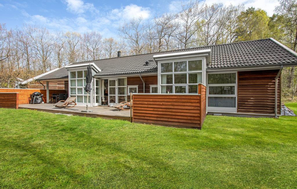 Dette nydelige og rummelige kvalitetssommerhus ligger i et populært og børnevenligt ferieområde nær skov og strand. Huset er lyst og moderne indrettet med mange moderne faciliteter, bl.a. gratis internet. I den store og charmerende stue med højt til loftet kan I slappe af i de komfortable møbler og lade hyggen og varmen brede sig, når der tændes op i brændeovnen. De mange feriemåltider kan nemt tilbederedes i det store åbne køkken med masser af skabsplads, de der har køkkentjans kan gøre det uden at miste et ord i samtalen der foregår blandt de der kan slappe af i spisetuen. I kan forkæle jer selv med en tur i spaen i det store badeværelse og vil sætte pris på gæstetoilettet, der især er praktisk når I er mange på ferie sammen. Huset rummer fire store soveværelser, ligesom bryggers med vaskemaskine og tørretumbler er meget praktiske i løbet af ferien. Fra stueområdet har I direkte udgang til den store træterrasse, hvor I virkelig kan nyde de mange feriestunder og slappe af i de komfortable havemøbler, ligesom aftenerne kan tilbringes med grillmad og familiehygge med udsigt til skovarealerne. Når I er trætte af bare at slappe af så begiv jer ud på de gode løbe- og cykelstier i området kaldet Hasle Lystskov, ligesom der heller ikke er langt til en glimrende sandstrand. Husets høje komfort og mange moderne faciliteter gør det velegnet til ferieophold året rundt.