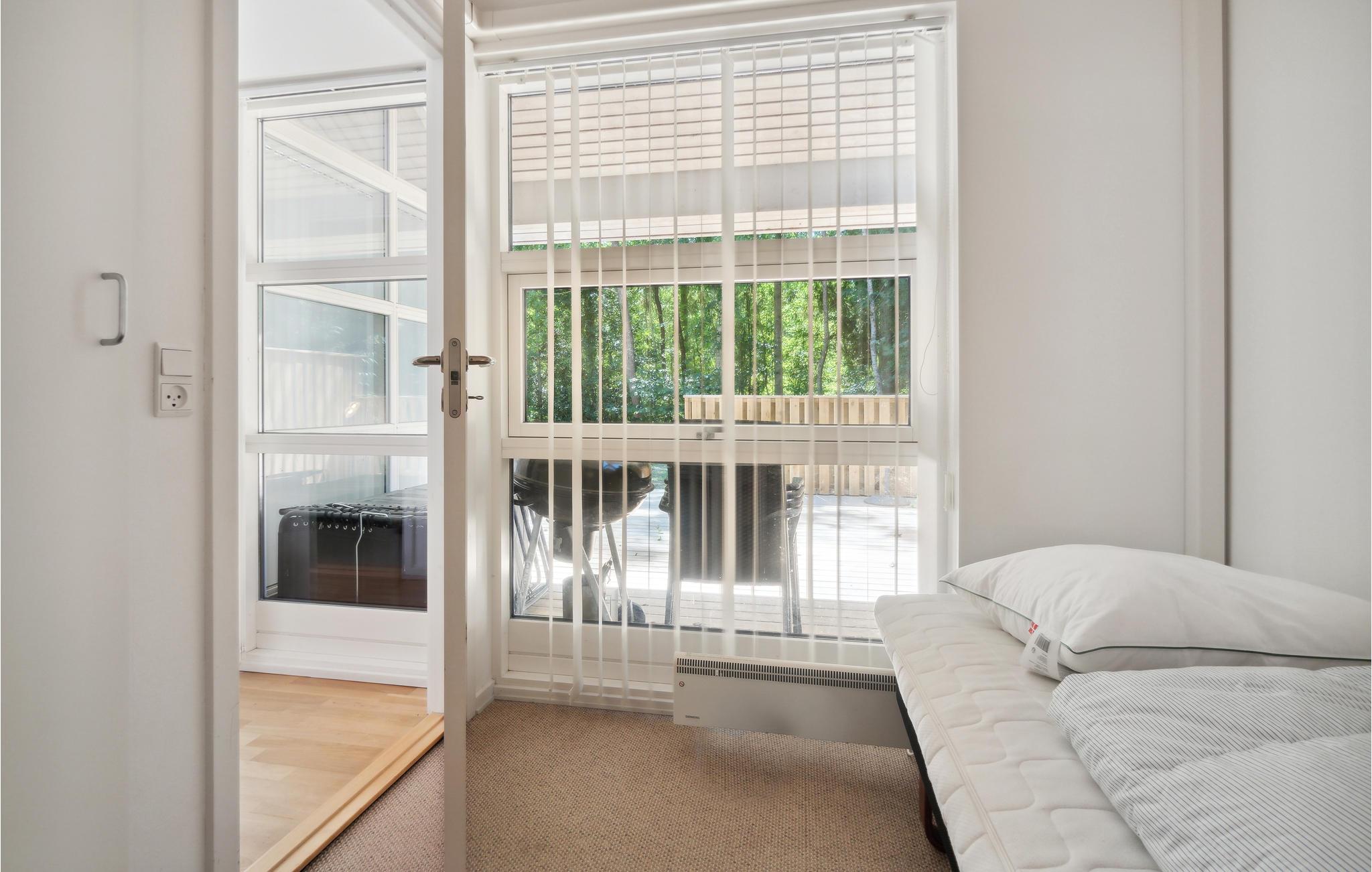Nydeligt og rummeligt træsommerhus i moderne stil og beliggende i det populære området kaldet Rubinsøen Skovhuse, nær skønne vandre,- løbe- og cykelstier og god sandstrand. Her venter der oplevelser, man sent glemmer. Stuen på 42 m2 er kombineret med det åbne køkkenmiljø, hvor tilberedning af feriens mange måltider bliver en leg. Overalt hersker der en dejlig fri atmosfære, der understreges af den gode og praktiske indretning. Sæt stemningen med jeres yndlingsmusik på Sonos-højtalerne, der tilkobles med bluetooth. De store vinduer giver god mulighed for at nyde den smukke natur. I det store badeværelse venter der et pragtfuldt 2-personers spabad, og der er også mulighed for en svedetur i saunaen. Spabadet er elegant placeret i en karnap med glas på de 3 sider.