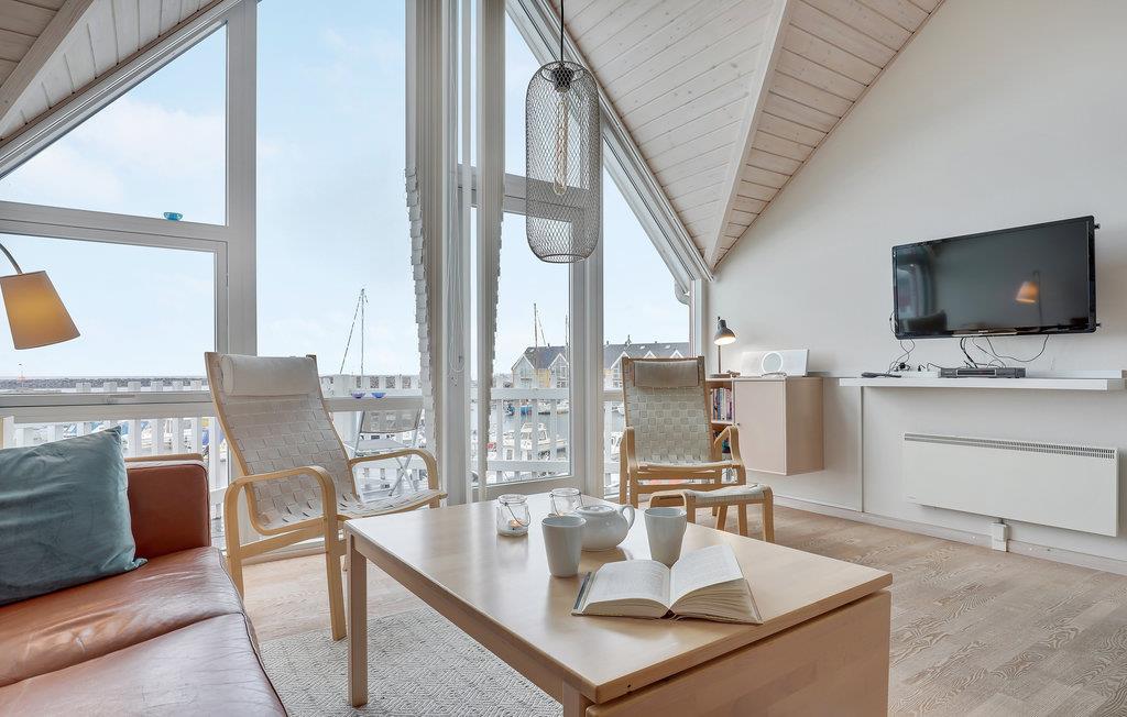 Lyst og kvalitetsrækkehus med havudsigt på Hasle Marina, tæt på strand og havnebad.