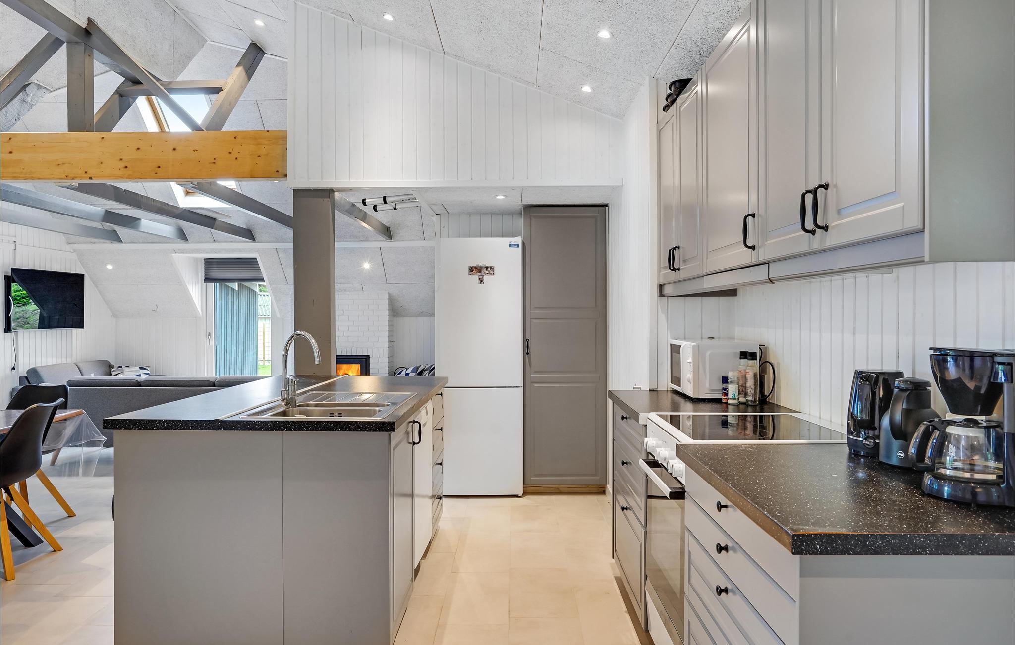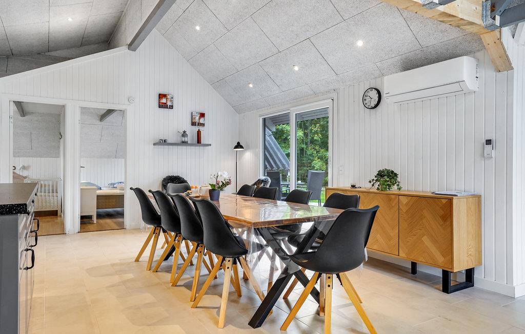Dette sommerhus har et lækkert lyst poolrum med vindue fra gulv til loft, der giver dejlig nærhed til naturen. Her er en hyggelig opholdstue med moderne møbler og frilagte loftsbjælker der giver en charmerende hygge. Husets lille køkken er en del af stuen, så den der står for madlavningen har kontakt til dem der slapper af i stuen. Fra stuen kan I kigge ind i poolrummet, samt gå direkte ud på terrassen. Terrassen strækker sig på flere af husets sider, med mulighed for at finde sol og læ. Fra huset kan I spadsere til stranden ved Kattegat, samt køre til den hyggelige ferieby Øster Hurup. I kan også tage på udflugter til bl.a. Aalborg, Randers og Hadsund. I området er der også gode muligheder for at fiske og I kan tage en dejlig cykeltur til lille Vildmose, som er Nordeuropas største højmose.