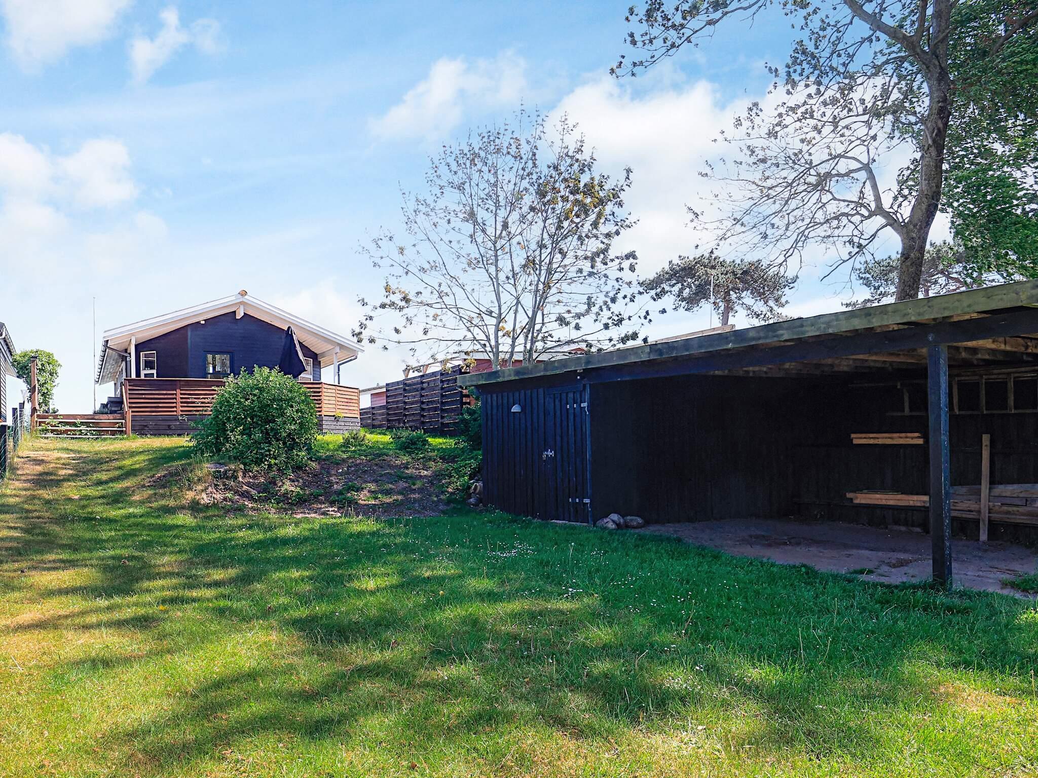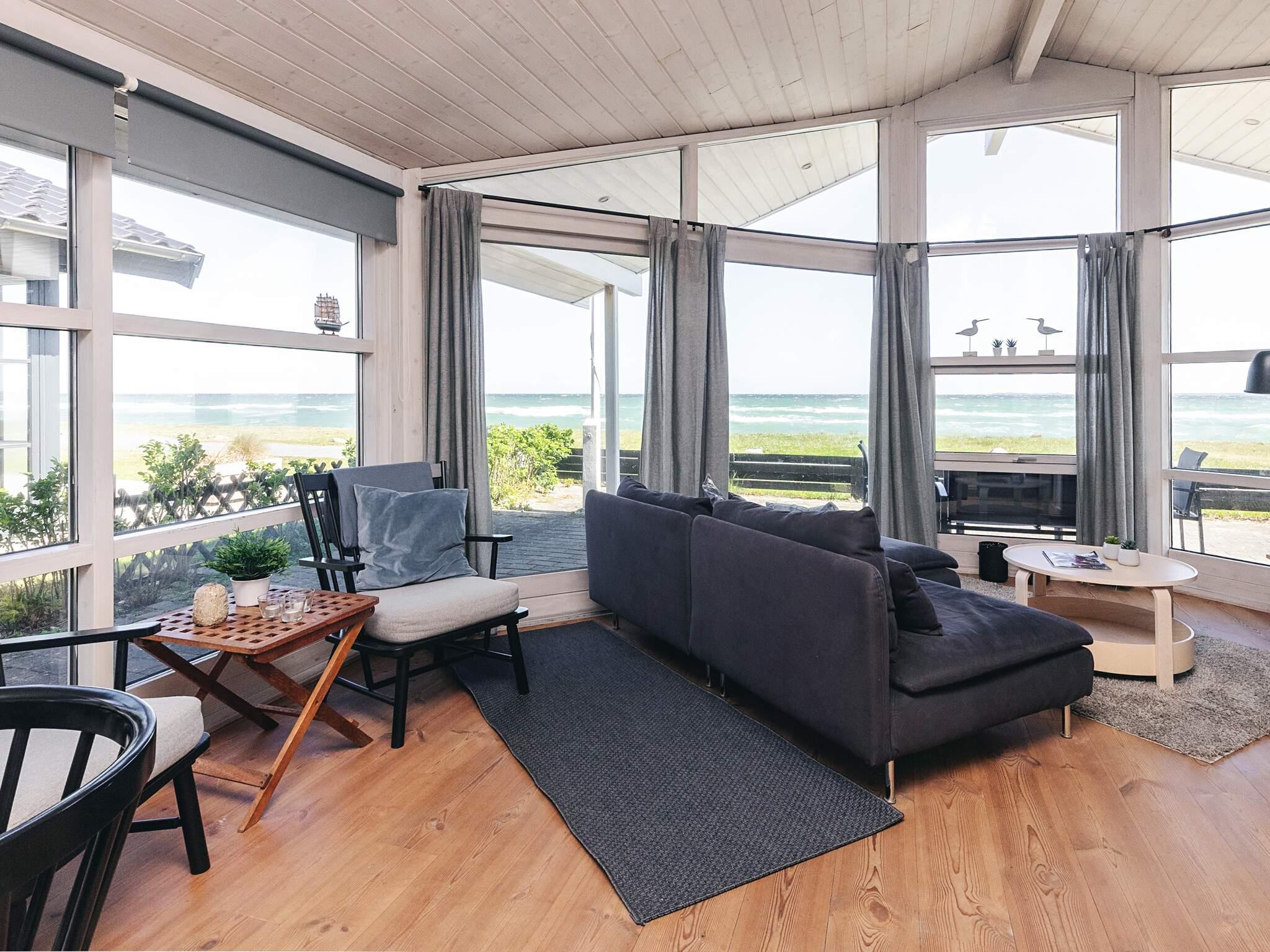 På strandgrund helt ned til vandet i første række ca. 5 m fra vandet ligger dette sommerhus. Fra huset er der en helt utrolig udsigt over vandet. Bedre beliggenhed fås ikke. Ved byggeriet samt indretningen er der lagt stor vægt på at sommerhuset skal fremstå lyst. Huset rummer badeværelse med bruseniche og gulvvarme. Til huset hører både en åben og overdækket terrasse. Der er terrasse både ud mod vandet samt en ugenert terrasse bag ved huset.