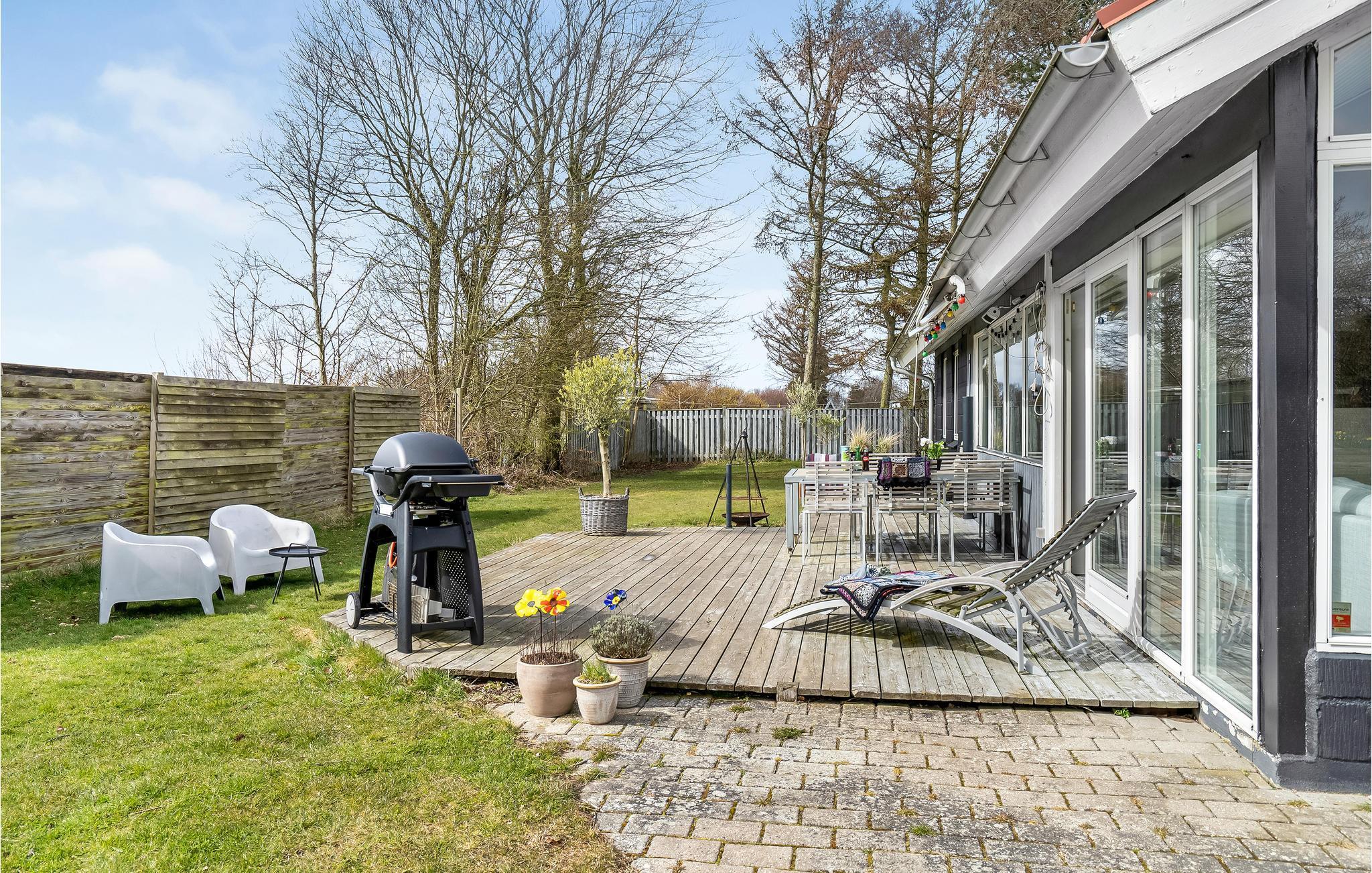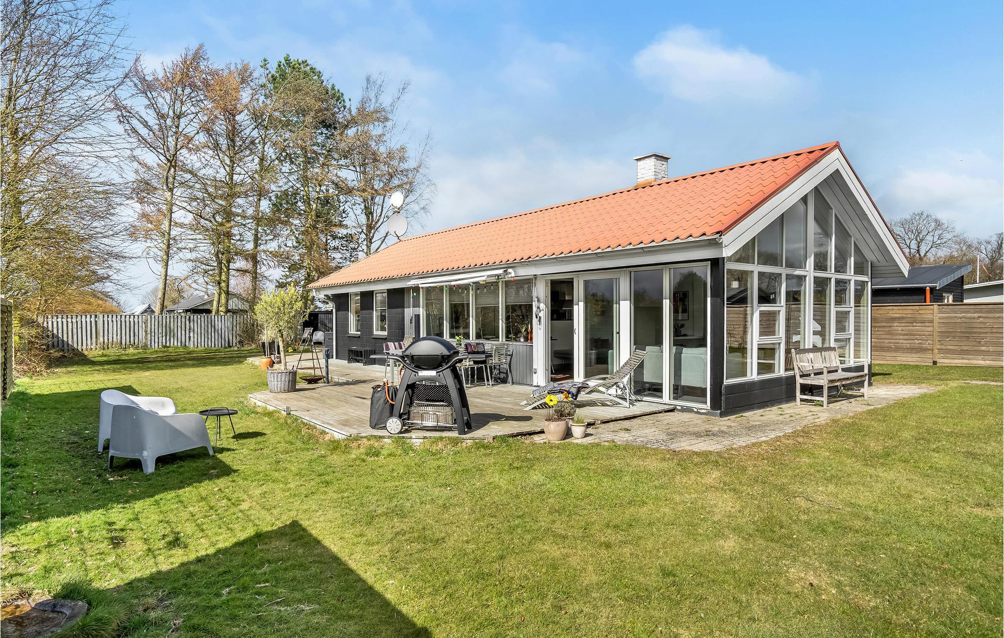 Charmerende sommerhus nær Hasmark Strand med brændeovn, terrasse og moderne faciliteter til en afslappende familieferie.