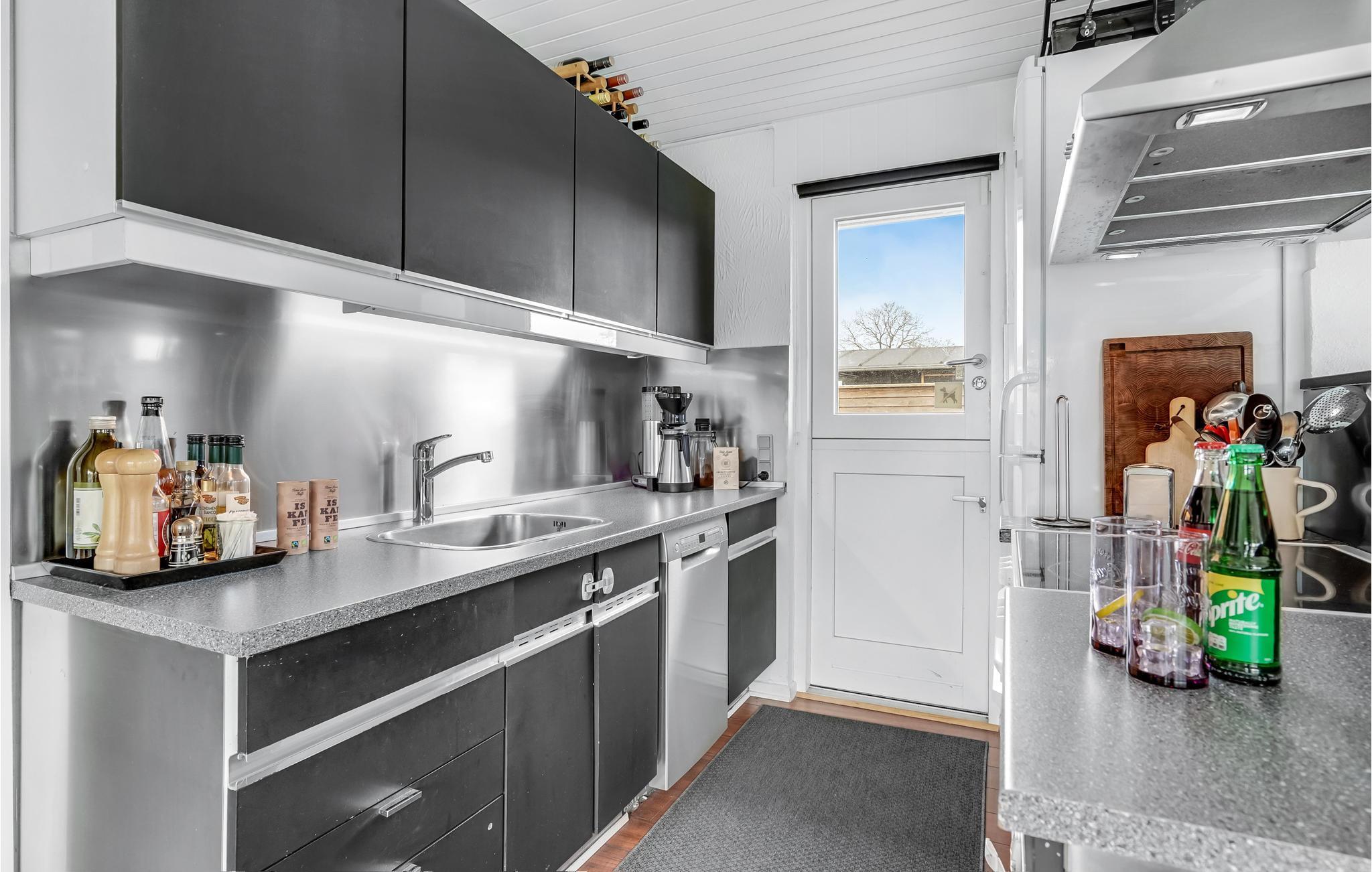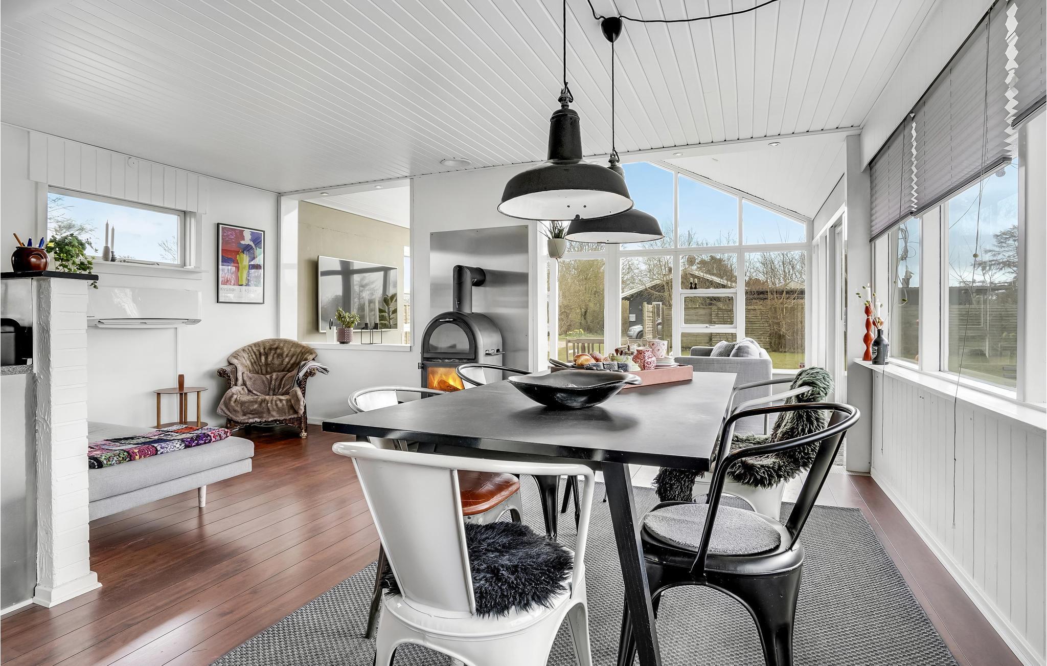 Der er lagt op til nogle herlige dage i det nordfynske, hvor I kan lade batterierne op i dette lækre hus. Her er der lagt vægt på flotte detaljer og gode faciliteter, så det eneste I skal koncentrere jer om er at slappe af og have det rart. I opholdsrummet smelter rammerne indendørs og udendørs næsten sammen, for de store gulv til loft-vinduer sørger for en ubegrænset udsigt til de naturskønne omgivelser. Glæd jer til at dele dagens måltider i det lyse alrum, mens ilden buldrer i brændovnen, eller på terrassen, når solen er fremme.