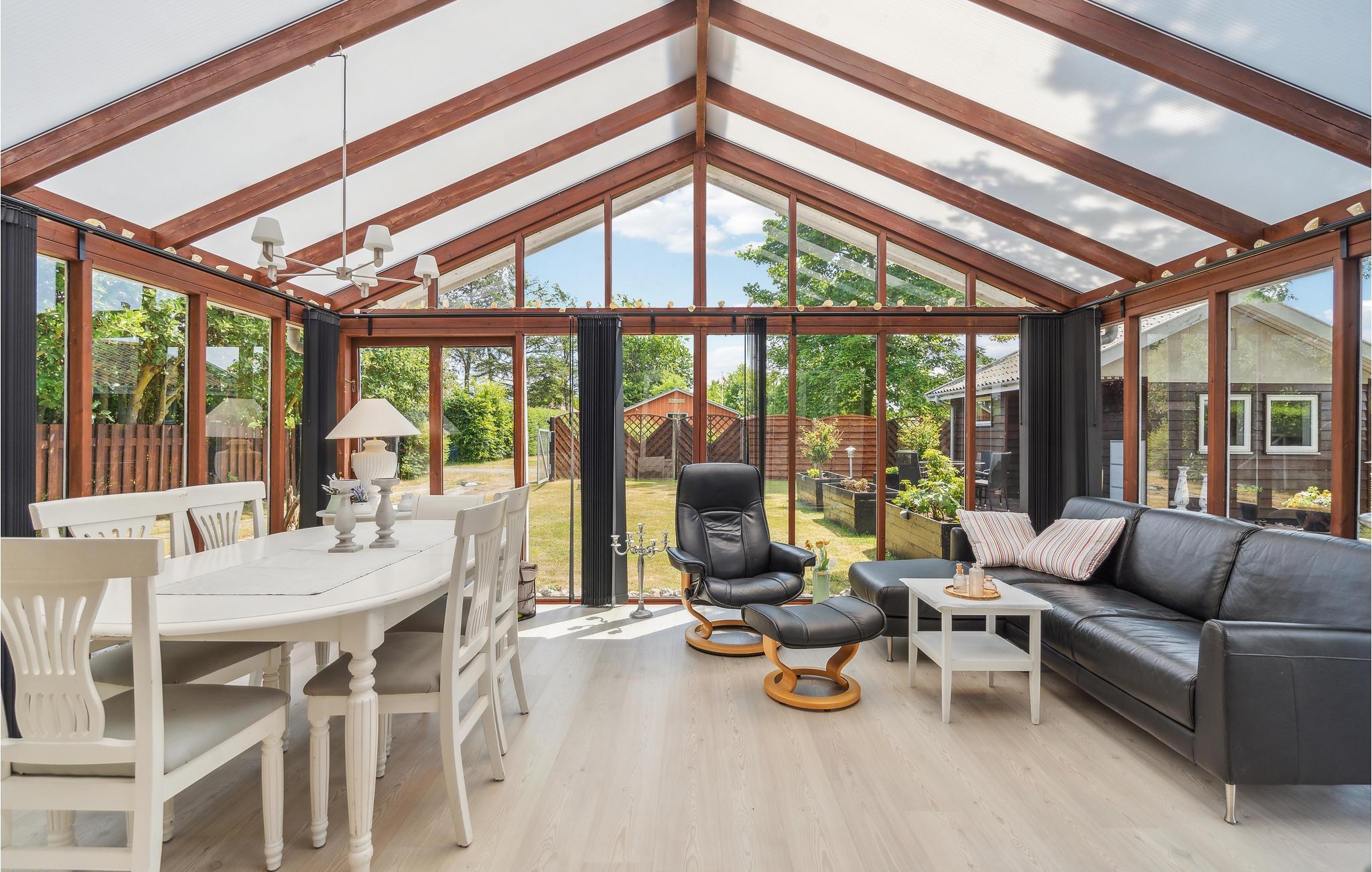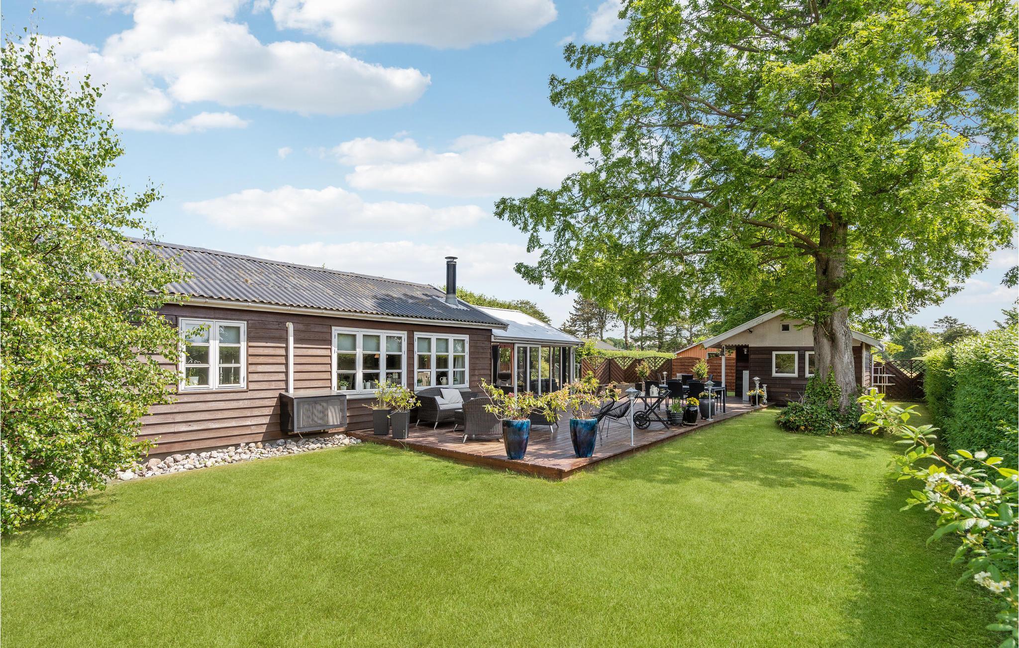 Kun 175 meter fra den populære sandstrand i Hasmark finder I dette feriehus. Her er der kræset for detaljen. Det brune træhus byder jer velkommen med en lys atmosfære, et nøje udvalgt interiør og hyggelig belysning, der giver et strejf af nostalgi. Huset byder på en dejlig stue med udgang til en rummelig udestue samt et veludstyret anneks med soveværelse, badeværelse og køkken. Dette hus er derfor ideelt til den lidt større familie eller to familier, der holder ferie sammen. Udenfor inviterer flere terrasser og en stor grøn have til nærvær og kvalitetstid. Slå jer ned med ferielæsning på et skyggefuldt sted eller hyg jer med en runde petanque eller en fodboldkamp. Tilbring afslappende dage på den nærliggende sandstrand og gå en tur i området.