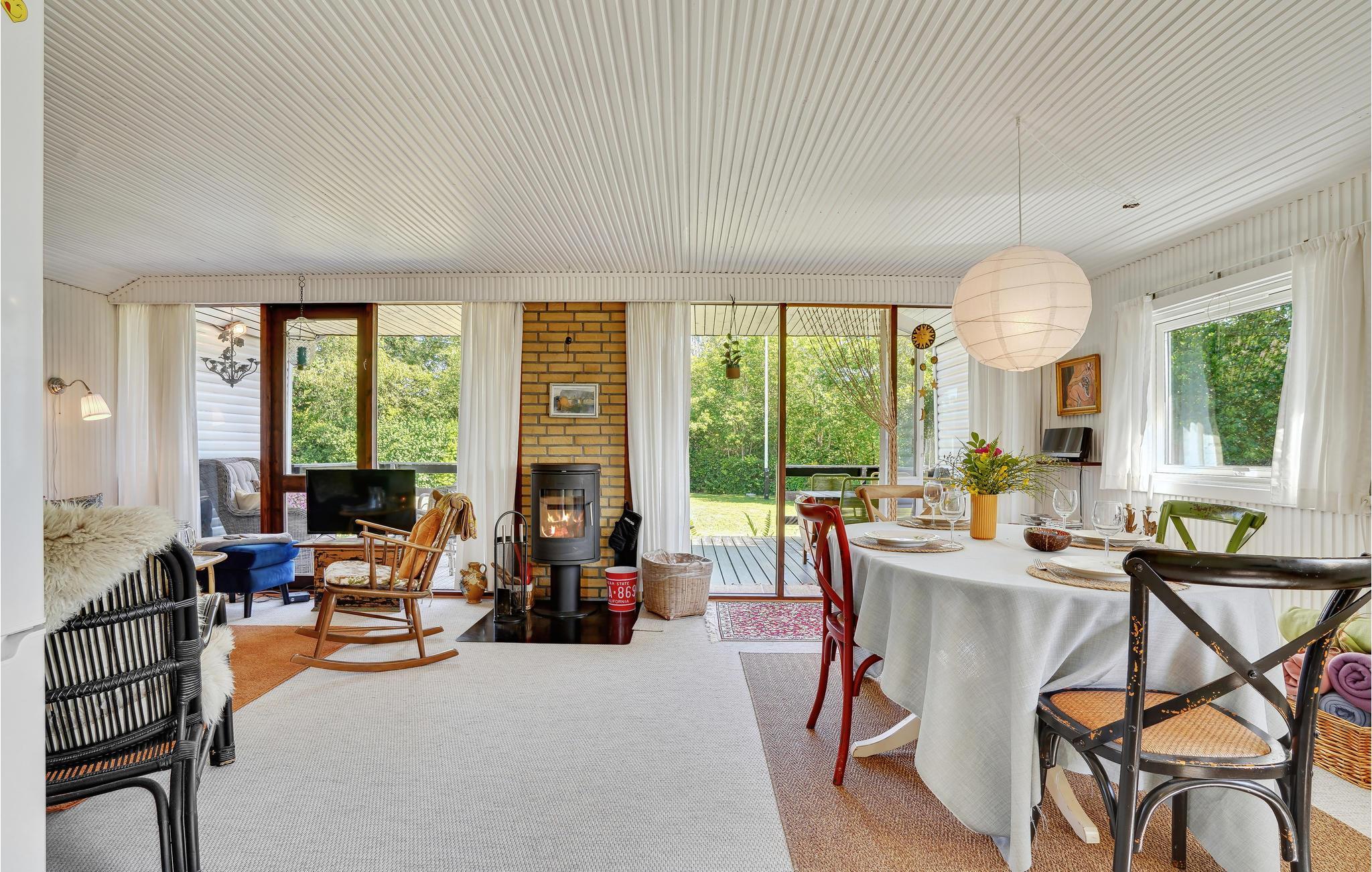 Kun 200 meter fra smukke Hasmark Strand ligger dette feriehus! Indenfor venter lyse værelser med mange søde detaljer og en stemningsfuld atmosfære, som danner den perfekte ramme om jeres familieferie. Tilbring hyggelige timer over lækre måltider og hyggelige brætspil og varm jer foran brændeovnen i den kølige sæson. Nyd også tiden i det smukke udendørsområde med flere terrasser og hyggekroge. Leg skovtur, lad de små boltre sig på græsplænen og sæt badmintonkampen i gang. Den nærliggende sandstrand er det perfekte sted til afslappende timer ved vandet.