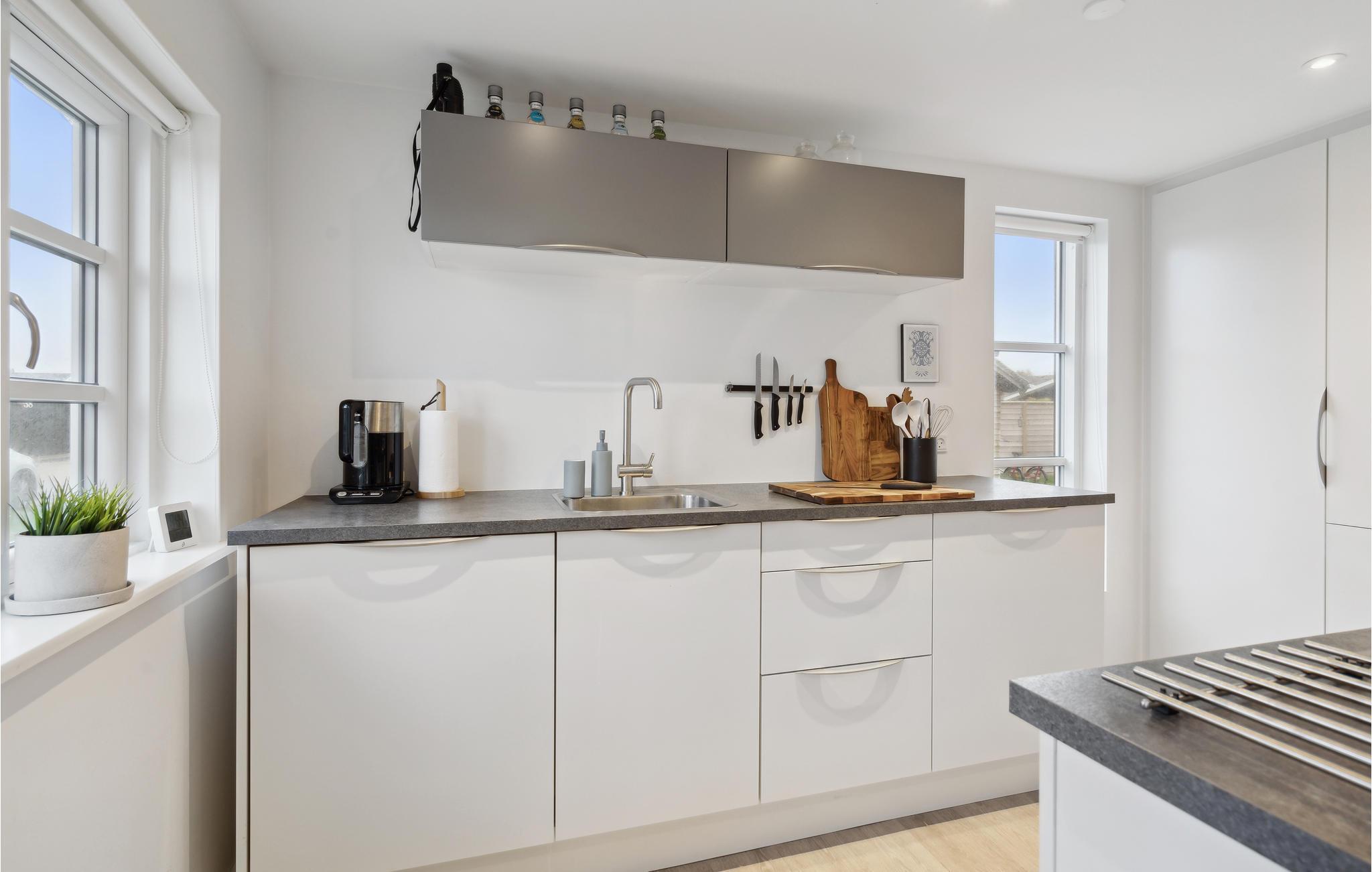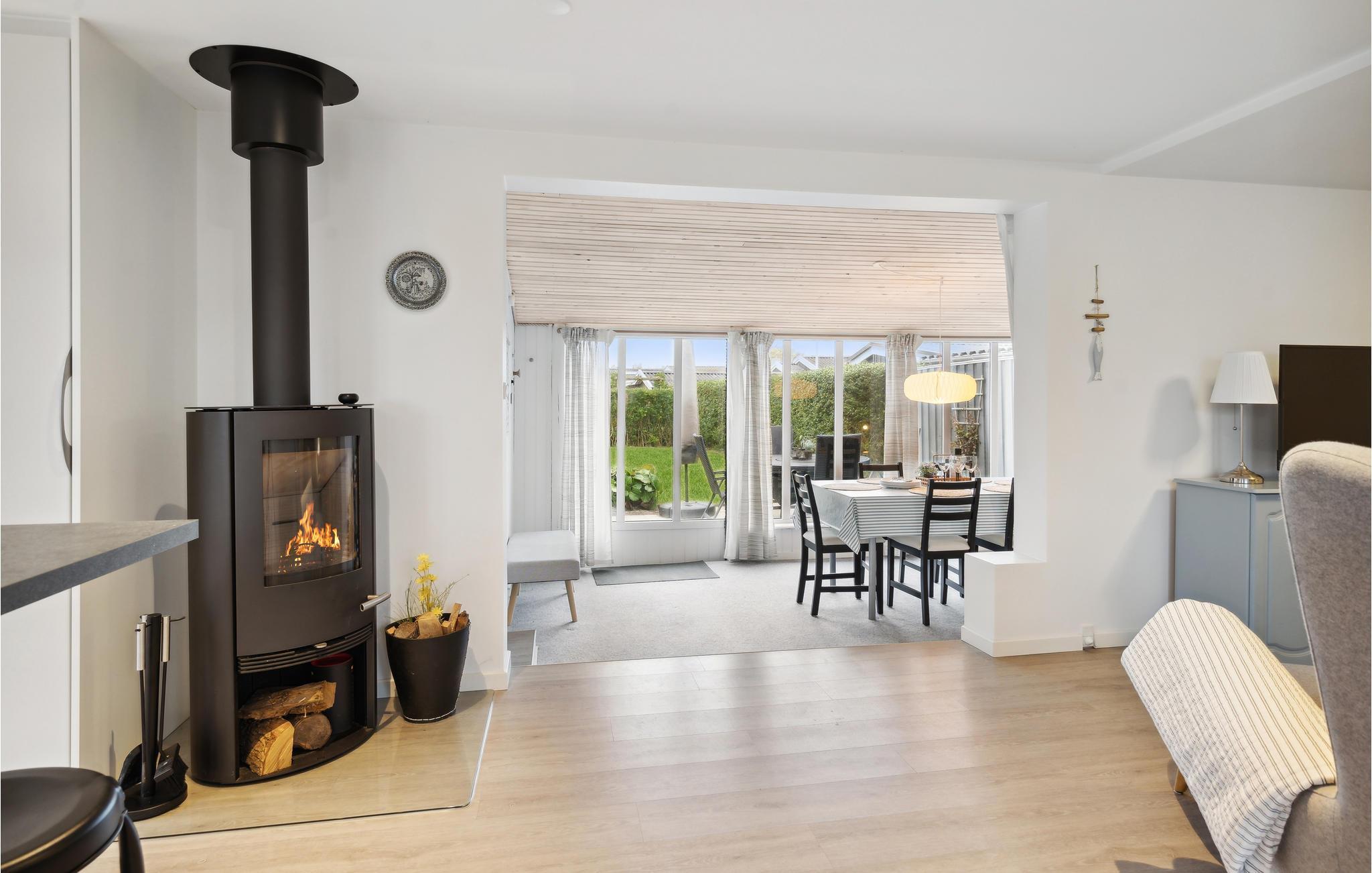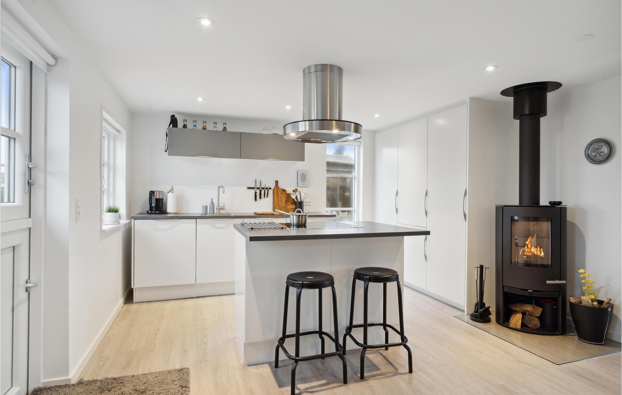 Velkommen til skønne Hasmark Strand og dette fine, lyse sommerhus, som giver jer nem adgang til stranden. Glæd jer til at tilbringe dagens hyggestunder i huset, efter I er tilbage fra jeres udflugter. Boligen har en dejlig ro med sit åbne, behagelige udtryk, så her er det nemt at slappe af. Giv jer i kast med en lækker aftenmenu i køkkenet, inden I kan læne jer tilbage i sofahjørnet og nyde varmen fra ilden i brændeovnen.