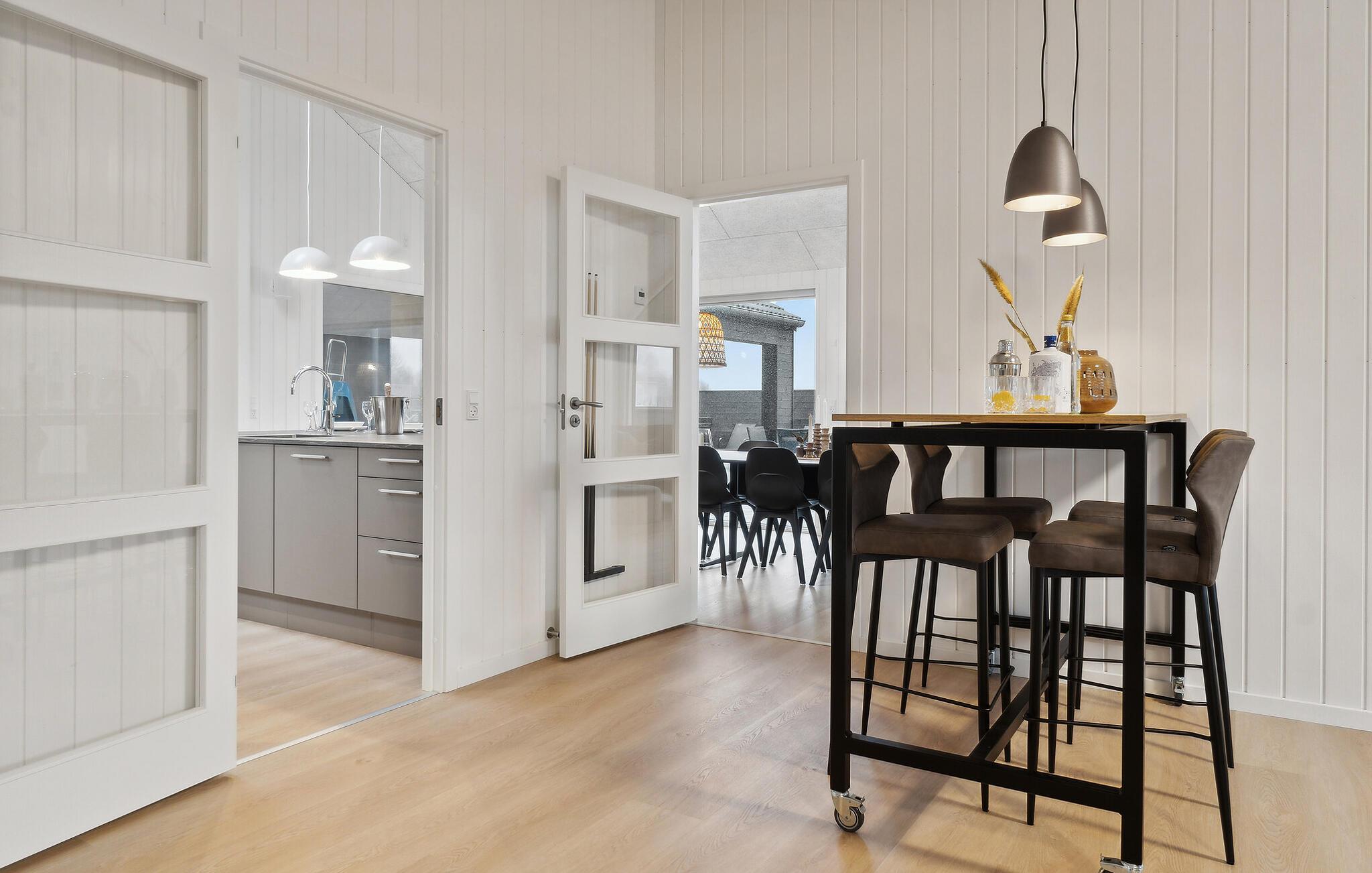 Dette eksklusive feriehus er skabt til fællesskab, komfort og uforglemmelige oplevelser – det perfekte valg for den store familie eller vennegruppen, der vil nyde livet sammen. Her får I mange muligheder for at forsøde jeres ophold: En dejlig svømmepøl med vandrutsjebane og modstrømsanlæg, et aktivitetsrum med billard, bordtennis og bordfodbold, et udendørs spabad, sauna, udebruser, trampolin, gynger og fodboldbane i haven – og så er der kun en kort gåtur til Hasmarks skønne sandstrand. Hvor dette hus virkelig skiller sig ud, er i de mindre åbenlyse detaljer. Her er der lagt vægt på bekvemme indretningsløsninger, så I kan fokusere på det, der er vigtigt, nemlig de gode oplevelser, frem for alt det praktiske, der følger med at samles i en stor gruppe. Køkkenet er lækkert udstyret med moderne installationer, som gør det til en fornøjelse at lave maden sammen. Her bliver madlavning og oprydning endnu et positivt bidrag til de gode oplevelser.
