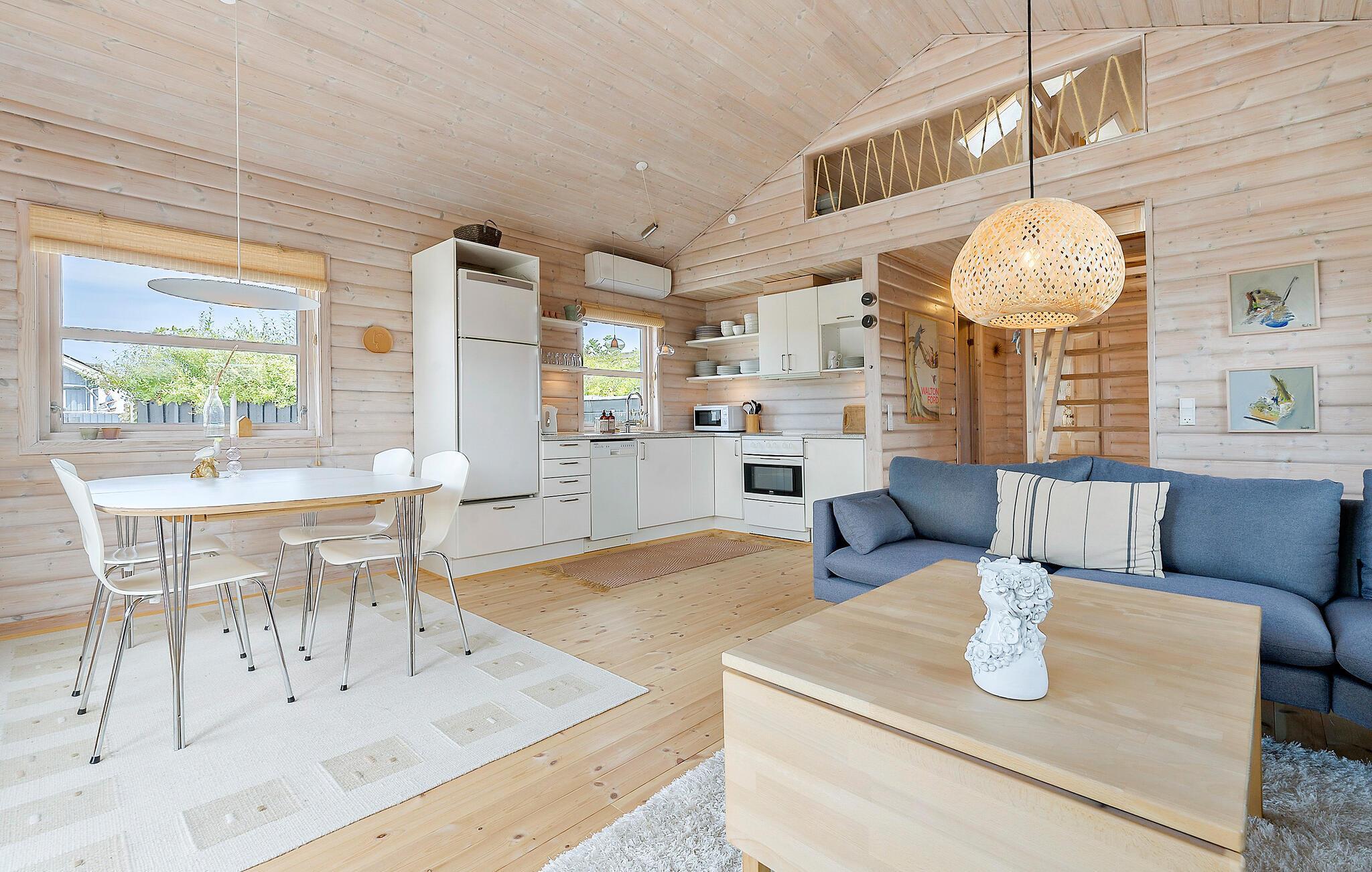 Der er ikke mange meter ned til skønne Hasmark Strand fra dette hyggelige sommerhus, som kan blive jeres nordfynske base. Her slår I dørene op til en stilren og fredfyldt bolig, hvor det lyse træ er det gennemgående element, som giver rummene en skøn ro. Efter en lang dag på farten er det skønt at vende hjem til huset, læne sig godt tilbage i sofaen, streame en god serie og snakke om dagens bedste oplevelser, mens ilden knitrer i brændeovnen.