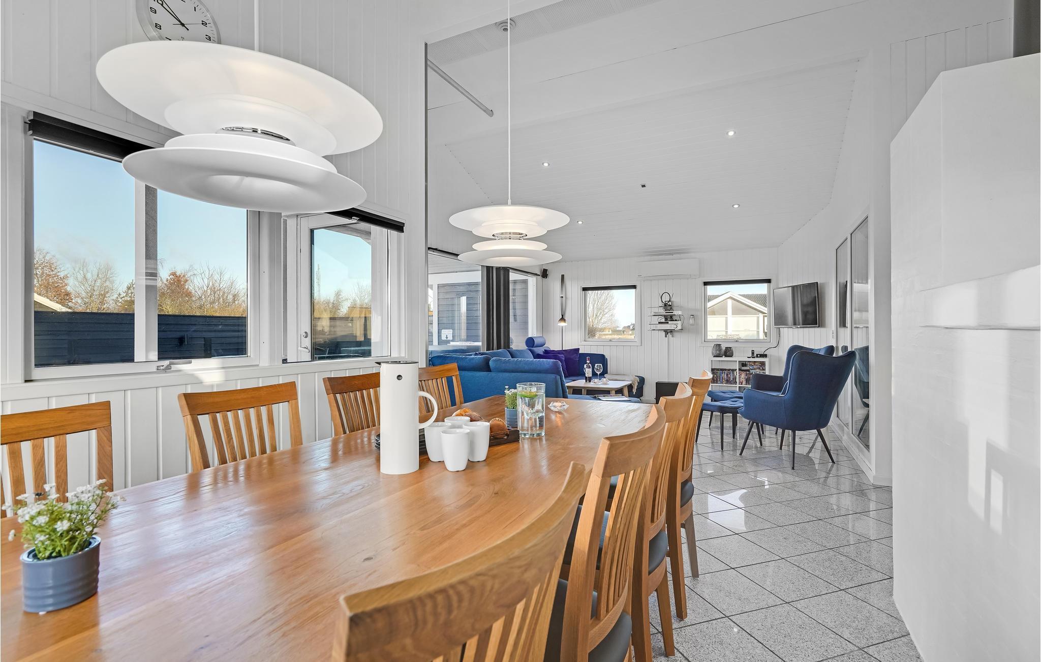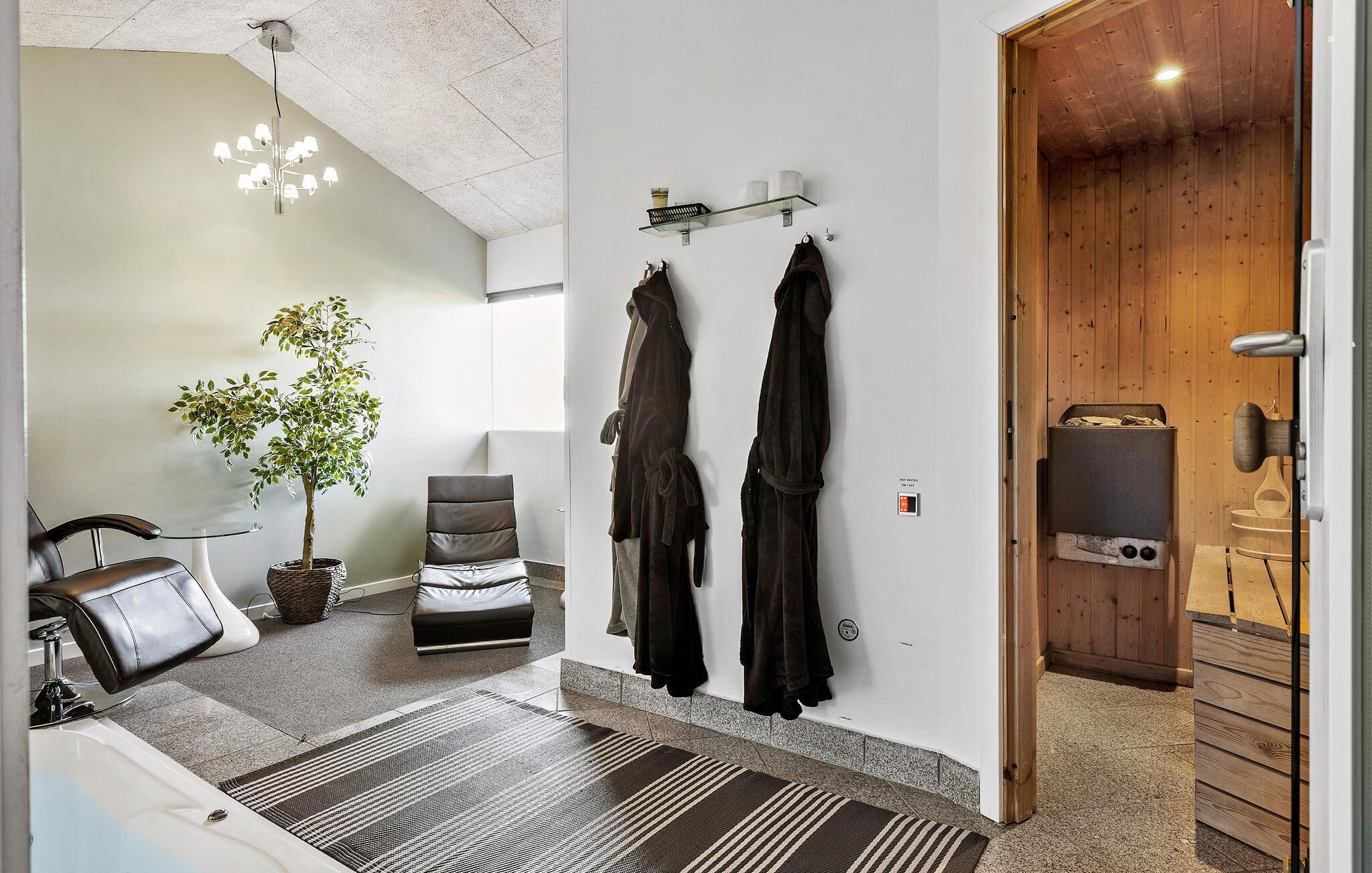 Flot sommerhus med særligt wellnessrum. Huset egner sig fint til flere familier, idet det bl.a. indeholder tre gode soveværelser samt stor hems og to badeværelser. Der er flotte granitgulve med gulvvarme i hele huset. Desuden er der brændeovn. Huset indeholder foruden spabad og sauna et stort udendørs spabad, hvor I kan hygge jer under åben himmel og drømme jer væk fra dagligdagens stress og jag. Bagefter kan I f.eks. sætte jer ind i en massagestol i wellnessrummet. Det vil uden tvivl begejstre alle uafhængig af alder. Huset er indrettet med attraktive faciliteter bl.a. flere fladskærms-tv. Huset ligger tæt på stranden i et attraktivt sommerhusområde, som også byder på gode fiskemuligheder. Der er kun ca. 200 m til Hasmark Strand Feriepark med spændende aktiviteter, som stor legeplads, restaurant og indendørs badeland (lukket i vinterhalvåret).