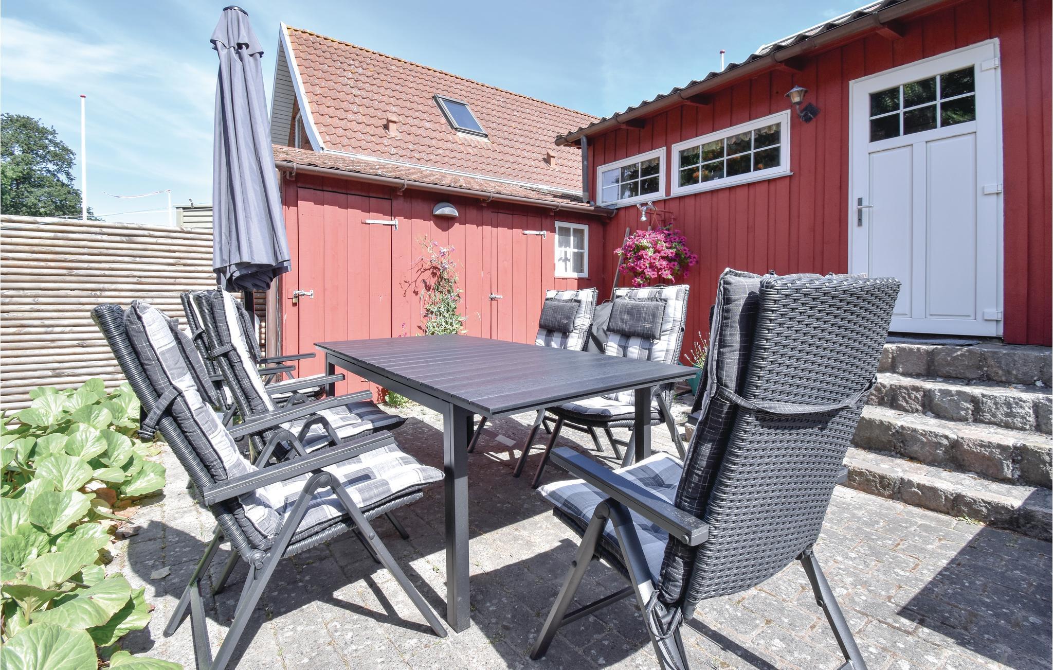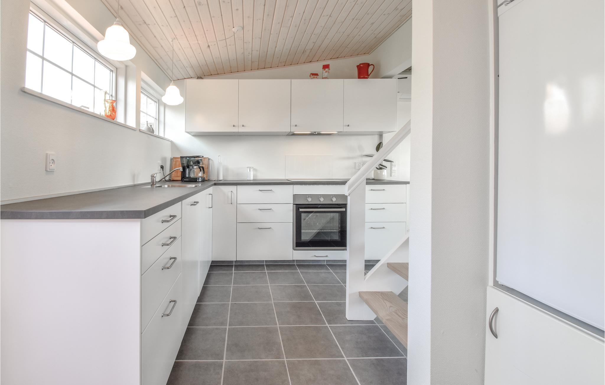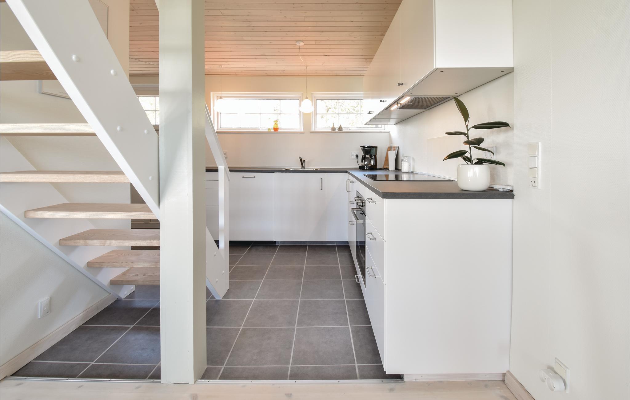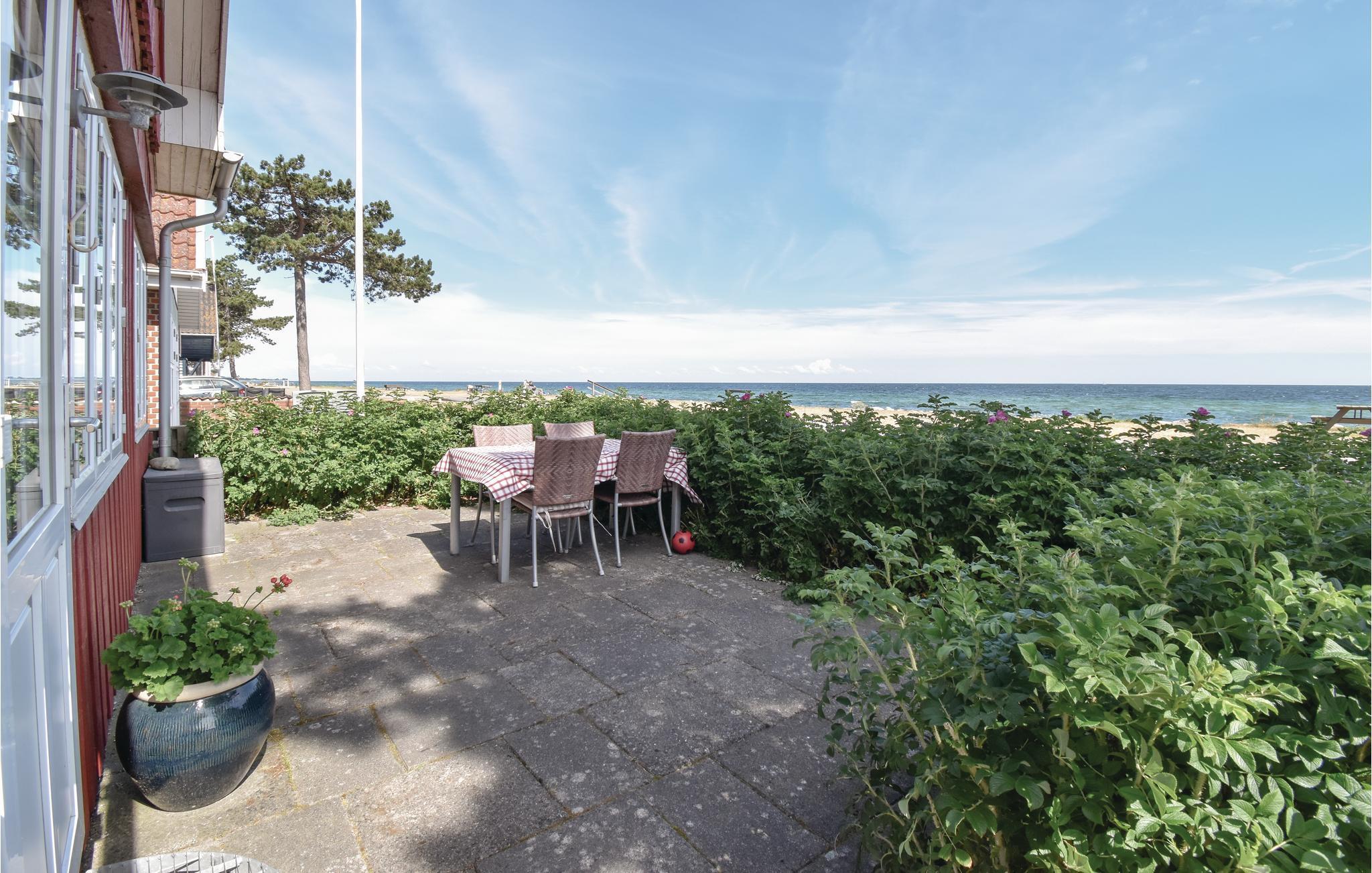 Helt unik beliggenhed lige ned til Hasmark Strand med panoramaudsigt over vandet fra stuen og førstesalen. Huset er i forskudte plan med trappe fra køkkenet op til stuen og spisepladsen. Stuen er velindrettet med sofaarrangement i den ene ende, spiseplads i den anden ende og med den hyggelige brændeovn i midten. Fra stuen er der er udgang til terrassen, der ligger mod vandet. Den er afskærmet af hybenroser, så I sidder lidt i læ og ikke til offentlig skue fra vandsiden. På førstesalen ligger soveværelset, hvorfra I ligeledes kan nyde den smukke havudsigt. I det fine anneks i haven finder I yderligere et soveværelse med plads til to personer. Bag huset ligger endnu en terrasse, hvor I kan slappe af i havemøblerne mens middagen tilberedes på grillen.