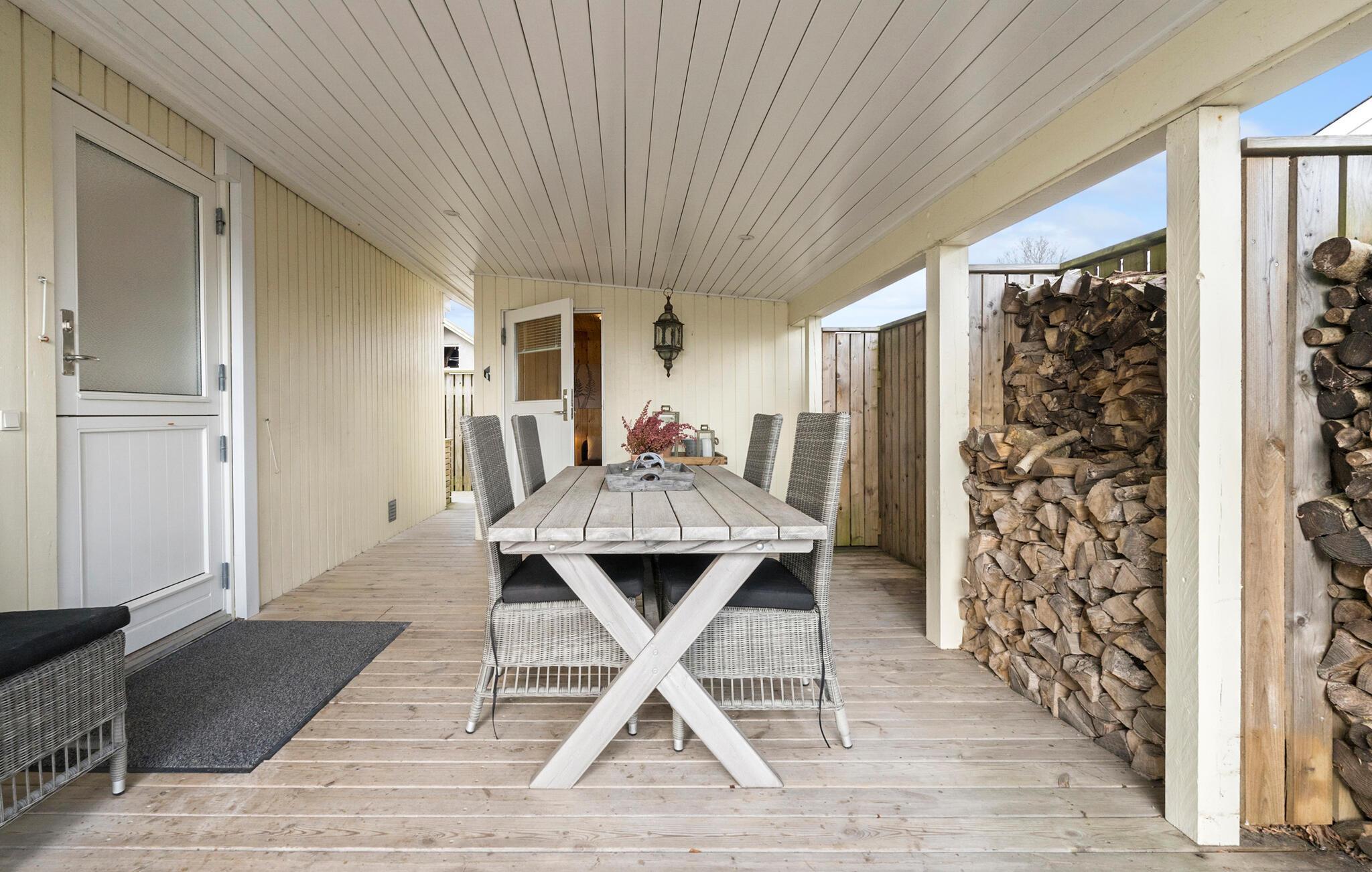 Jeres feriehus byder også på en rummelig træterrasse, som giver masser af plads til afslapning under åben himmel. Om aftenen kan I holde en hyggelig grillaften og nyde den fredelige stemning i fulde drag.